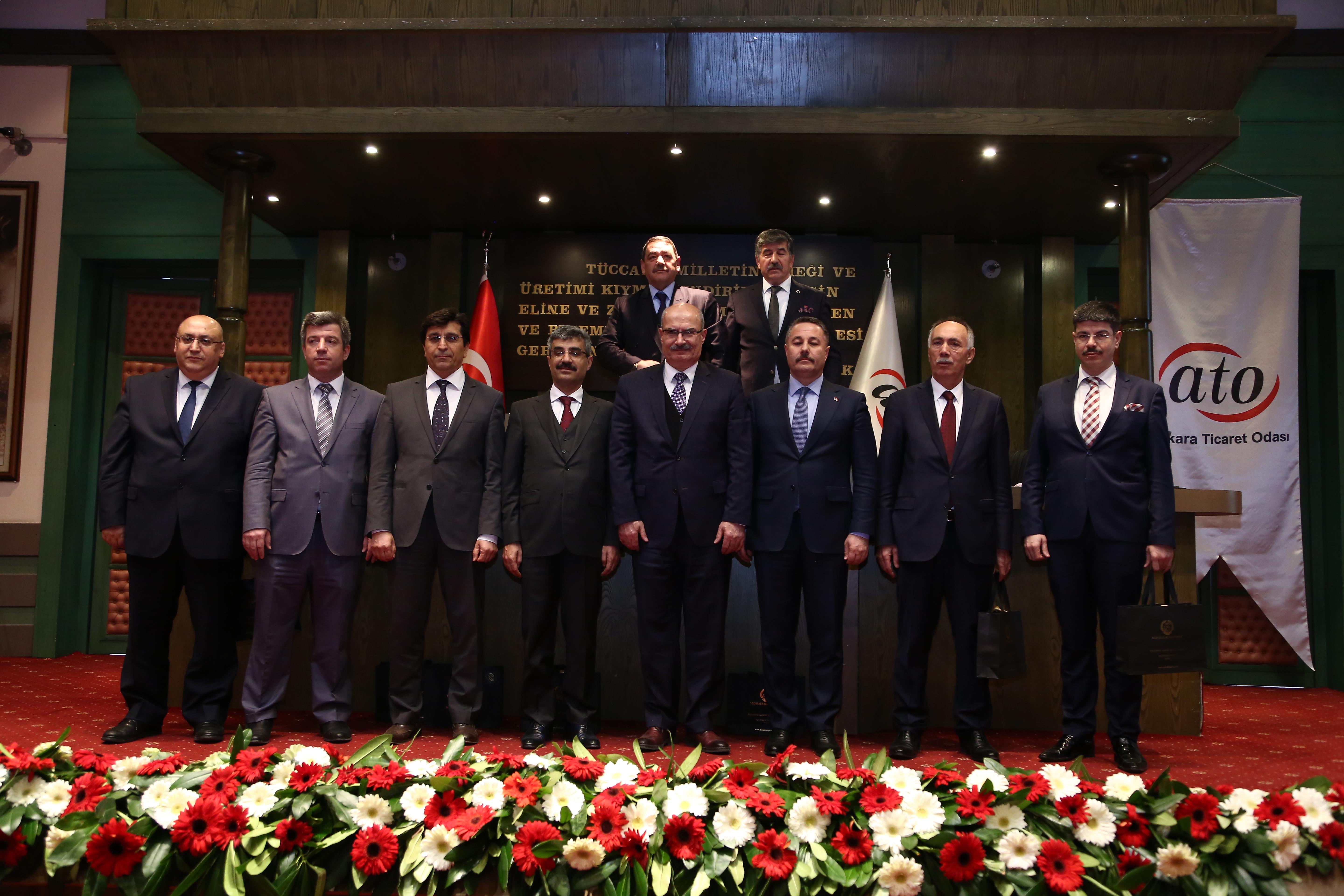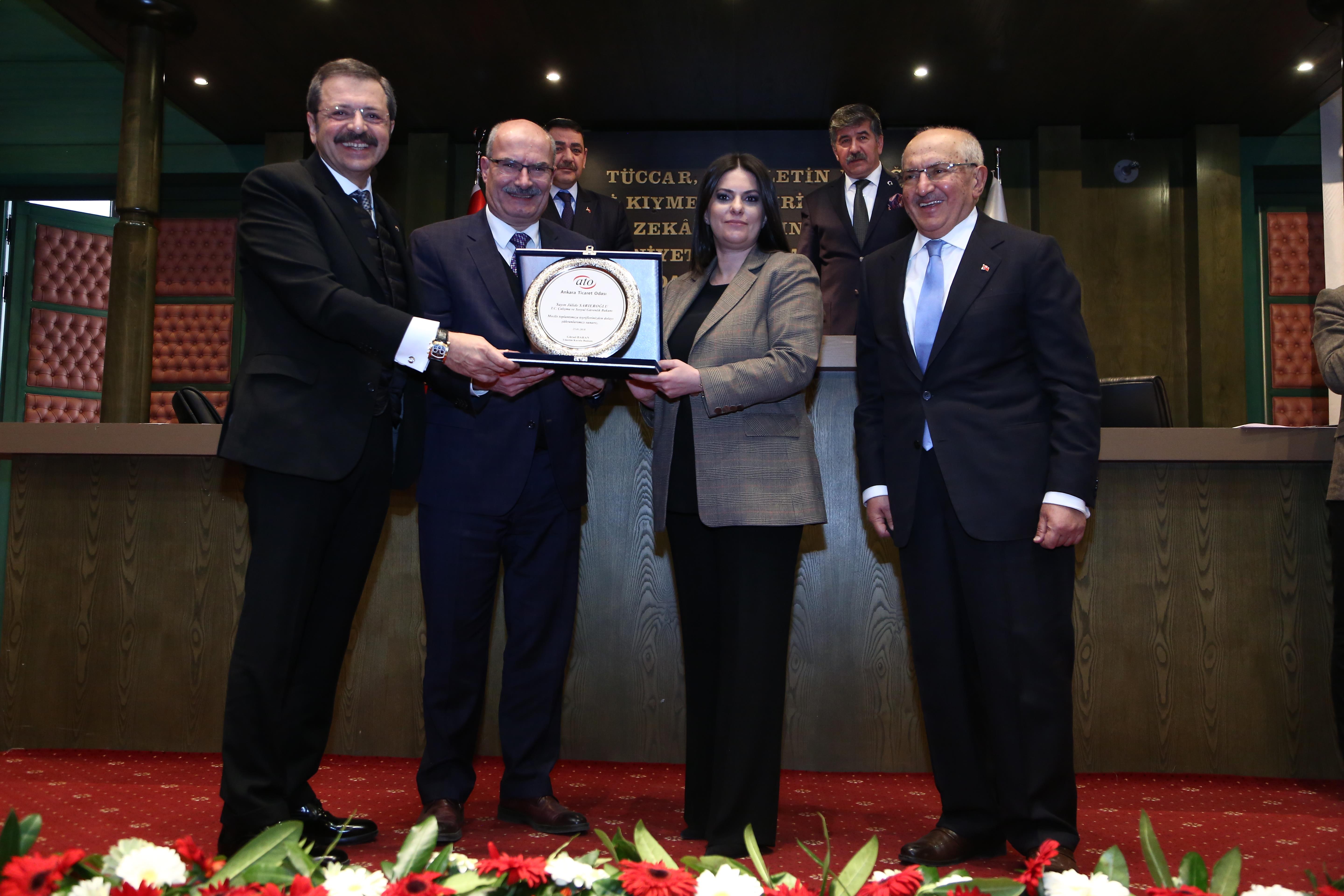 Toplantının sonunda TOBB Başkanı Rifat Hisarcıklıoğlu, ATO Meclis Başkanı Nuri Gürgür ve ATO Yönetim Kurulu Başkanı Gürsel Baran, ziyaretinin anısına Bakan Sarıeroğlu'na çiçek, plaket ve üzerinde "İnsanların en hayırlısı insanlara faydalı olandır" Hadi-i Şerifi'nin yer aldığı bir tablo takdim ettiler.
