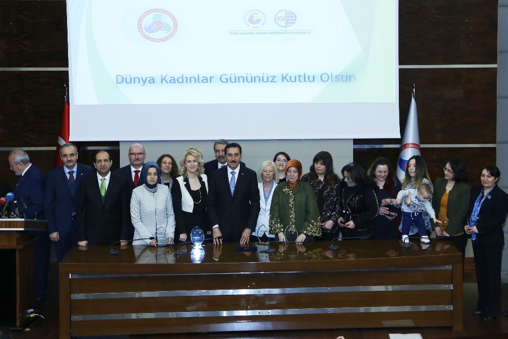 Ankara Sanayi Odası (ASO) Başkanı Nurettin Özdebir ise konuşmasında, kadınların erkeklerden çok daha disiplinli ve düzenli çalıştıklarını belirterek, "Cesaret gösterirseniz başarılı olmamanız için hiçbir neden yok" diye konuştu. TOBB Yönetim Kurulu Üyesi ve Ankara Ticaret Borsası (ATB) Başkanı Faik Yavuz da kadınlara yönelik şiddet ve taciz olaylarını lanetleyerek, "Kadınlar toplumun en etkili, birleştirici ve koruyucu unsurudur" dedi. Kadınlara yönelik "Elinizin hamuruyla erkek işine karışmayın" sözünü de hatırlatan Yavuz, "Siz karışın. Ekonomiye kadın eli değmek zorunda" diye konuştu. TOBB Kadın Girişimciler Kurulu Ankara ve İç Anadolu Bölge Başkanı Serpil Polat ise Türkiye'nin daha hızlı ve sürdürülebilir bir büyümeye kavuşmasının, kadınların iş dünyasında daha fazla yer almasıyla mümkün olabileceğini kaydetti. Polat, kadın girişimcilerin oda ve borsa yönetimlerinde daha fazla yer almasını istediklerini söyledi.