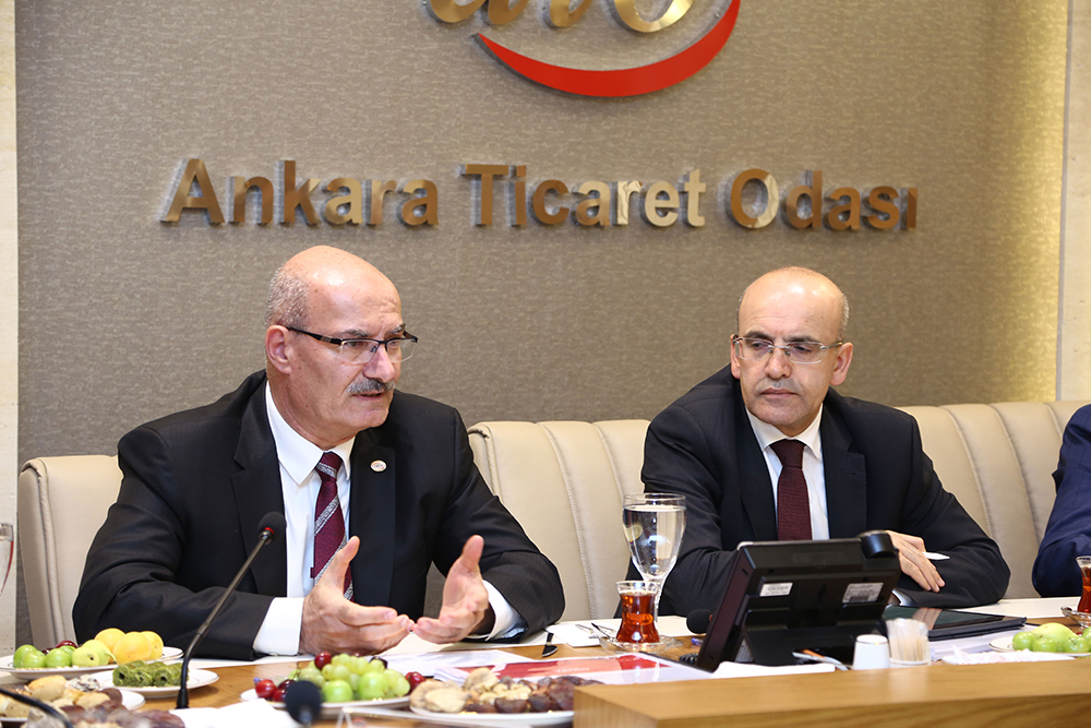 12 HAZİRAN 2018 - Başbakan Yardımcısı Mehmet Şimşek, Ankara Ticaret Odası (ATO) Yönetim Kurulu Başkanı Gürsel Baran'ın başkanlığında, ATO Meclis Başkanı Mustafa Deryal, Yönetim Kurulu, Meclis Başkanlık Divanı, Yüksek İstişare Konseyi, Meclis ve Komite Üyeleri ile sivil toplum kuruluşu temsilcilerinin yer aldığı sahur programına katıldı. Baran, Ankara Ticaret Odası'nın komiteleri tarafından hazırlanan sektörel sorunlar ve çözüm önerilerinin yer aldığı bir dosyayı Başbakan Yardımcısı Mehmet Şimşek'e sundu. Dosyayı inceleyen Şimşek, "Sektörlerin taleplerini inceledim. Meslek Komitelerinin sorunlarını ilgili bakanlarımızla paylaşırız, çalışırız" dedi.
