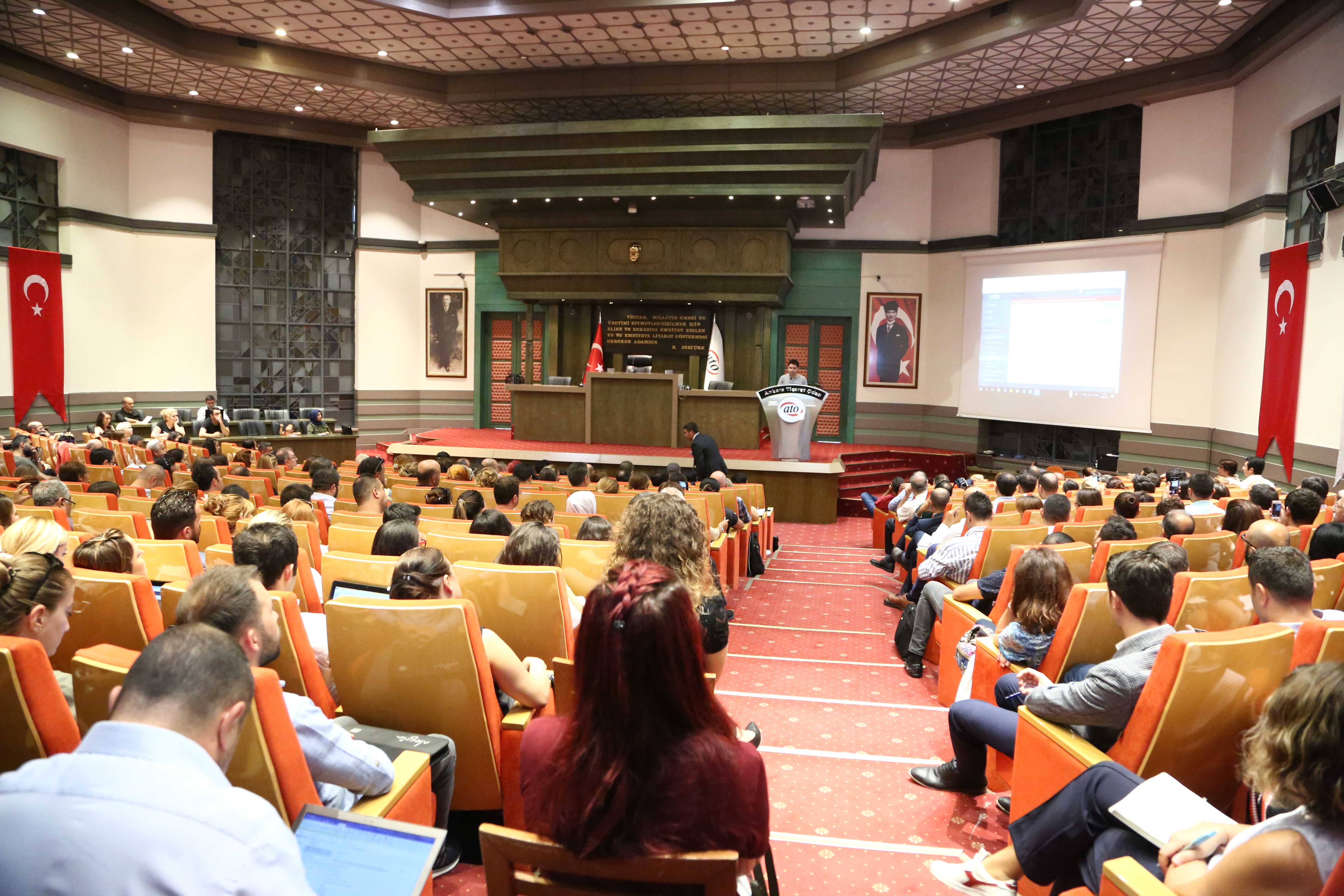 14 EYLÜL 2018 - Türkiye İlaç ve Tıbbi Cihaz Kurumu'nun Ankara Ticaret Odası'nın (ATO) ev sahipliğinde, ilaç ve tıbbi cihaz sektörlerinde faaliyet gösteren üyelere yönelik olarak düzenlediği "Ürün Takip Sistemi Sektör Çalıştayı" ATO Meclis Salonu'nda yapıldı.
