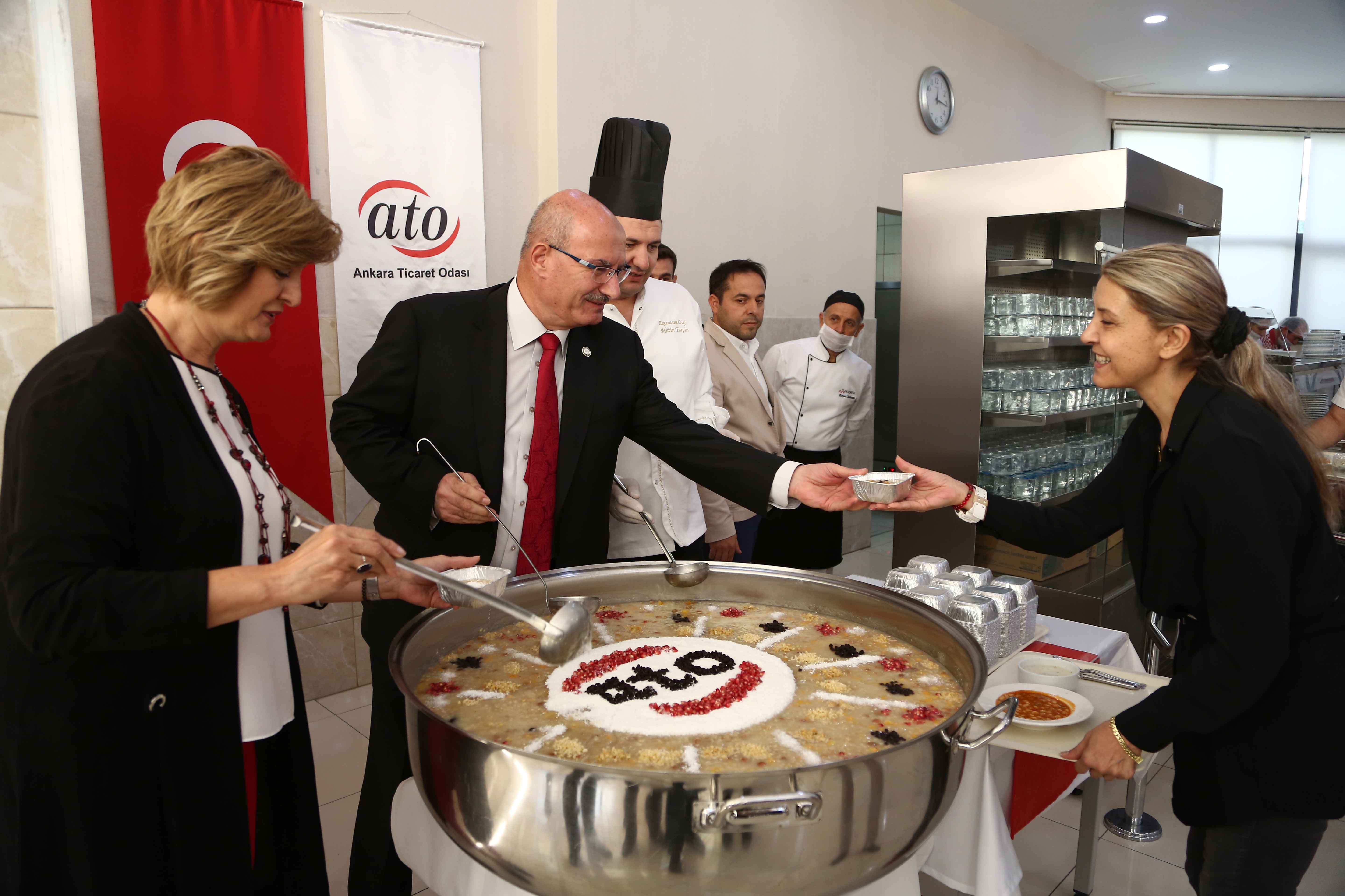 Ankara Ticaret Odası'nda inanç tarihinde önemli bir yeri olan Muharrem ayı dolayısıyla aşure dağıtımı etkinliği düzenlendi. Oda yemekhanesinde aşure kazanının başına geçerek dağıtım yapan ATO Başkanı Baran, Muharrem ayında Kerbela hadisesinin anıldığını hatırlattı. Aşurenin bereket anlamına da geldiğini kaydeden Baran, "Muharrem ayında yaşadığımız Aşure geleneğimiz, toplumumuzun birlik ve beraberliğinin açık bir göstergesidir. Bugün de dayanışma ve beraberliğimizin simgesi olan Aşureyi "bereketin sırrı paylaşmaktır" diyerek paylaşıyoruz" diye konuştu.