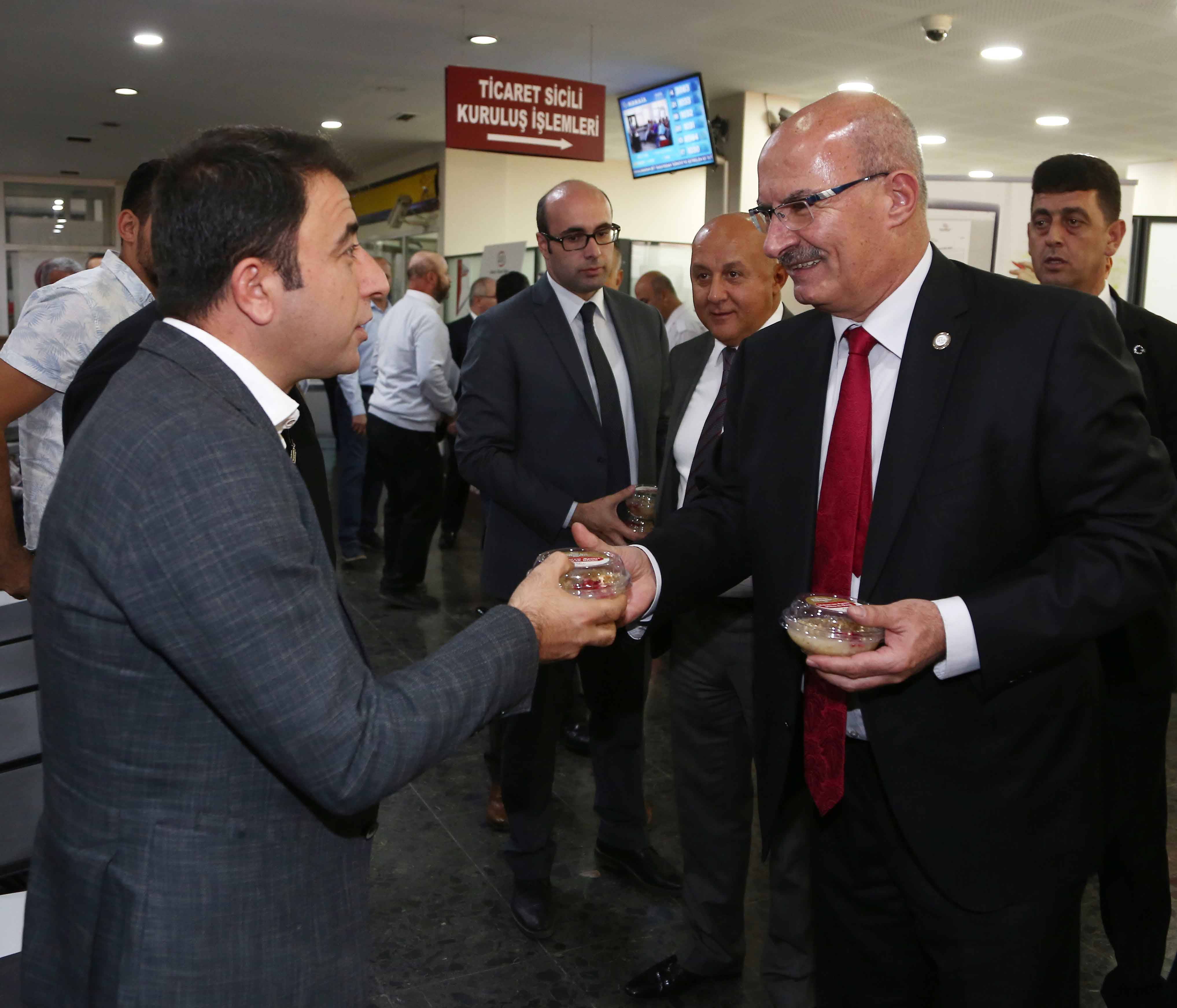 9 EKİM 2018 - Ankara Ticaret Odası (ATO) Yönetim Kurulu Başkanı Gürsel Baran, Muharrem Ayı münasebetiyle Oda personeli ile işlem yapmak üzere ATO'ya gelen üyelere aşure ikram etti. Aşure kazanının başına geçerek, kaselere aşure dolduran Baran, "Gönüllerimizi Kerbela çölüne dönüştürmemek için her zaman kardeşlik hukukunu geliştirmeye ihtiyacımız olduğunu unutmamalıyız" dedi.