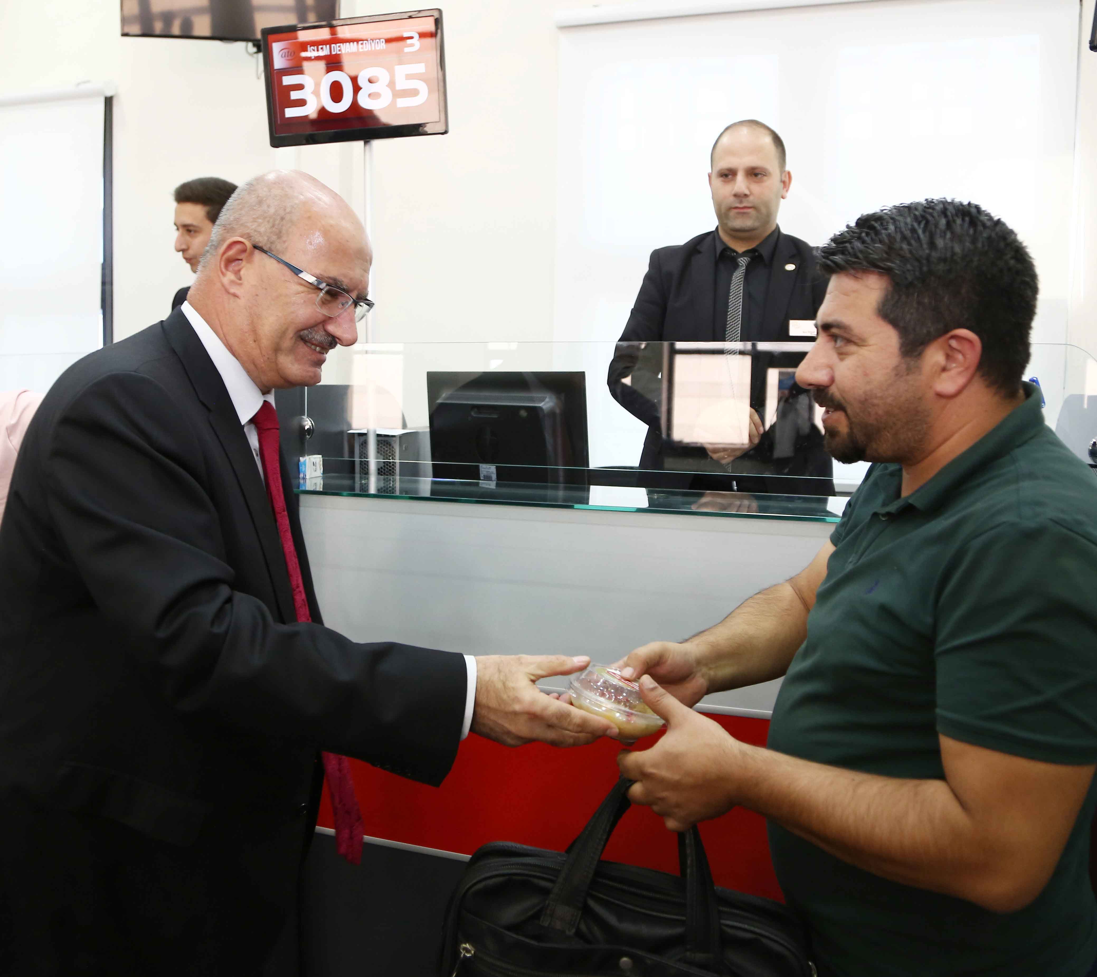 Aşure dağıtımında Baran'a ATO Başkan Yardımcısı Halil İbrahim Yılmaz, ATO Yönetim Kurulu Üyesi Murat Ülkü Karakuş ve ATO Meclis Üyesi Belgin Sağdıç eşlik etti.