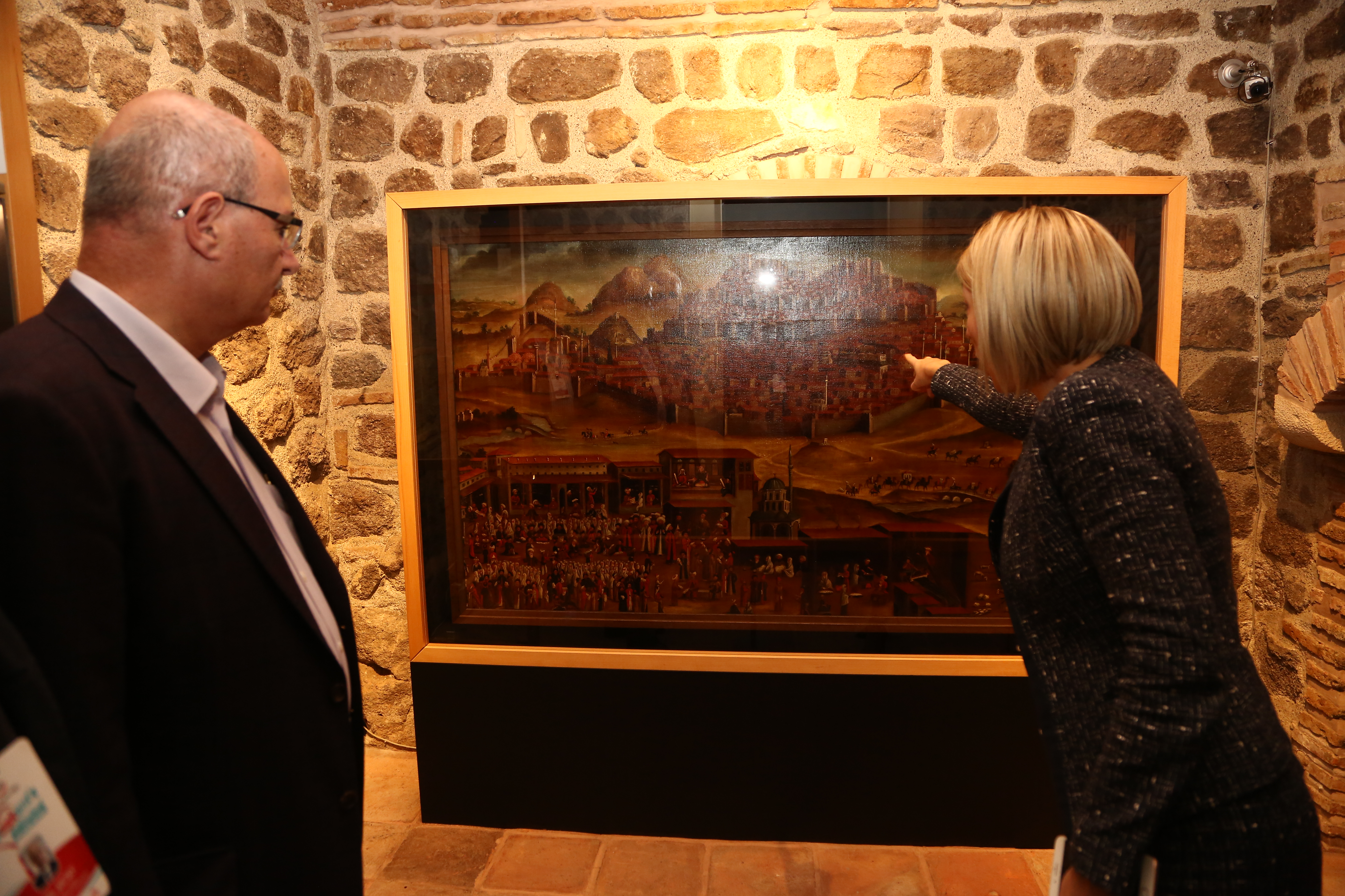 Müze ziyaretinde, Hollandalı bir tüccar tarafından 18. Yüzyılda yaptırılan ve Ankara'nın resmedildiği en eski tablo olarak bilinen "Ankara Manzarası" tablosu da ilgi çekti. Hollanda'daki Rijksmuseum'dan sergilenmek üzere Ankara'ya getirilen tablo, Ankara'nın 18. Yüzyılda çok önemli bir ticaret merkezi olduğunu gösteriyor, özellikle Ankara keçisinin tiftiğinden eğrilen iplikten sof kumaşların dokunduğu tezgâhları ortaya koyuyor.