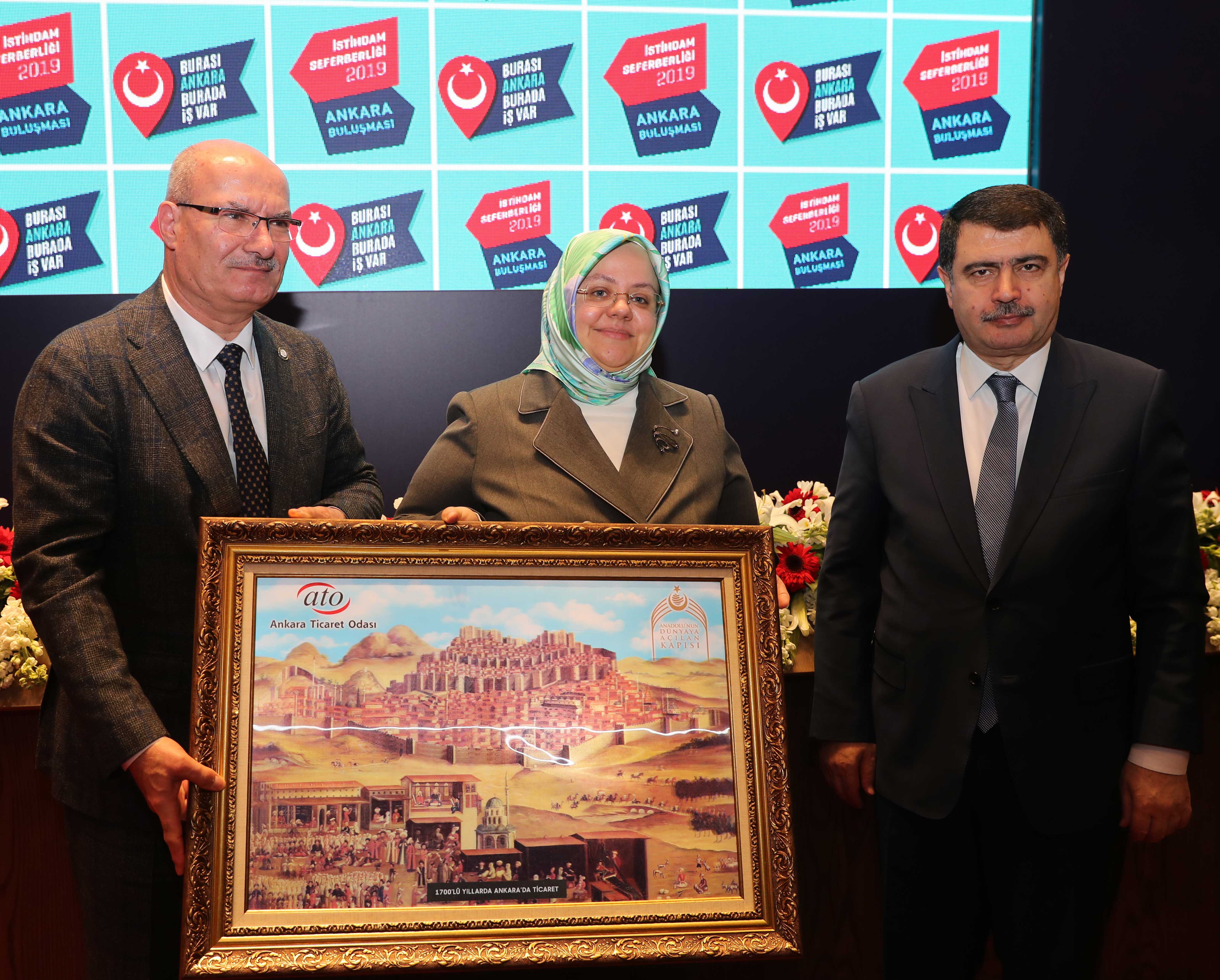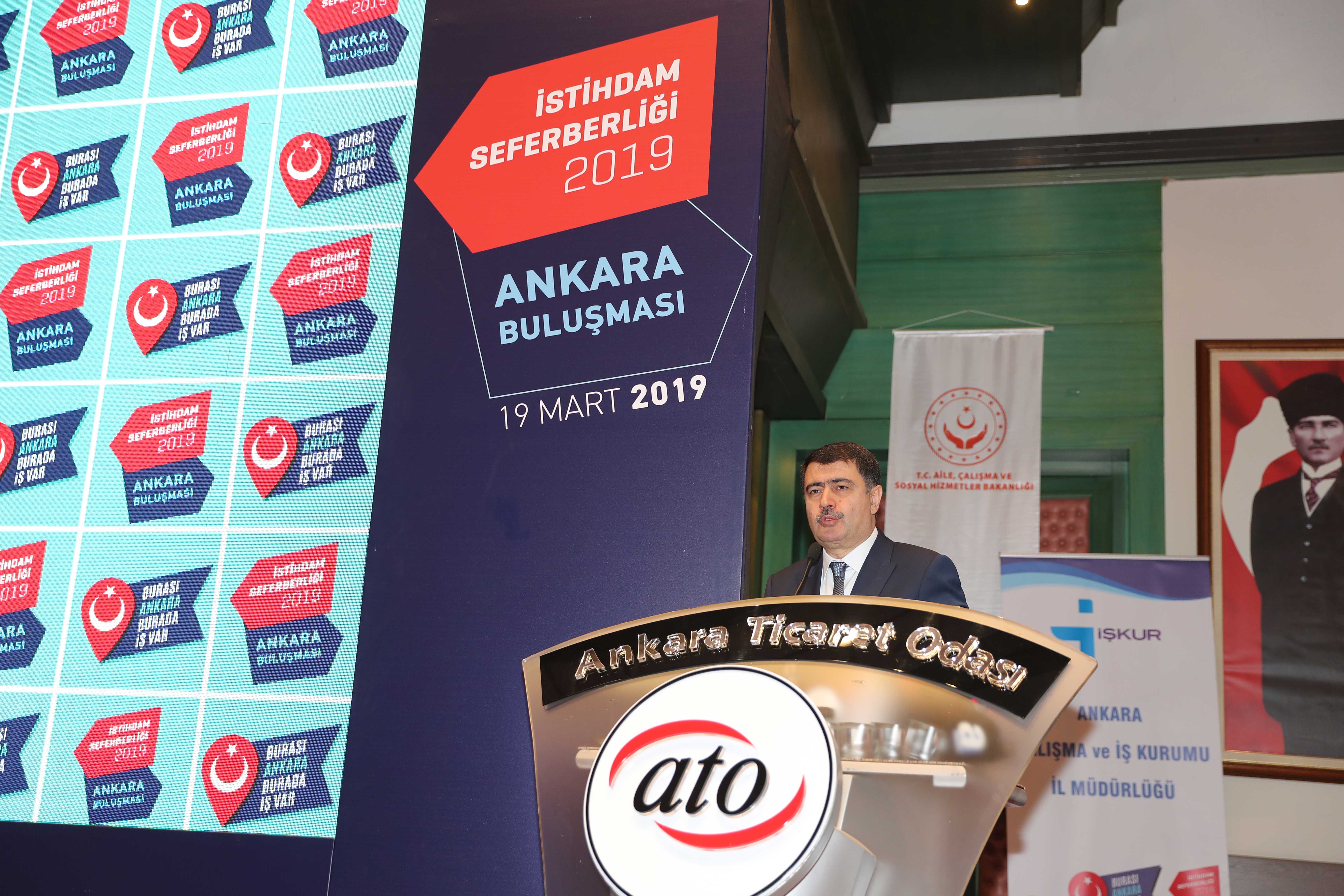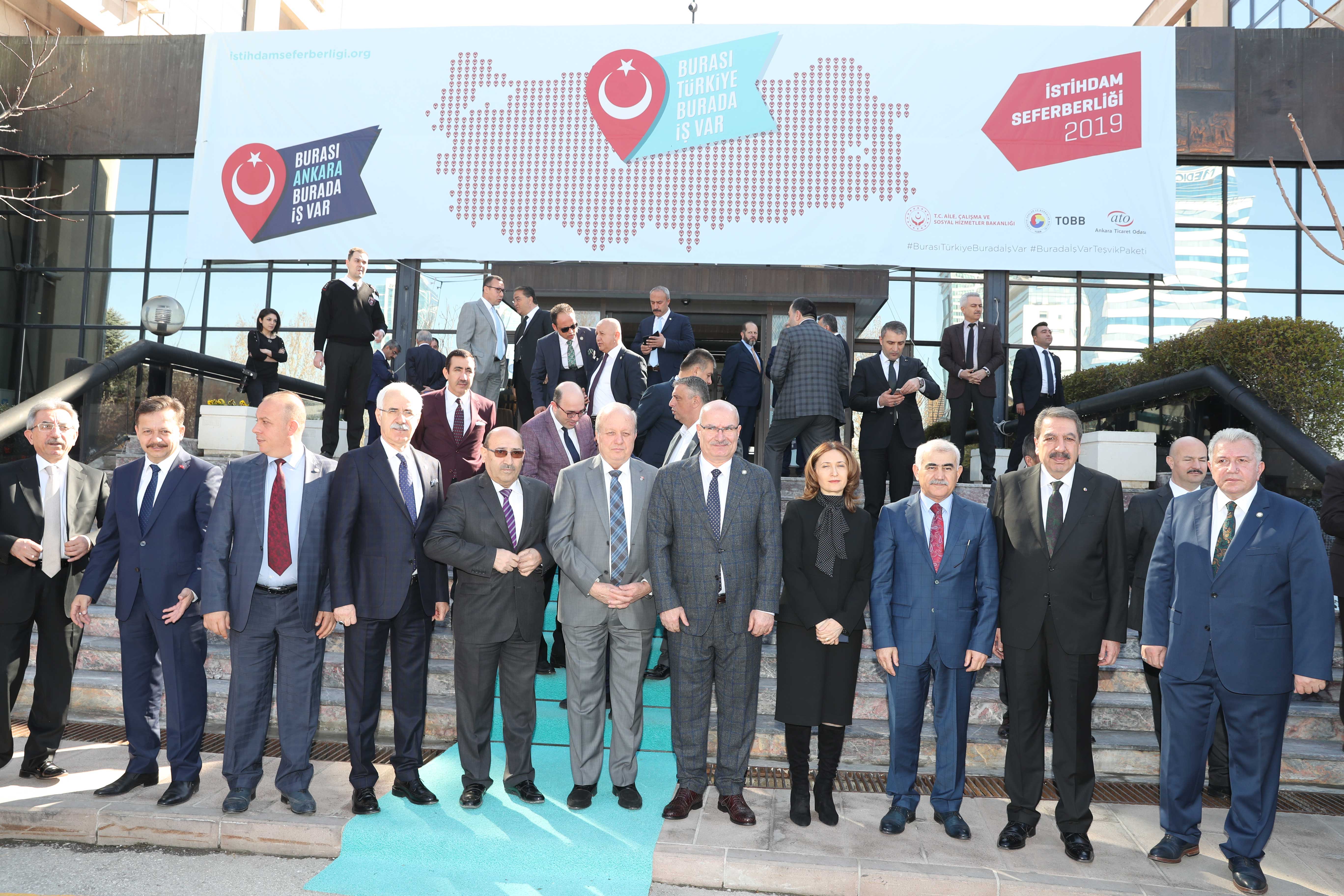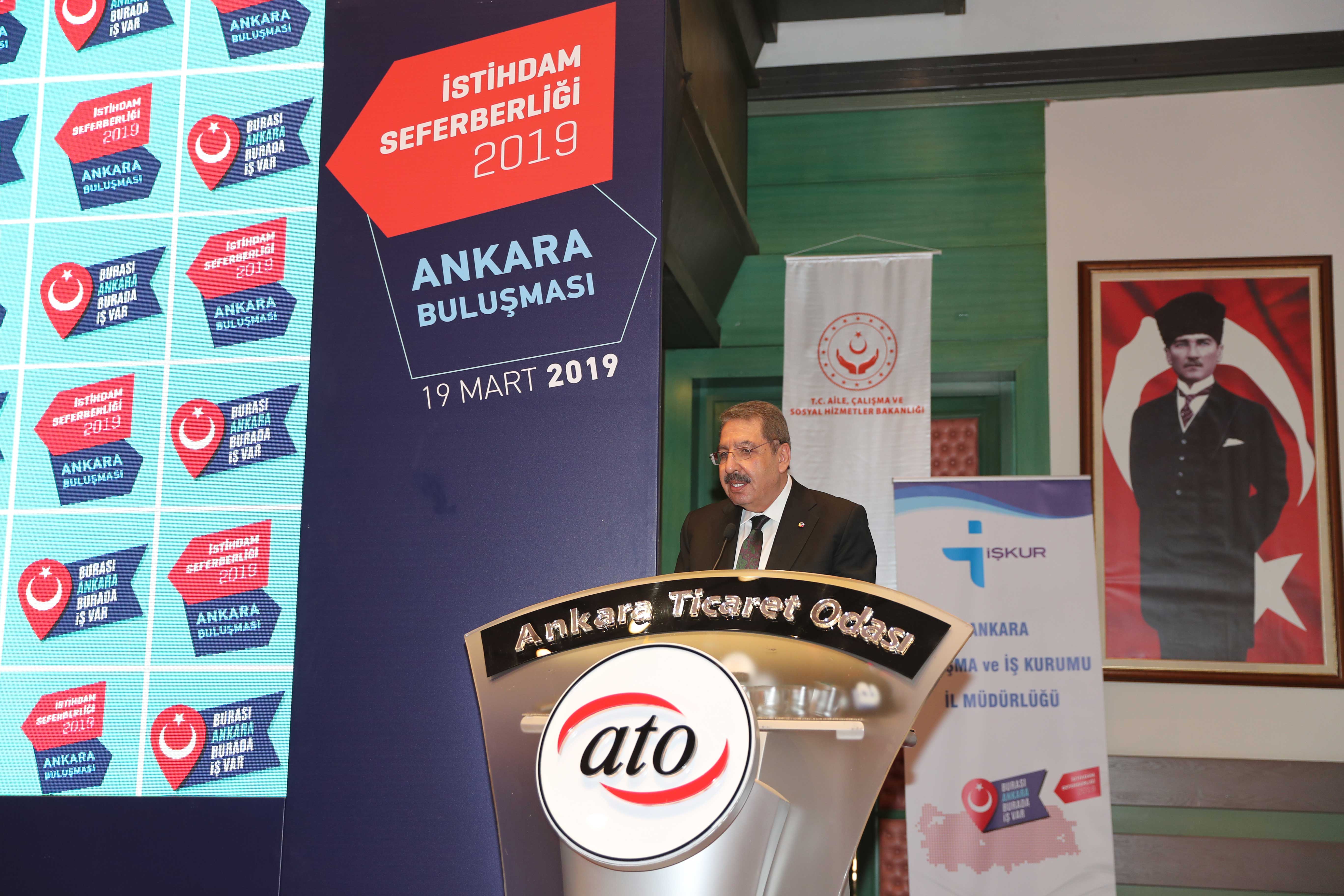 19 MART 2019-Cumhurbaşkanı Recep Tayyip Erdoğan'ın himayelerinde Aile, Çalışma ve Sosyal Hizmetler Bakanlığı ve Türkiye Odalar ve Borsalar Birliği (TOBB) işbirliğinde başlatılan "İstihdam Seferberliği 2019" bilgilendirme toplantısı Ankara Valiliği ve Ankara Ticaret Odası'nın (ATO) ev sahipliğinde Aile, Çalışma ve Sosyal Hizmetler Bakanı Zehra Zümrüt Selçuk'un katılımıyla yapıldı.