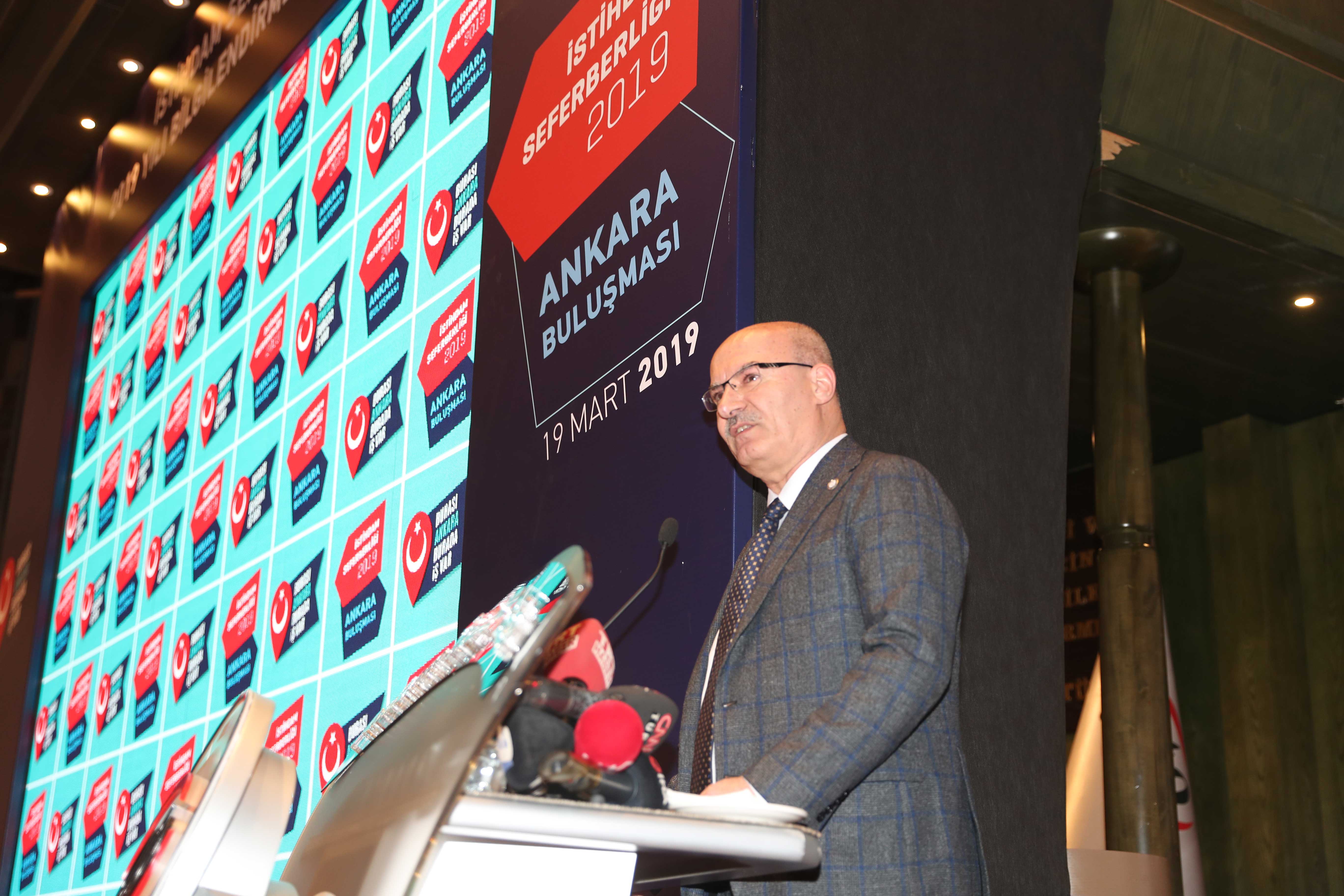 "Türkiye, küresel krizden bu yana yaklaşık 8,5 milyon kişiye ilave istihdam sağlayarak AB ülkeleri arasında ilk sırada yer aldı. Yükselişte istihdam seferberliğinin önemli katkısı oldu. Ülkemizin bu yükselişine yeni bir ivme kazandırmak amacıyla Sayın Cumhurbaşkanımız iki yıl önce Milli İstihdam Seferberliğini başlatmıştı. Siz işverenler bu çağrıya kayıtsız kalmayıp, 2017'den bu yana yaklaşık 2 milyon ilave istihdam oluşturdunuz. Bu yıl da istihdam seferberliğini, hedefleri büyüterek sürdürmeniz takdiri hak ediyor. İşverenlerimizin, geçen ay Cumhurbaşkanımıza verdiği 2,5 milyon ilave istihdam sözünü tutacağına inanıyorum. Bu kapsamda Ankaralı işverenler de 220 bin istihdam sözünü verdi. 2,5 milyon kişiyi istihdam etmek demek 10 milyon kişiye aş demek. Ankara için 220 bin istihdam demek 1 milyon kişiye ulaşmamız demek. İstihdam seferberliği sayesinde, vatandaşlarımızın yüzü gülecek, milyonlarca evde tencere kaynayacak, çocuklarımız için mutlu bir gelecek inşa edeceksiniz."