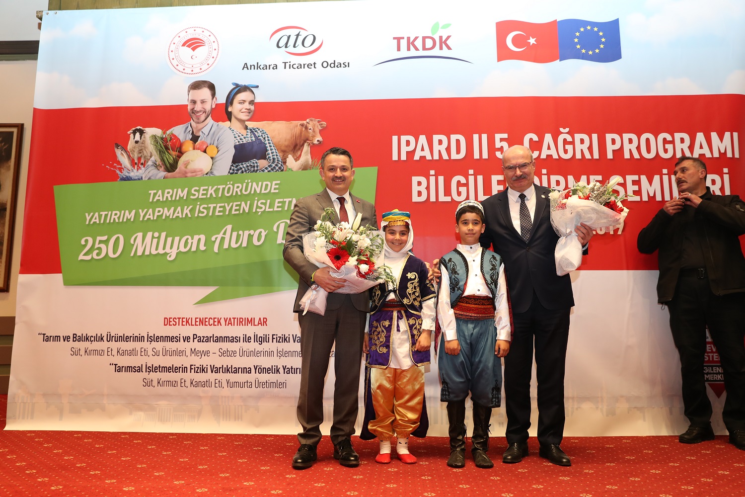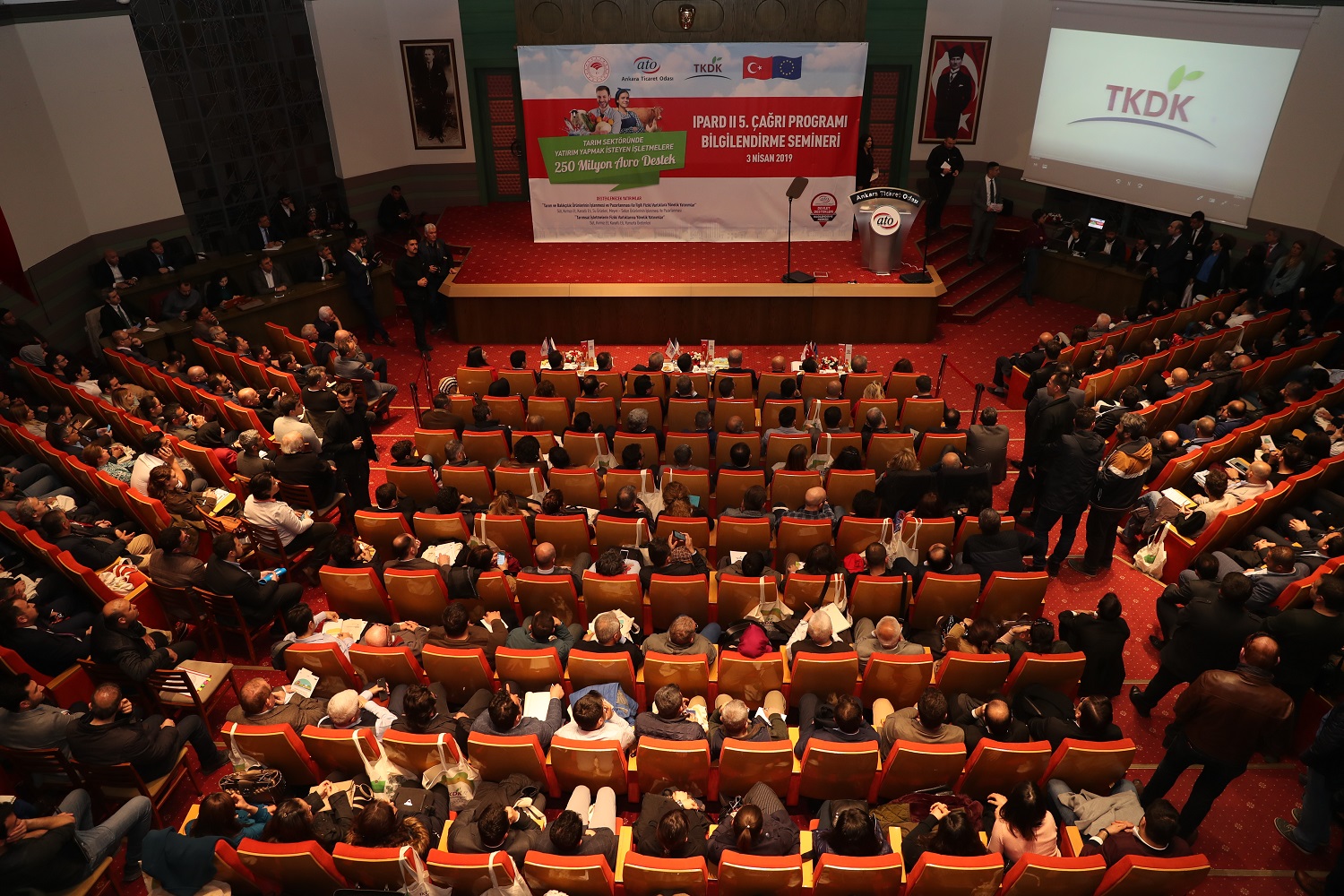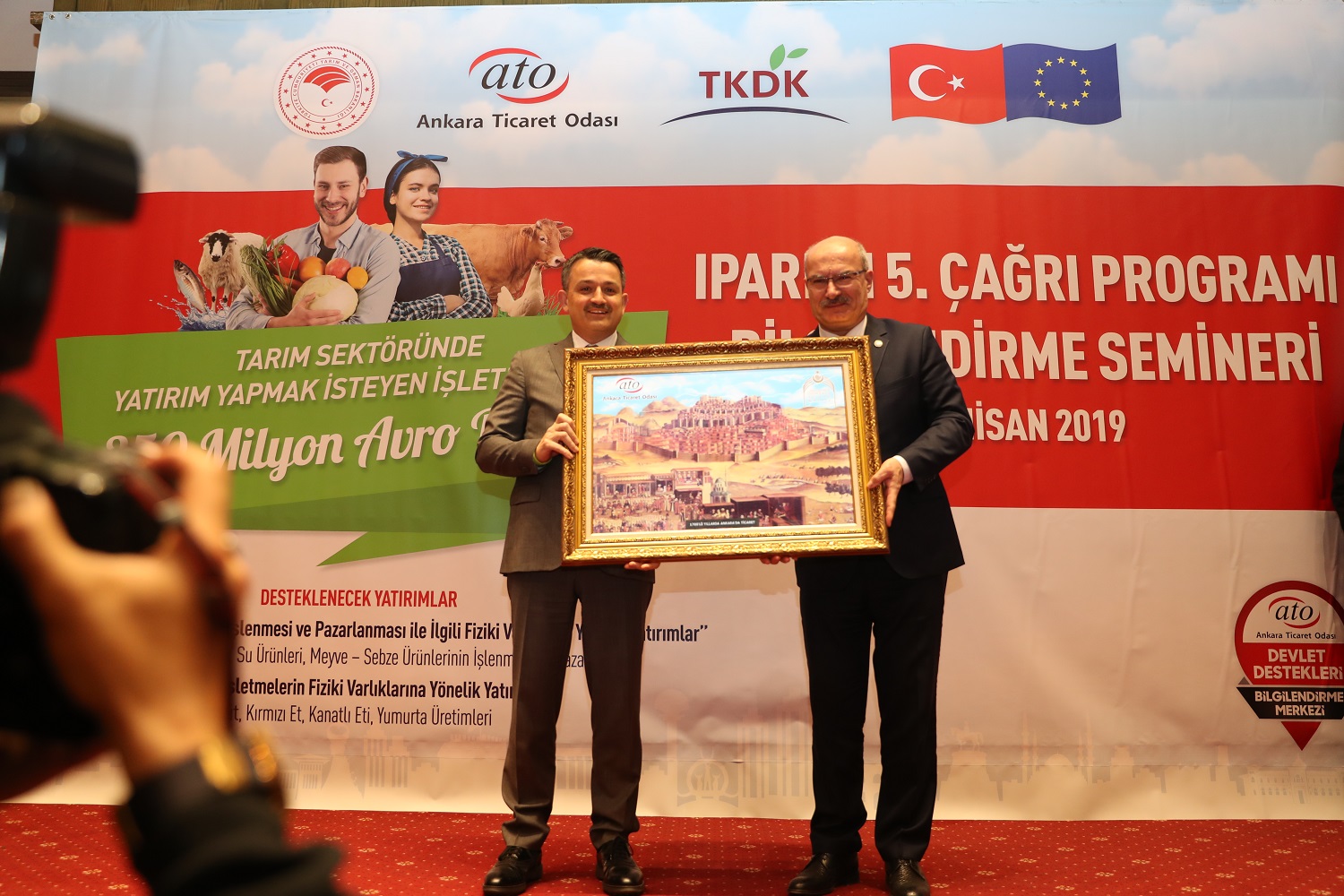 Ankara Ticaret Odası'nın (ATO) Tarım ve Kırsal Kalkınmayı Destekleme Kurumu'yla (TKDK) birlikte düzenlediği Avrupa Birliği Kırsal Kalkınma Programı-II (IPARD II) 5. Başvuru Çağrısı'na ilişkin bilgilendirme semineri ATO Meclis Salonu'nda yapıldı. Toplantının açılışında konuşan Tarım ve Orman Bakanı Bekir Pakdemirli, seminerin yerel seçimlerin ardından katıldığı ilk program olduğunu belirterek, "Hedefi, projesi ve azmi olanlar için, önümüzde 4,5 senelik fırsatlar dönemi var. Biz, yeni ekonomik program doğrultusunda, üretim ve ihracata yönelik büyümenin gereğini, özellikle gıda, tarım ve ormancılık endüstrisinde de yerine getirmeye kararlıyız" dedi.