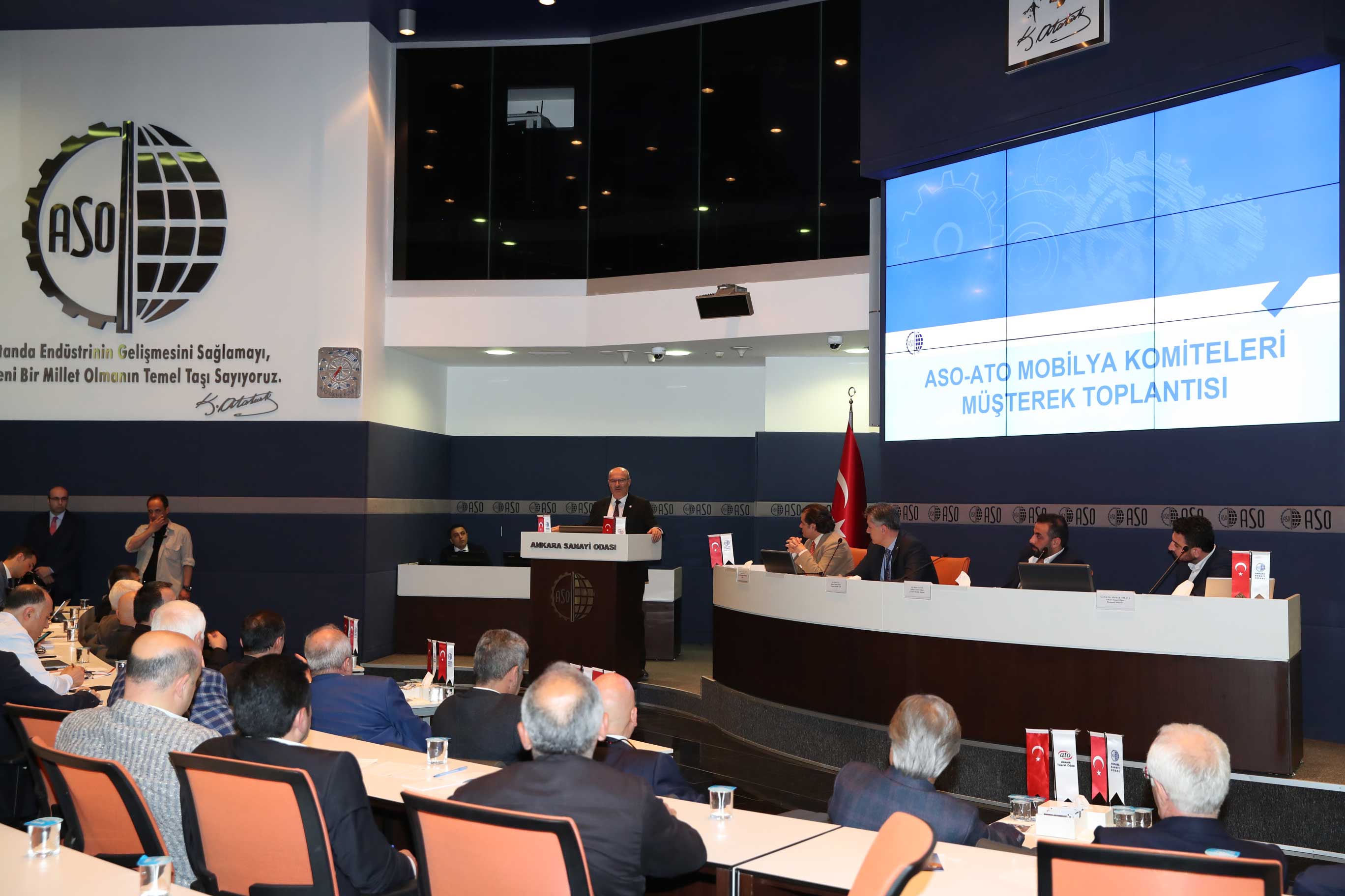 ATO ve ASO Mobilya Komitelerinin Müşterek Toplantısı Ankara Sanayi Odası'nda yapıldı. Toplantıya Ankara Milletvekili Emrullah İşler, ATO Yönetim Kurulu Başkanı Gürsel Baran, ASO Yönetim Kurulu Başkanı Nurettin Özdebir, ATO Meclis Başkanı Mustafa Deryal, ATO ve ASO'nun Yönetim Kurulu Üyeleri ile sektörle ilgili meslek komitesi üyeleri katıldı.