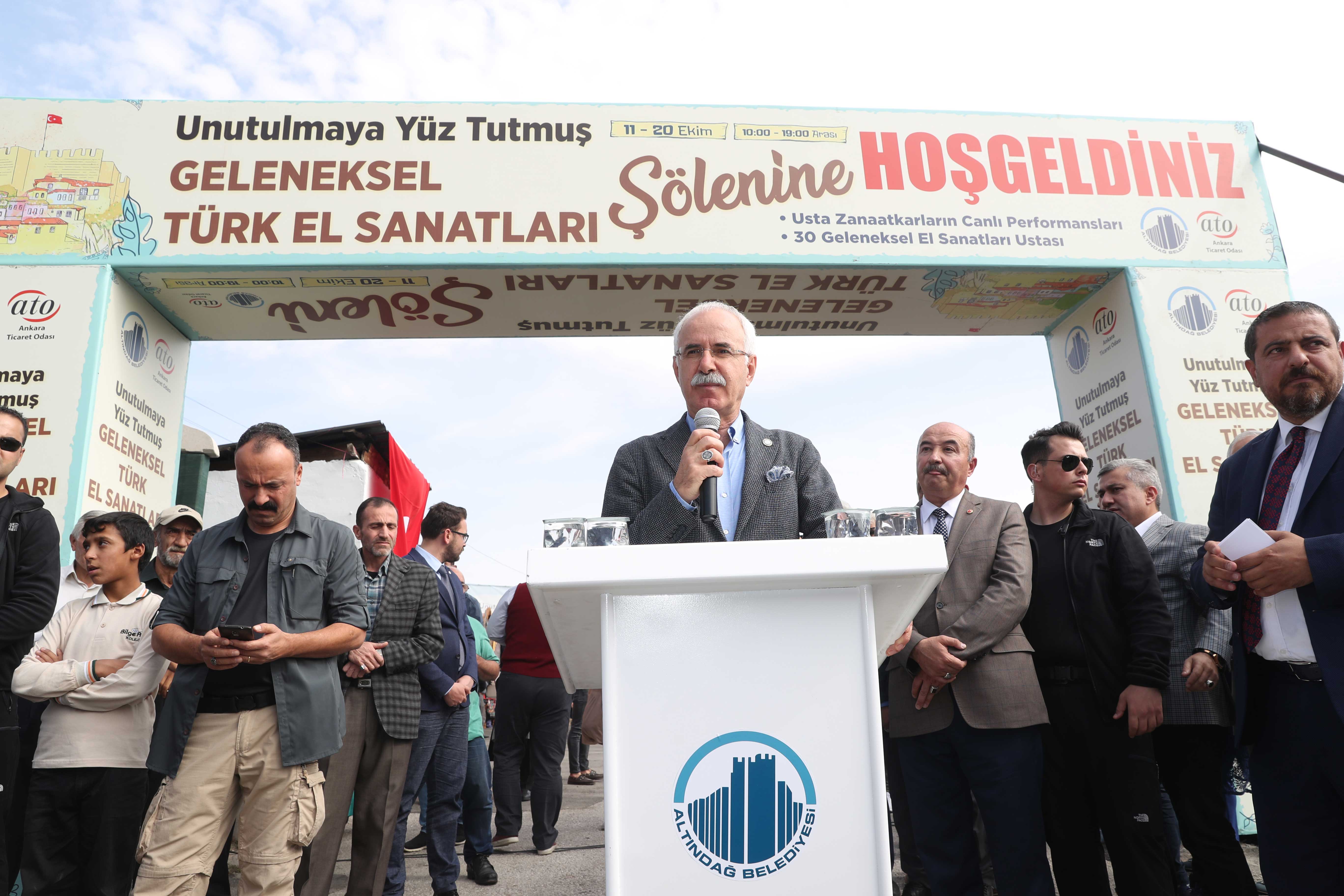 Ankara Kalesi Arslanhane Camii Yanında kurulan sergi alanında gerçekleşen törende konuşan Aktay, Türkiye'nin binlerce yıllık bir tarihe sahip olduğunu hatırlatarak, "Bu tarihten köklenen büyük birikimlerle kurulan beraberliklerimiz var. Bu beraberlikleri günümüze taşıyarak kültürümüzü, geleneğimizi ve sanatımızı hep bir elden koruyabilmeliyiz" dedi. Aktay, unutulmaya yüz tutmuş geleneksel el sanatlarının yaşatılması ve korunması amacıyla Altındağ Belediyesi ile gerçekleştirdikleri çalışmaların başarılı sonuçlar vermesini diledi.