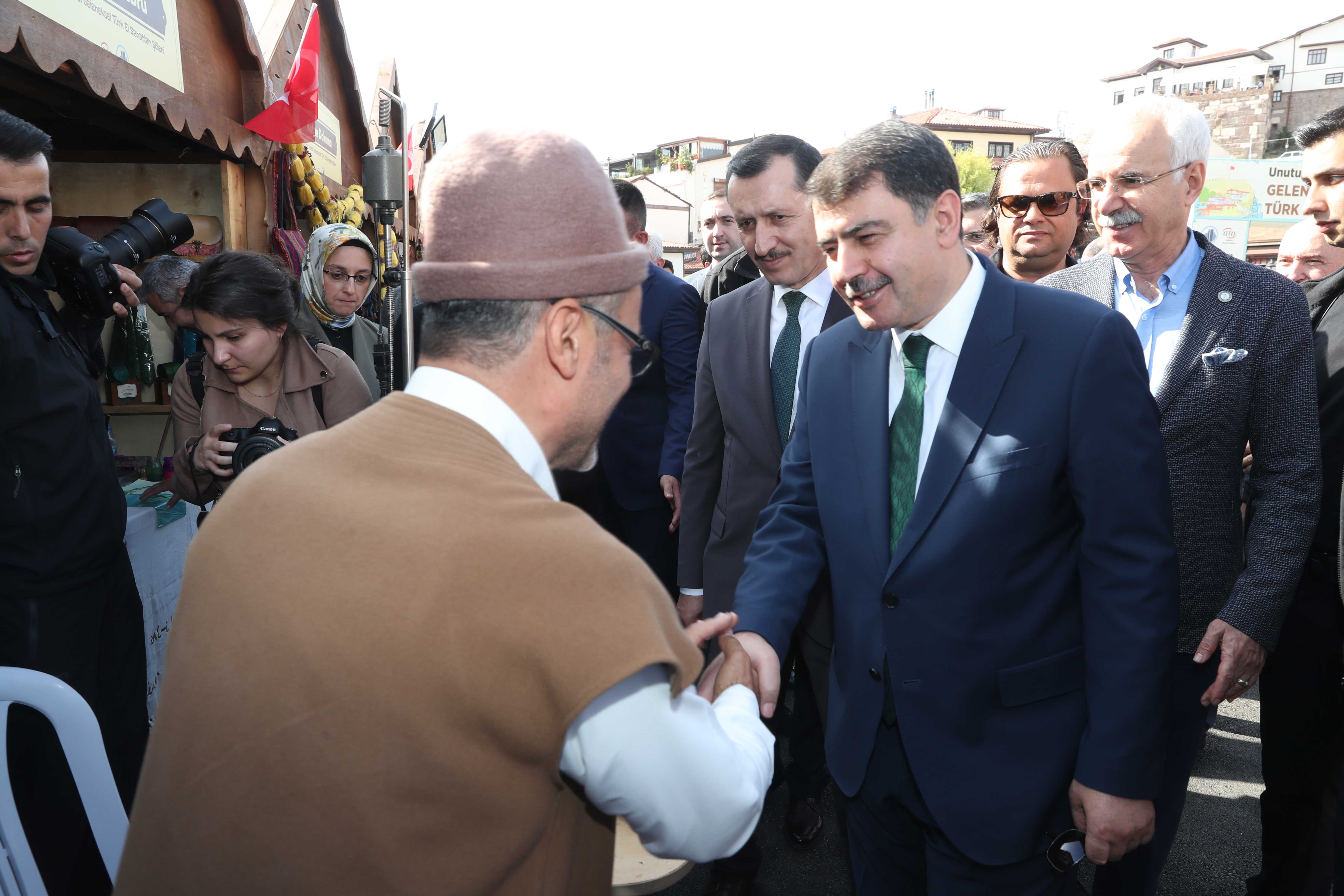 Açılış töreninin ardından şölende yer alan el sanatları stantlarını ziyaret eden Aktay, ürünleri inceleyerek bilgi edindi.