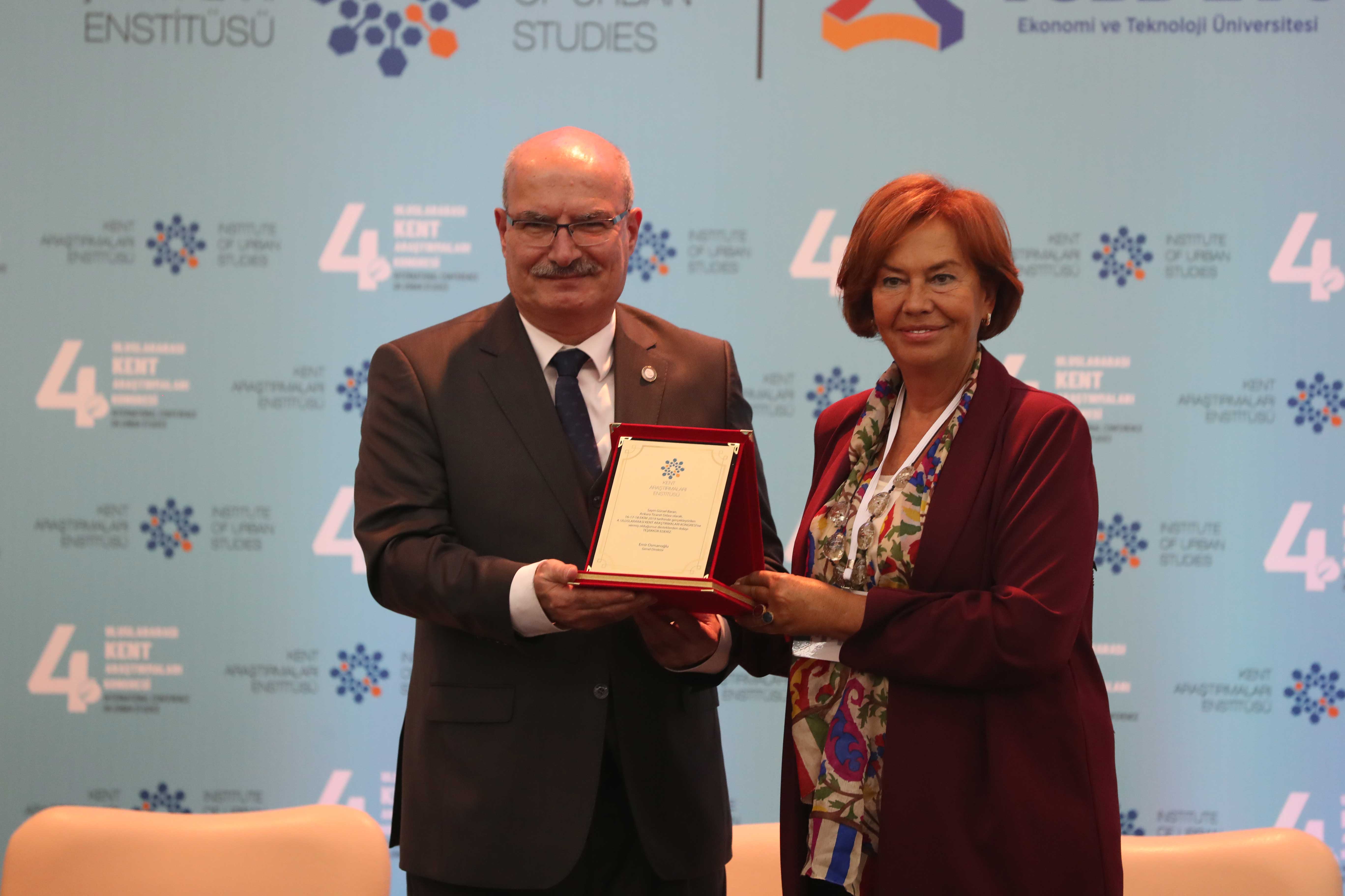 Açılış konuşmalarının ardından Avrupa Konseyi Yerel ve Bölgesel Yönetimler Kongresi Başkan Yardımcısı Gaye Doğanoğlu tarafından ATO Başkanı Baran'a teşekkür plaketi takdim edildi.