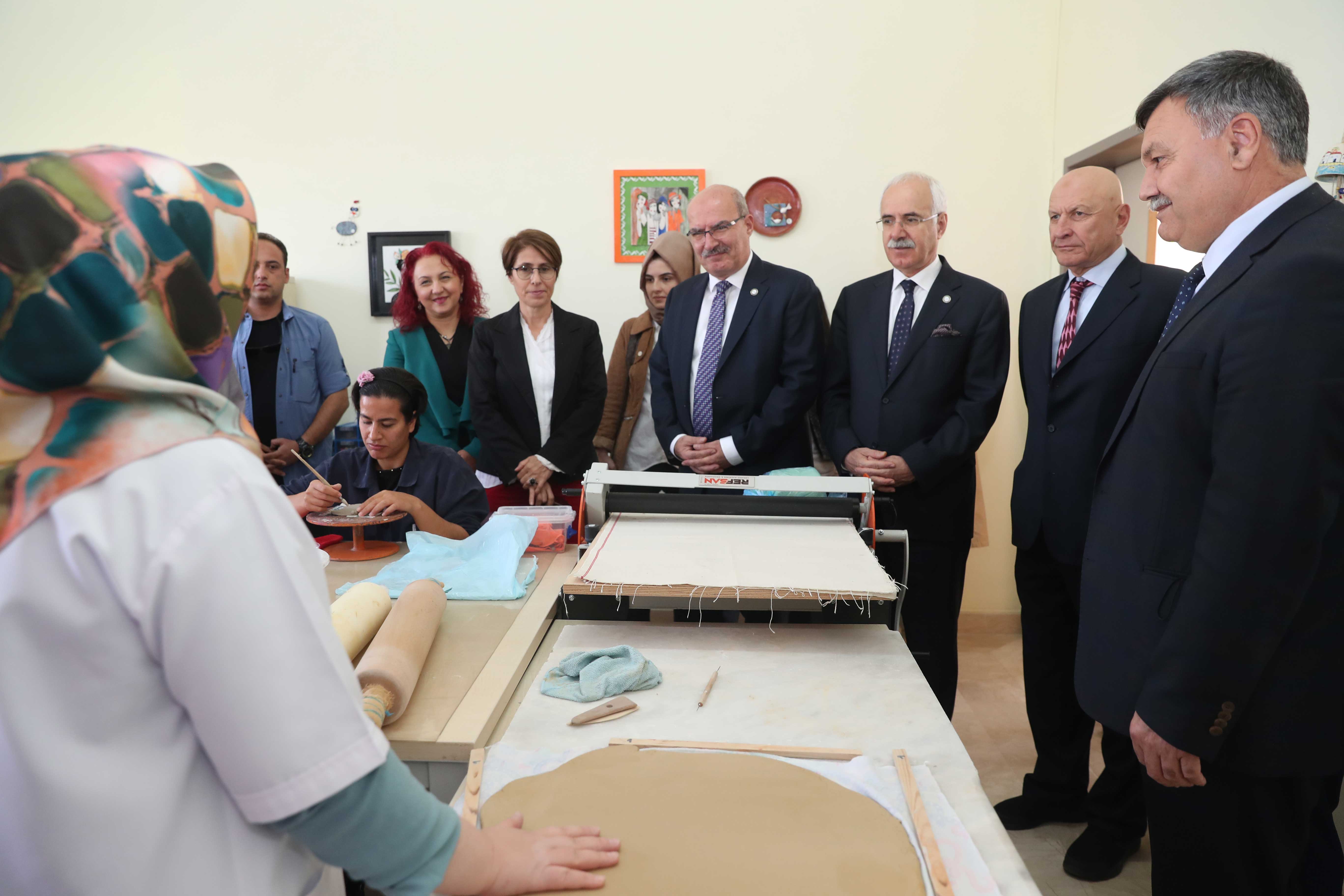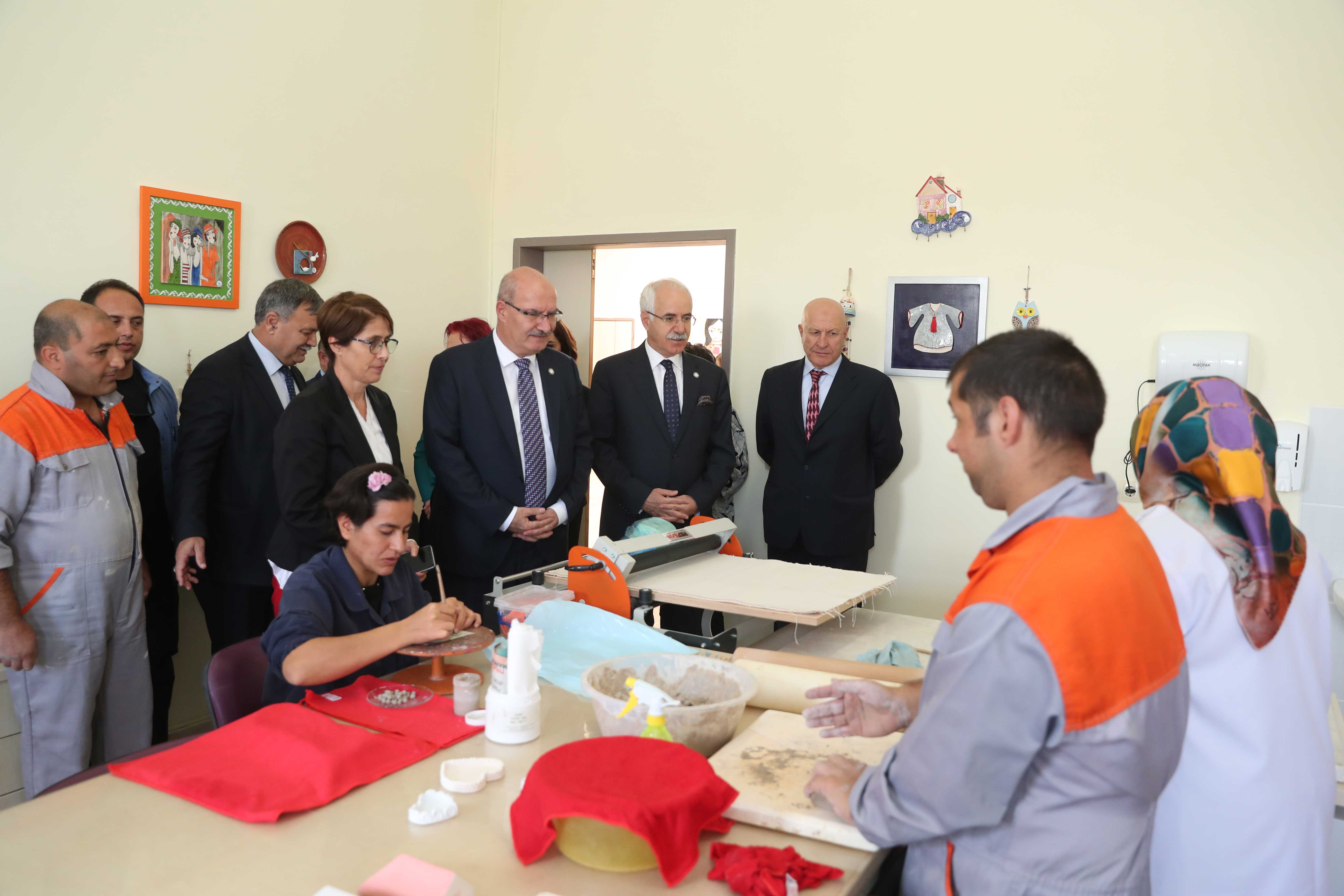 ATO Başkanı Baran, ATO Başkan Yardımcısı Temel Aktay ve Yönetim Kurulu Üyesi Nuh Acar'la birlikte Aile, Çalışma ve Sosyal Hizmetler Bakanlığı'nın Pursaklar'da bulunan Saray Engelsiz Yaşam, Bakım ve Rehabilitasyon Merkezi'ni ziyaret etti.