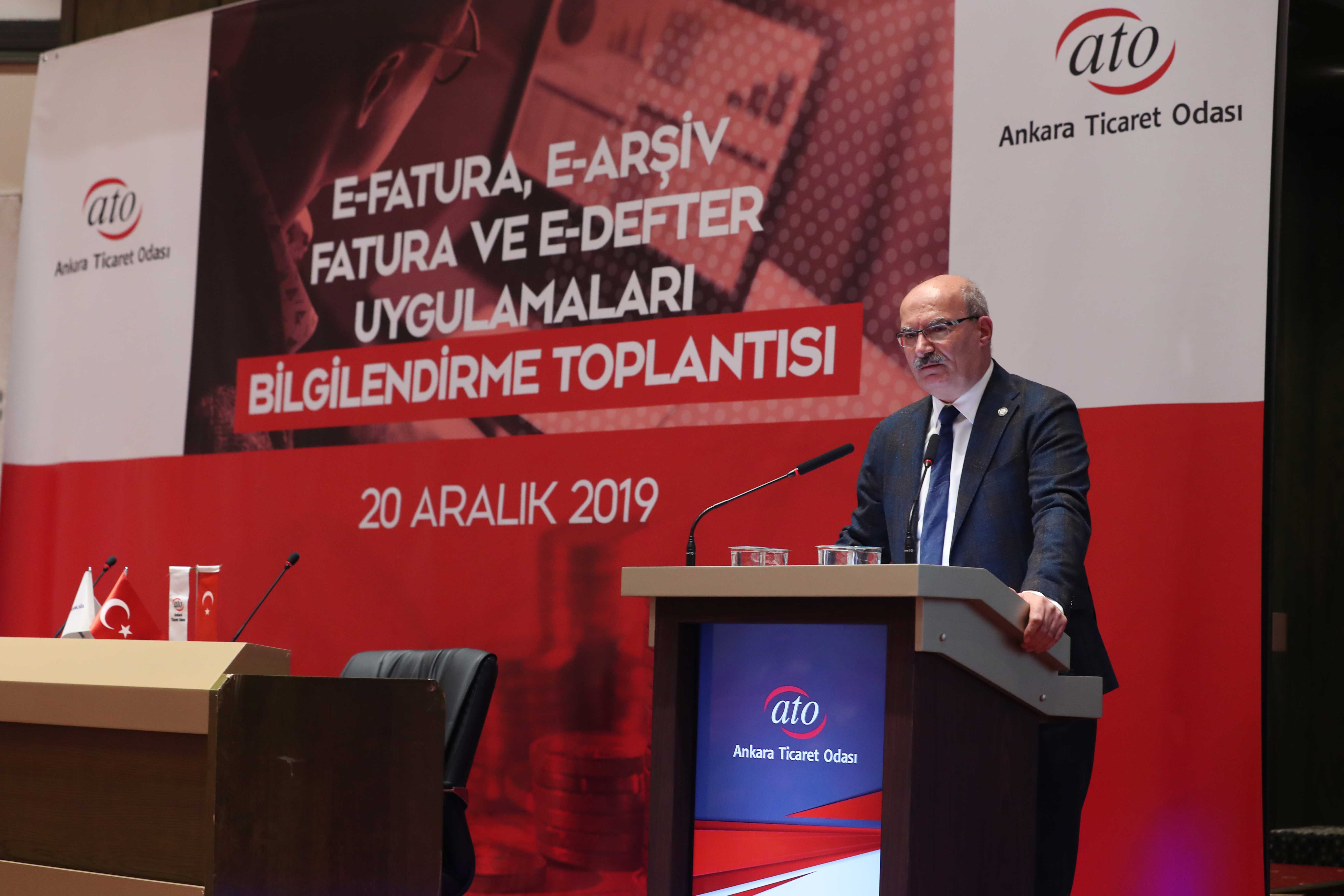 21 ARALIK 2019- Teknolojik gelişmelere uyum ve kamu hizmetlerinin hızlı yürütülmesi açısından vergi mevzuatında yapılan değişiklerle birlikte kapsamı genişletilen ve 1 Ocak 2020 tarihinden itibaren uygulaması zorunlu olan elektronik belge ve defter uygulamaları Ankara Vergi Dairesi yetkilileri tarafından Ankara Ticaret Odası (ATO) üyelerine anlatıldı.