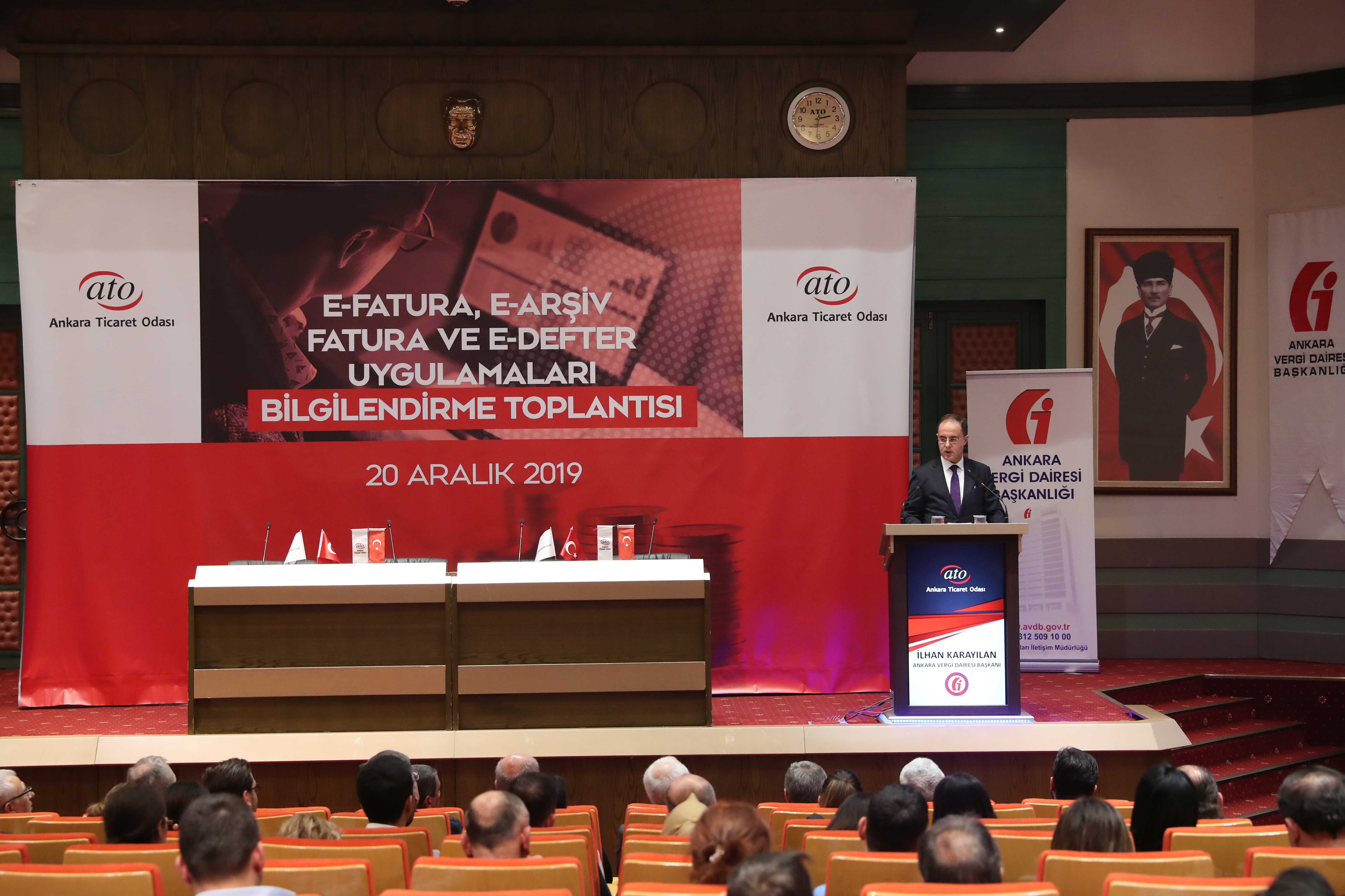 Ankara Vergi Dairesi Başkanı İlhan Karayılan da toplantının açılışında yaptığı konuşmada, 1 Ocak 2020 tarihinde yürürlüğe girecek elektronik belgeler hakkında bilgi verdi. Karayılan, bazı uygulamaların da yıl ortasında yürürlüğe gireceğini kaydetti. Ankara Vergi Dairesi Başkanlığı olarak Başkent'te hizmet verdikleri vergi dairelerinde mükellef odaklı hizmet anlayışı ortaya koyduklarını anlatan Karayılan, mükellefe yaklaşım politikalarının kırmızı çizgileri olduğunu söyledi.