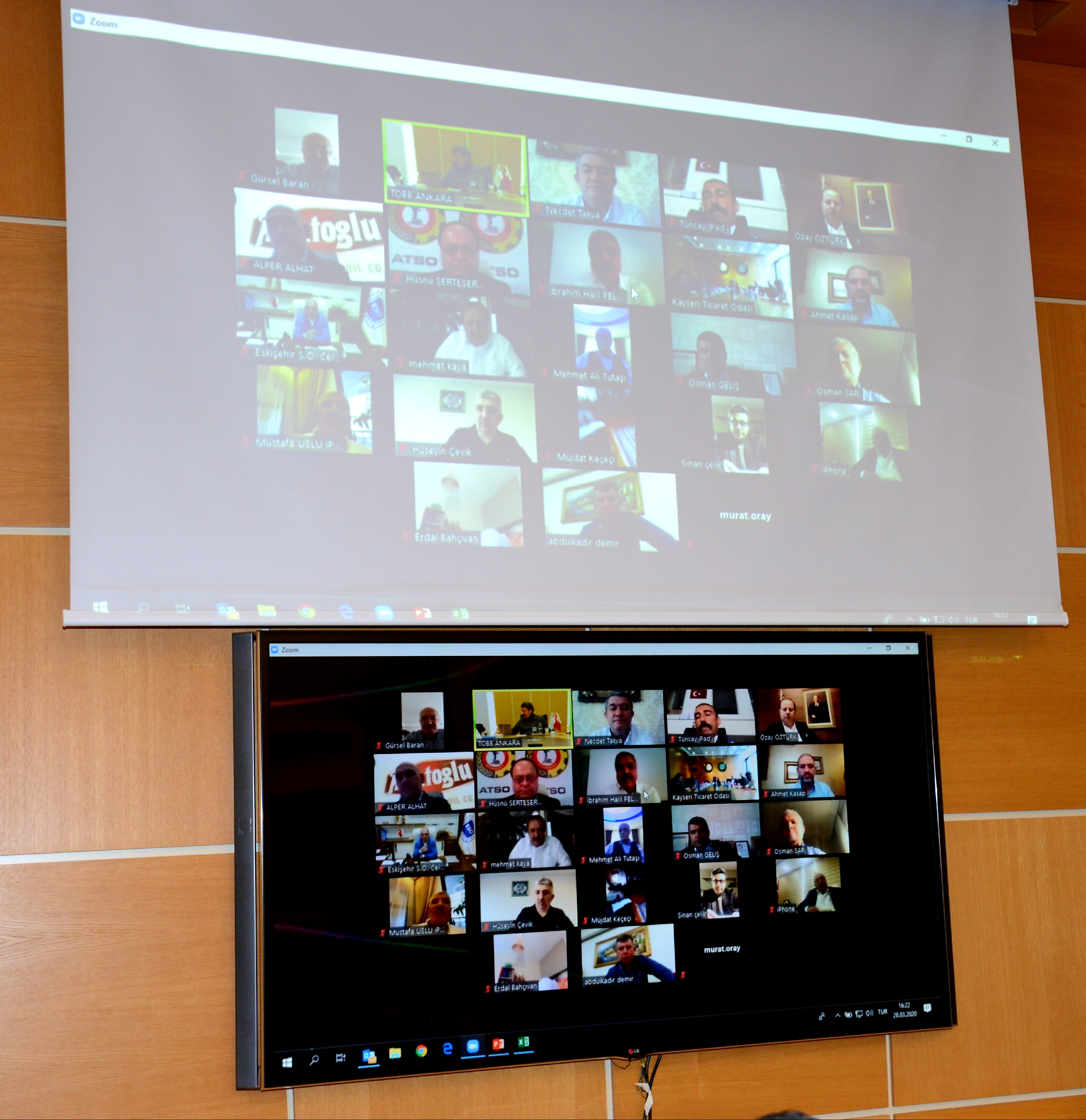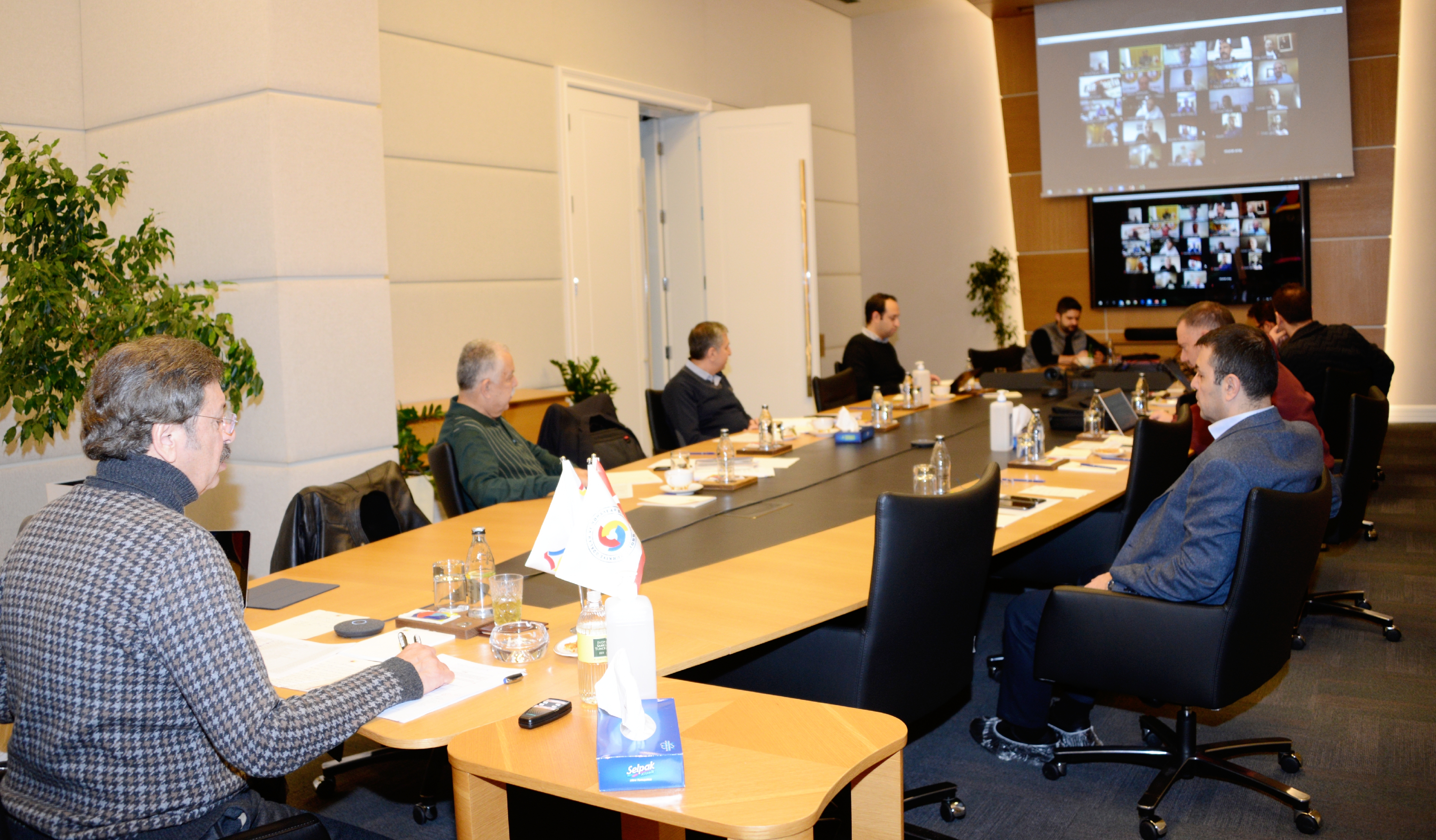 29 MART 2020- Ankara Ticaret Odası (ATO) Yönetim Kurulu ve TOBB Ticaret Odaları Konsey Başkanı Gürsel Baran, Türkiye Odalar ve Borsalar Birliği (TOBB) Başkanı Rifat Hisarcıklıoğlu'nun TOBB Yüksek Koordinasyon Kurulu, Strateji Geliştirme Yüksek Kurulu ve Konsey Başkanları ile video konferans yöntemiyle gerçekleştirdiği toplantıya katıldı.