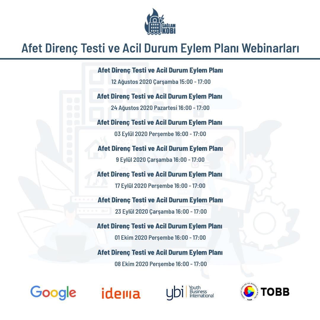 Bu çerçevede KOBİ'lerin dijitalleşmelerini sağlama ve afetlere hazırlama konularında webinarların gerçekleştirileceği bildirilmektedir.