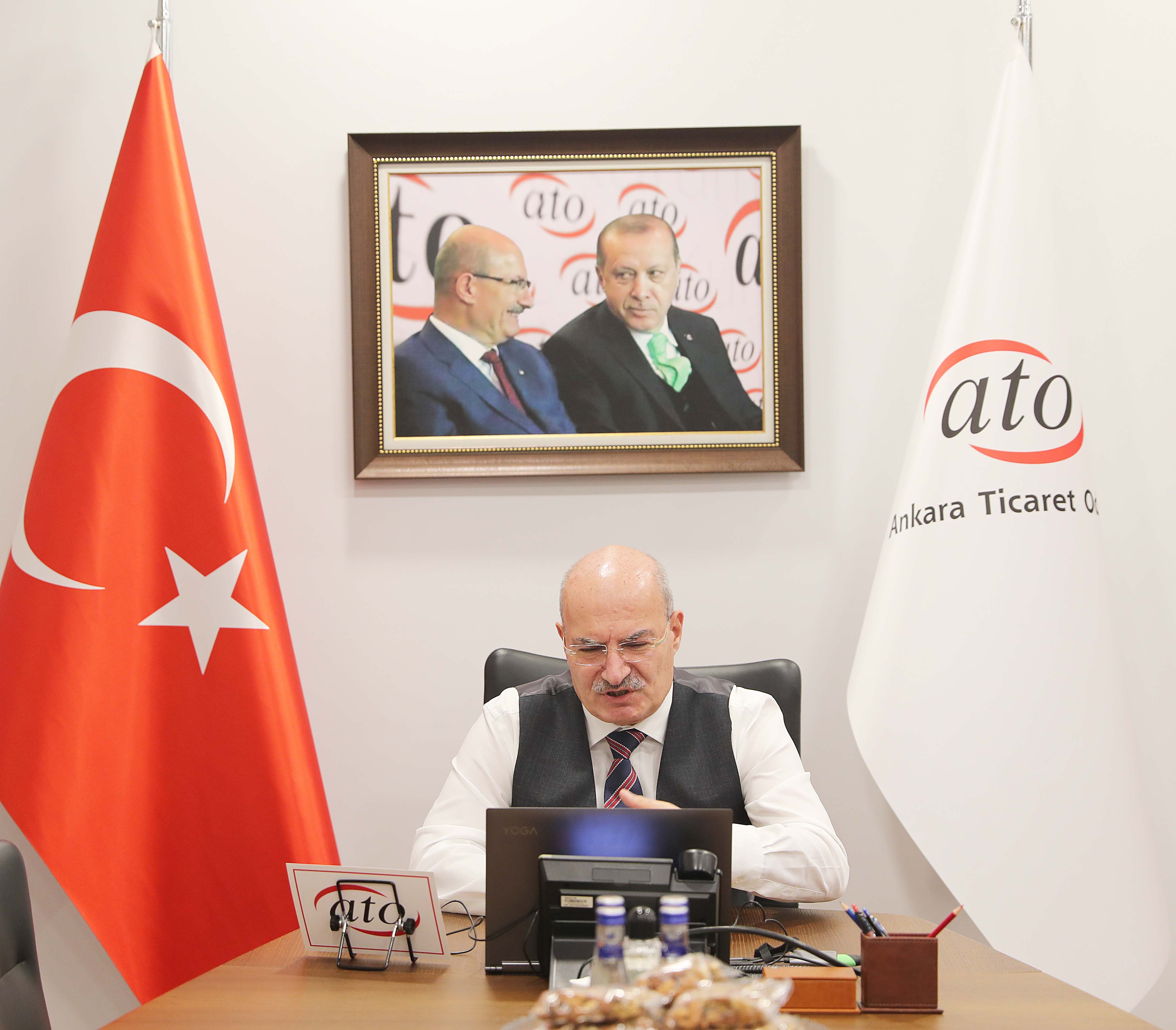 21 KASIM 2020- Ankara Ticaret Odası (ATO) Yönetim Kurulu Başkanı Gürsel Baran, Cumhurbaşkanı Recep Tayyip Erdoğan'ın Türkiye'nin dünyanın ilk 10 büyük ekonomisi arasında yer alma hedefi doğrultusunda çalışmalarını sürdürdüklerini belirterek, "Üyelerimizi dijital dünyada geliştirmeye, e-ticaret, e-ihracat yapabilir hale getirmeye çalışıyoruz. İlk etapta bin üyemizi e-ihracatçı hale getireceğiz. İstiyoruz ki ticaretimiz sınırlarını aşsın, ATO üyeleri dünyanın dört bir yanındaki milyonlara ulaşsın" dedi.