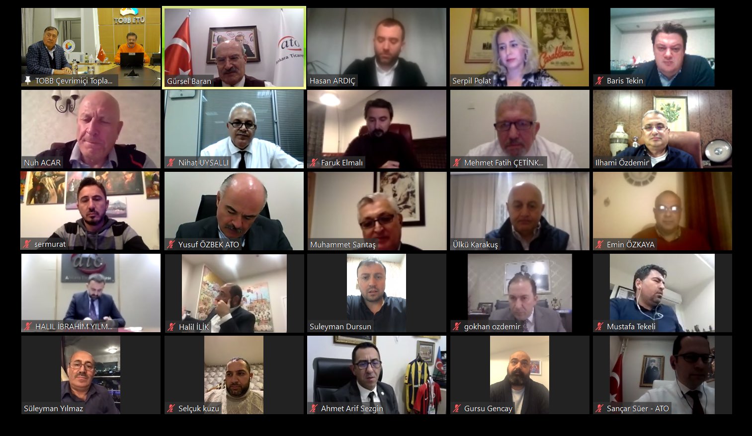 Toplantının açılışında konuşan ATO Başkanı Baran, düzenledikleri online toplantılarla sektörlerin sorunlarını masaya yatırarak çözüm önerilerini ele aldıklarını belirterek, "Olağanüstü bir dönem yaşıyoruz. Bir yandan koronavirüsle mücadele sürecinin sektörlere etkilerini minimuma indirmek için gayret sarf ediyoruz bir yandan da devam eden sorunlara çözüm üretilmesi için çalışmalar yapıyoruz" dedi. Sektörlerin gündemlerindeki konular hakkında TOBB Başkanı Rifat Hisarcıklıoğlu'na bilgi veren Baran, "TOBB Başkanımız Sayın Rifat Hisarcıklıoğlu da ne zaman bir talebimiz olsa, ne zaman bir derdimiz olsa her zaman yanımızda. Gece gündüz demeden üyelerimizin sorunlarının çözümü noktasında çalışmalar yapıyor" diye konuştu.