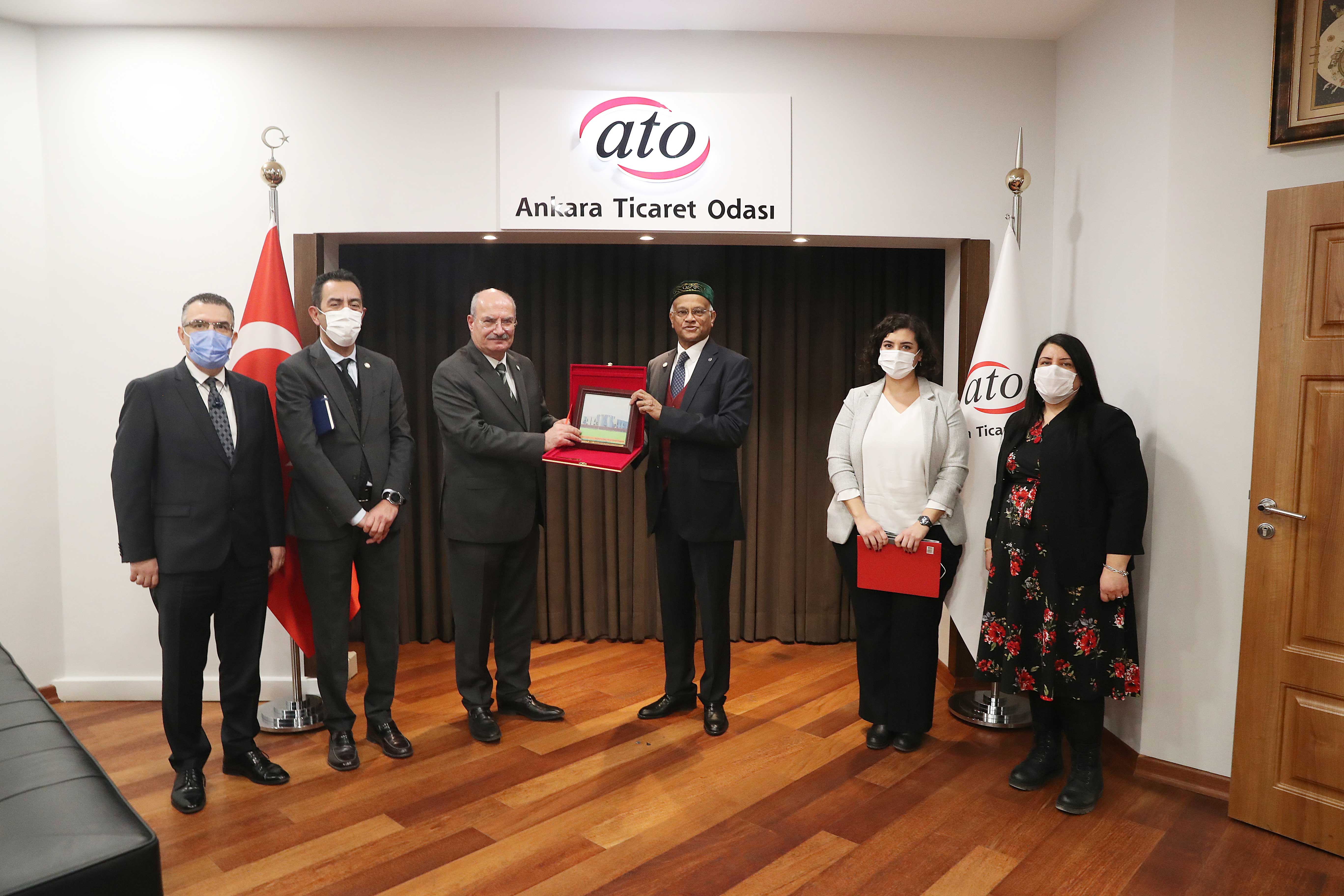 Bangladeş Büyükelçisi Masud Mannan, ATO Başkanı Gürsel Baran'ı makamında ziyaret etti. Türkiye'de görev yapmaktan ve ATO'da bulunmaktan duyduğu memnuniyeti dile getiren Büyükelçi Mannan, "Türkiye ile işbirliğini, artırmak için hevesli ve istekliyiz" dedi. Türkiye'nin savunma sanayi, silah, cephane ve drone üretiminde kendini kanıtlamış bir ülke olduğunu kaydeden Büyükelçi, ticareti geliştirmek için pandeminin sona ermesini beklemeden on-line toplantılarla iki ülkenin iş heyetlerinin bir araya getirilebileceğini söyledi.