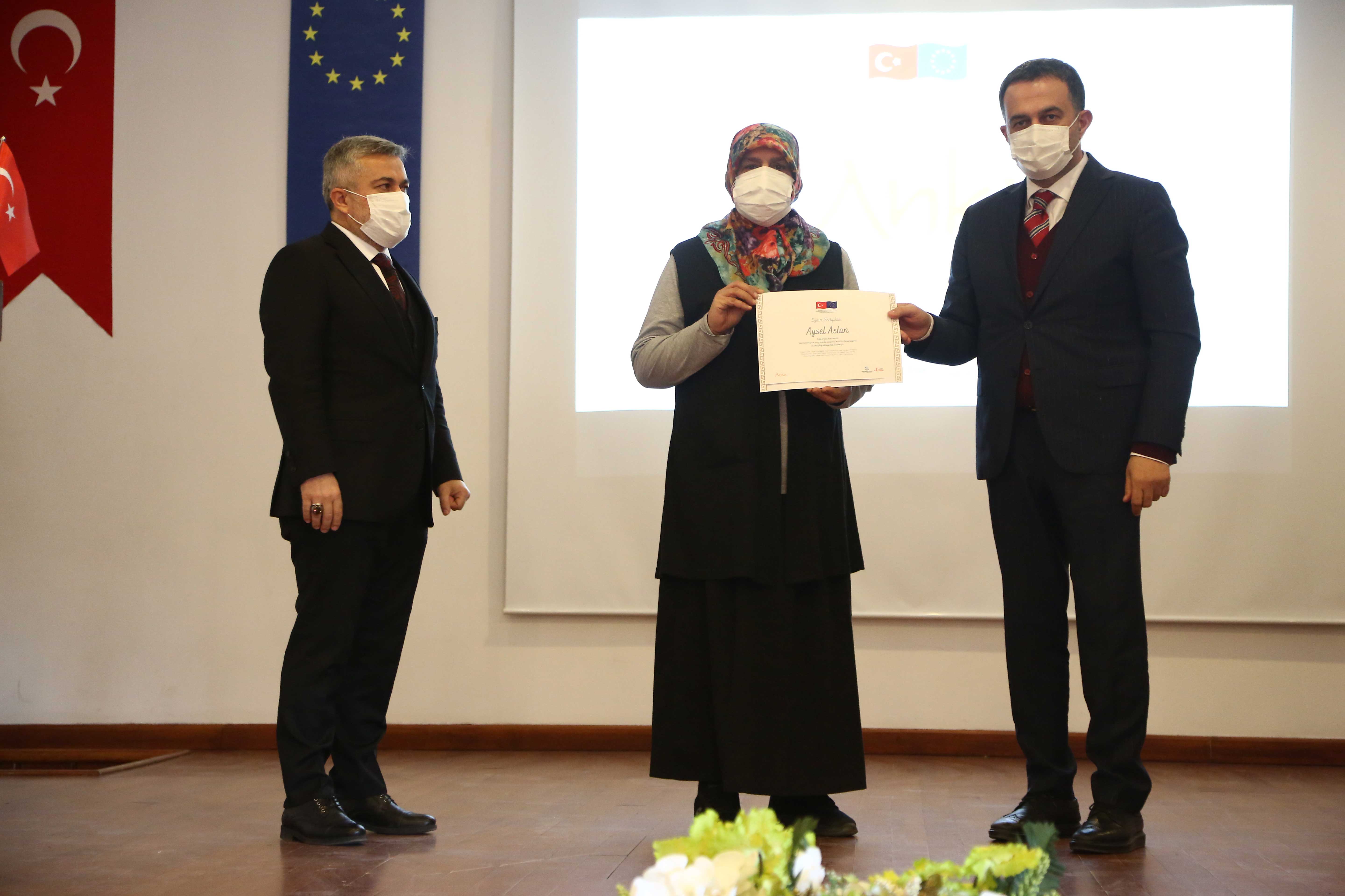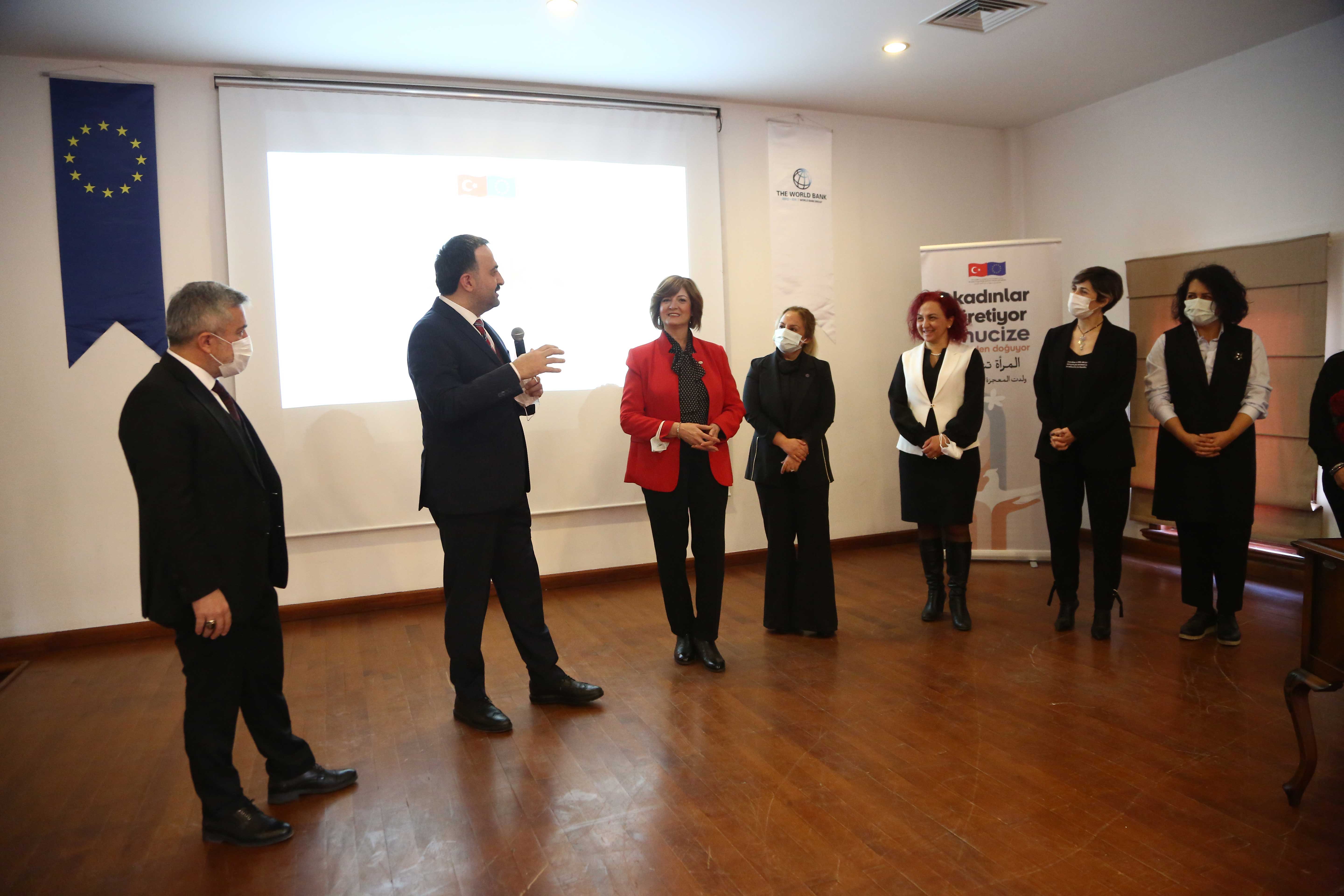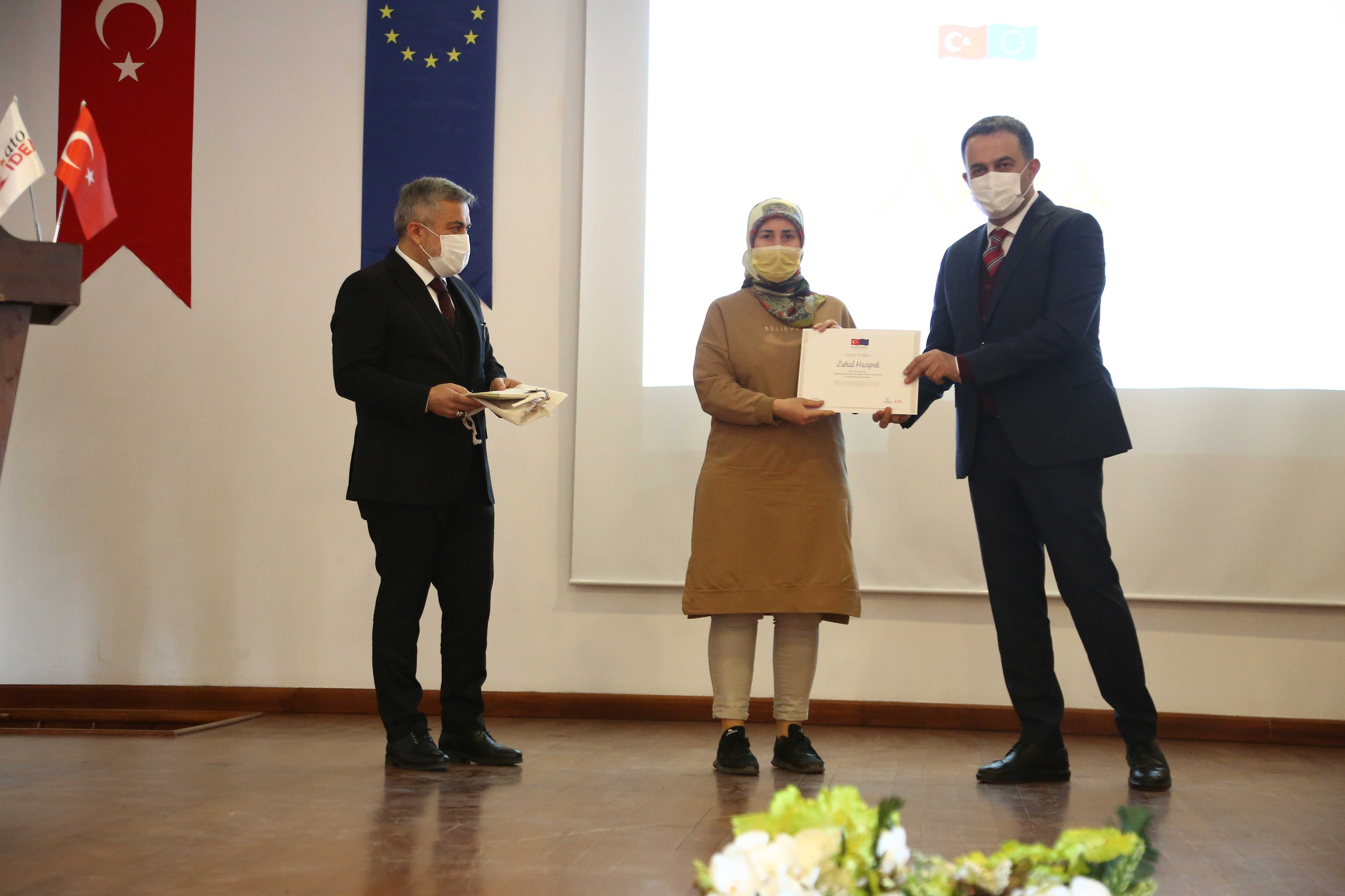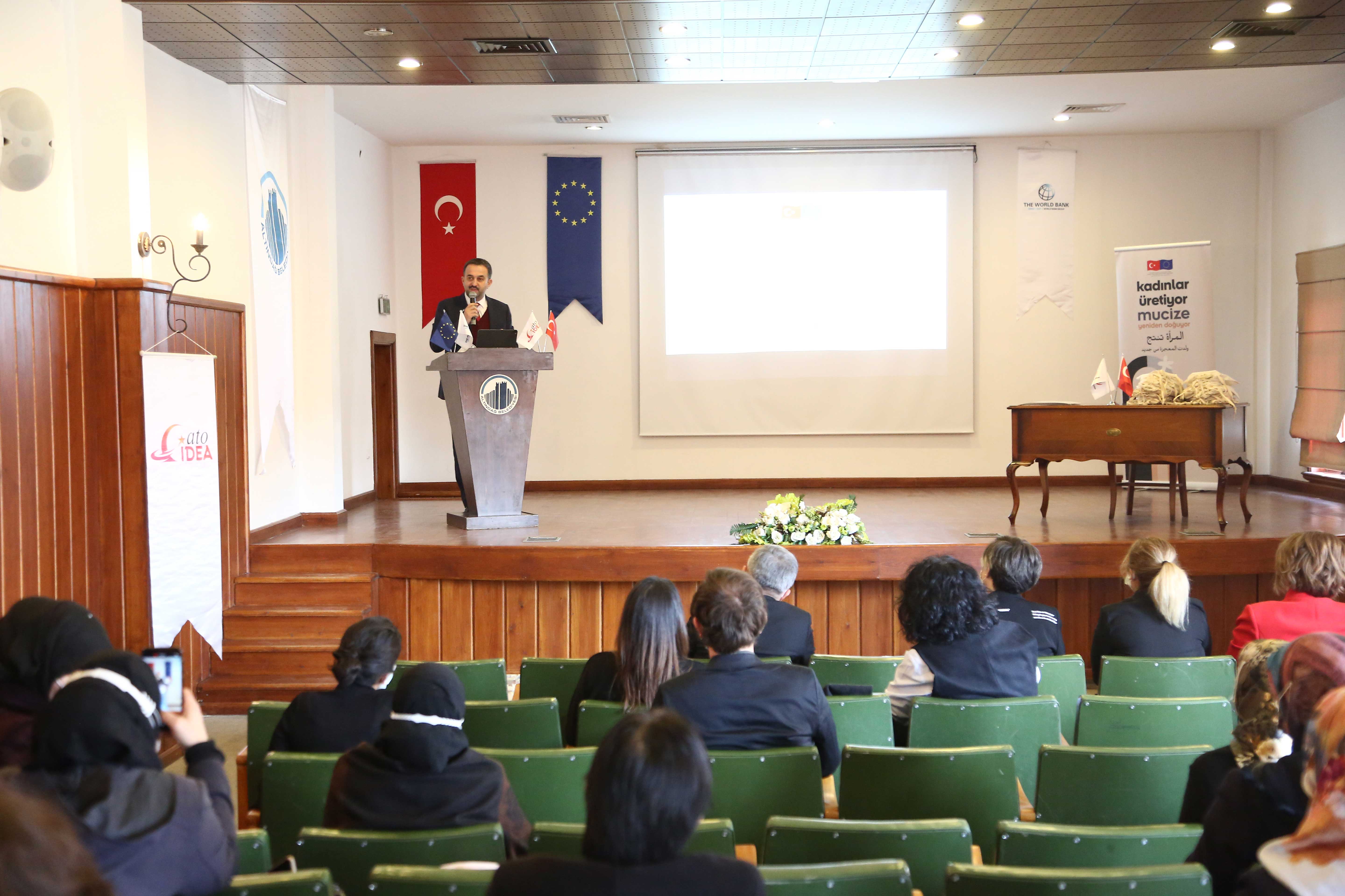 Ankara Ticaret Odası'nın (ATO) koordinatörlüğünde ve Dünya Bankası'nın "Seçilmiş Bölgelerde Geçici Koruma Altındaki Suriyeliler ve Türk Vatandaşları için Ekonomik Fırsatların İyileştirilmesi Projesi" kapsamında gerçekleştirilen ve geçici koruma altındaki Suriyeli kadınlar ile Türk kadınların iş hayatına girişlerini kolaylaştırmak ve sürdürülebilir şekilde gelir elde etmelerini desteklemek amacı ile yürütülen projede eğitim faaliyetlerinin tamamlanması nedeniyle sertifika töreni düzenlendi.