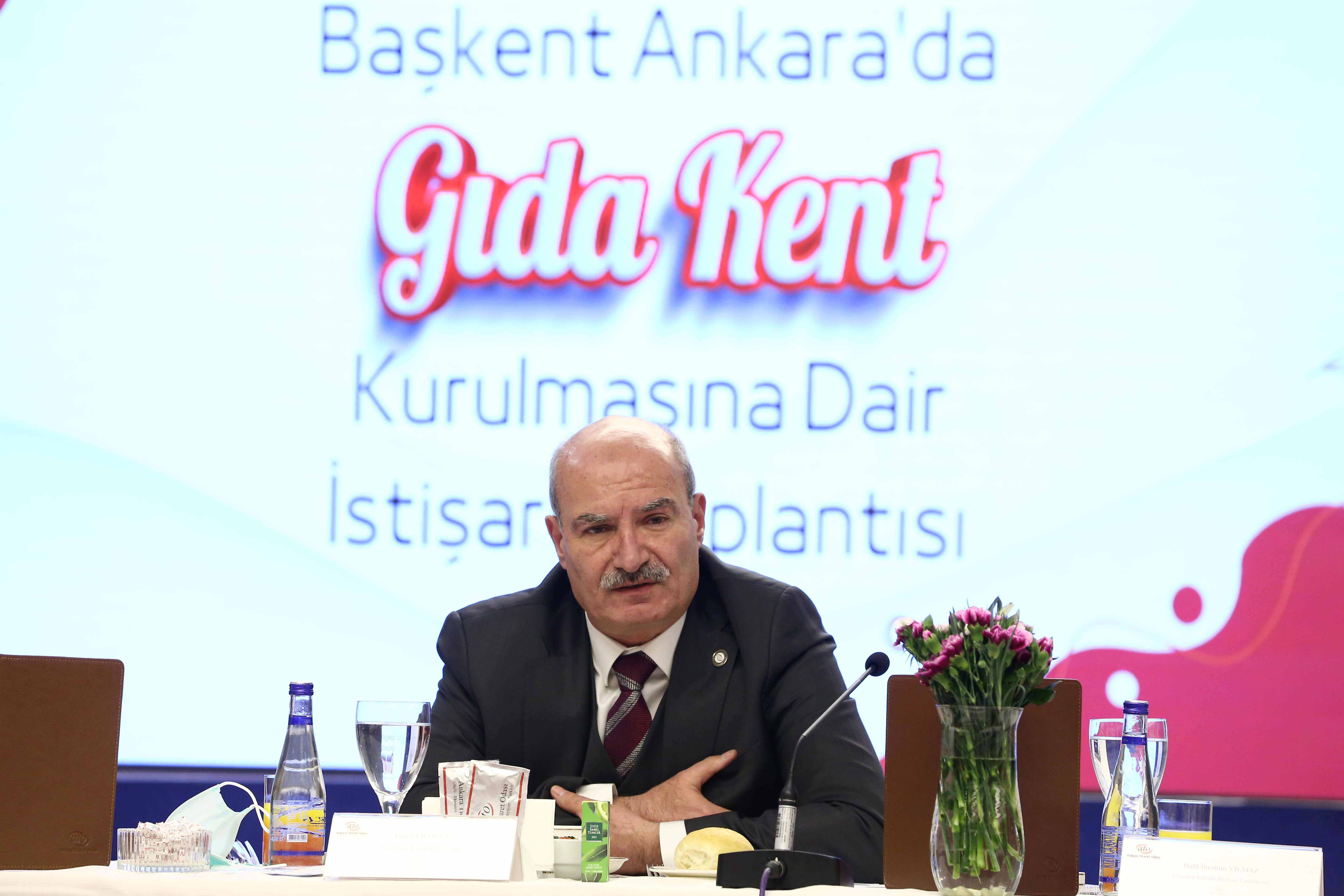 Toplantının açılışında konuşan ATO Başkanı Baran, Ankara Ticaret Odası olarak 2017 yılından bu yana Ankara'da "Gıda Kent" kurulmasına yönelik çalışmalar yaptıklarını anlattı. Çevre ve Şehircilik Bakanı Murat Kurum'un tensipleriyle yapılan toplantılarla hayata geçirilmeye çalışılan projenin Ankara için çok büyük fırsat olduğunu dile getiren Baran, "Hem gıda sektörünü hem de şehrimizi trafik başta olmak üzere birçok açıdan rahatlatacak bir proje. Ankara için bir şans olduğunu düşünüyorum" dedi.