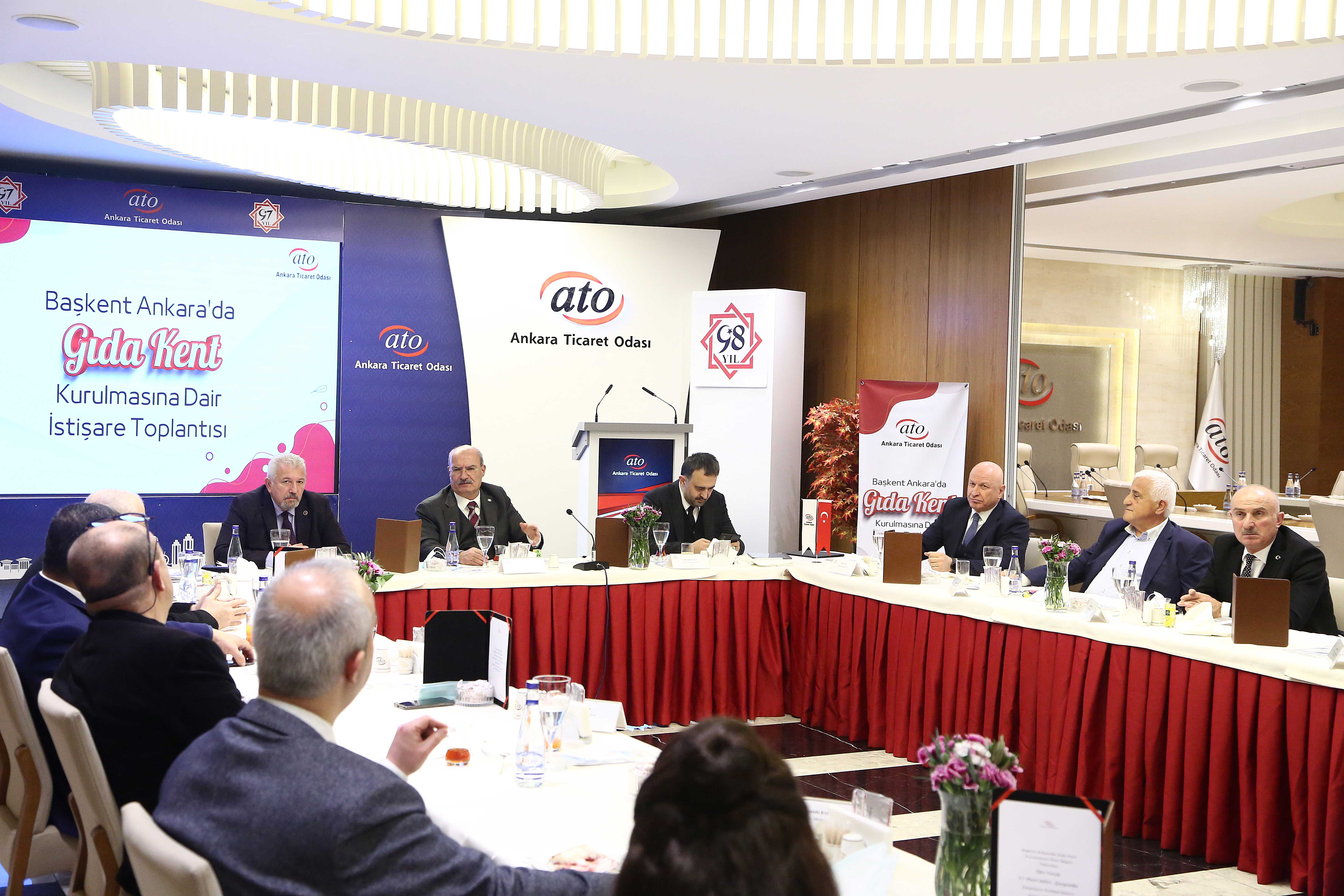 20 MART 2021-Ankara Ticaret Odası (ATO) üyesi olan ve Ankara'nın değişik bölgelerinde faaliyet gösteren gıda üreticisi ve toptancısı, aktar, baharatçı, kabzımal, et, süt, balık ve tavuk ürünü ticareti yapan yaklaşık 10 bin işletmenin temsilcileri, ATO Yönetim Kurulu Başkanı Gürsel Baran Başkanlığı'nda bir araya gelerek Başkent'te "Gıda Kent" kurulması konusunda anlaşma sağladı.