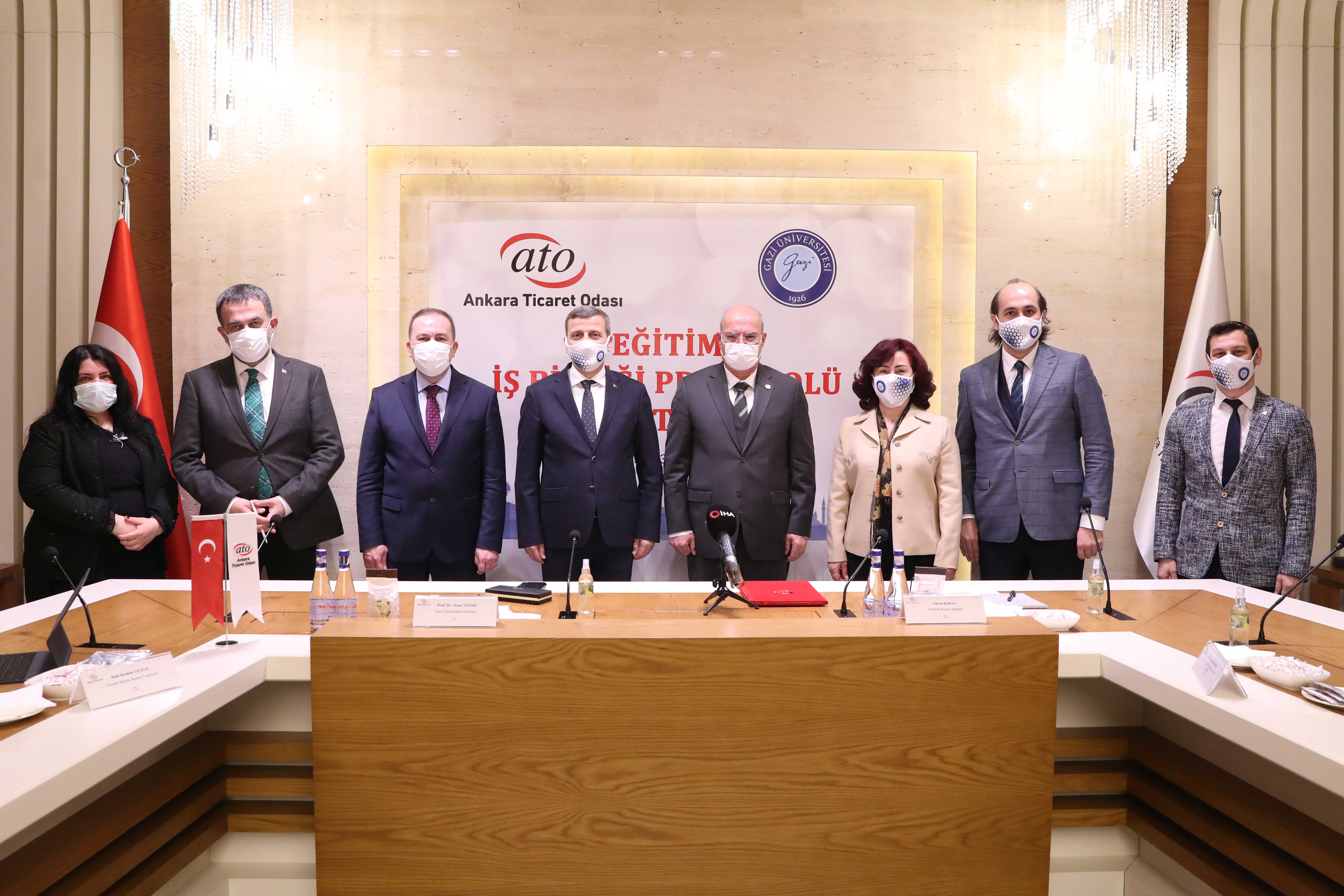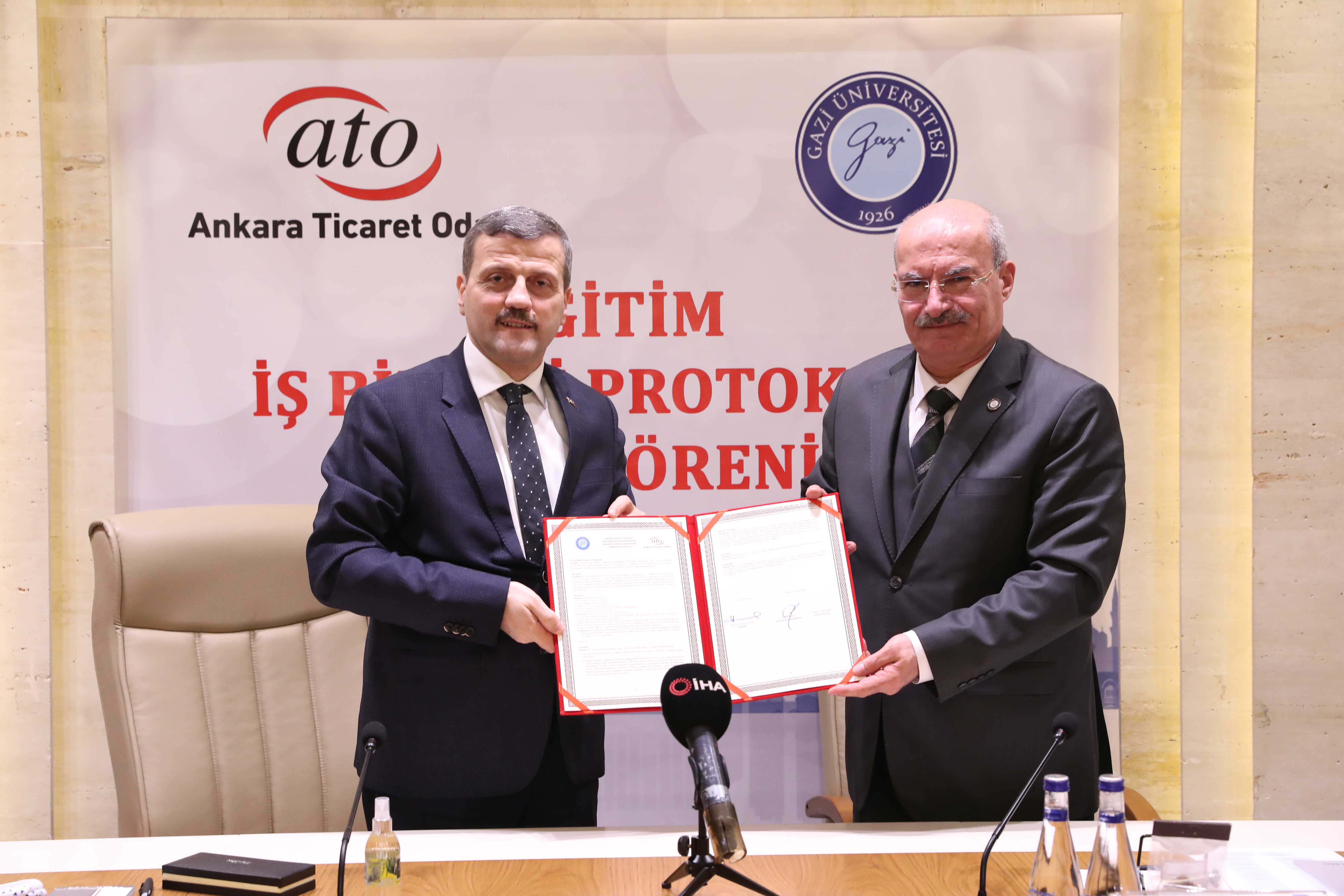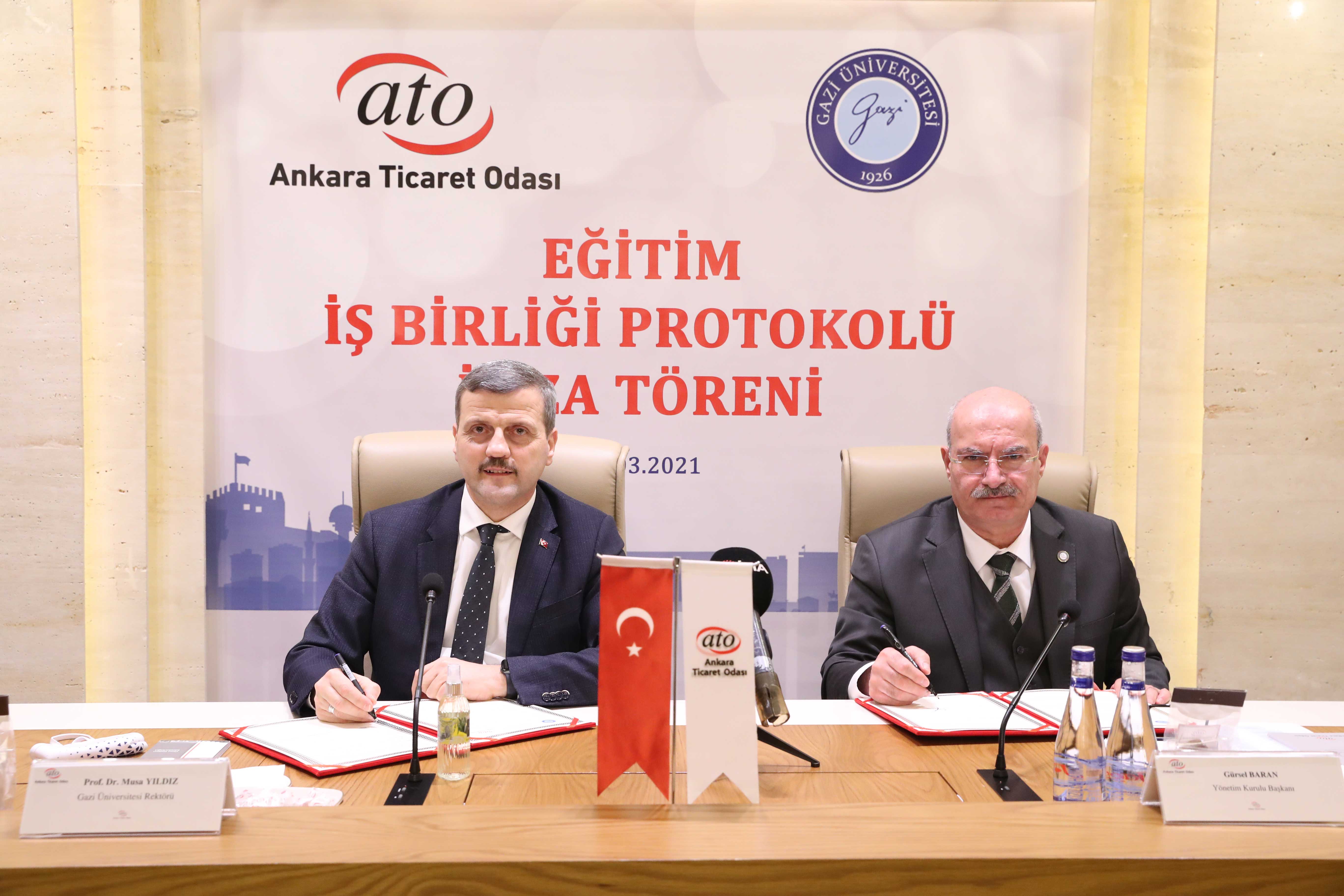 ATO Duatepe Hizmet Binası'nda gerçekleşen protokole ATO Yönetim Kurulu Başkanı Gürsel Baran ve Gazi Üniversitesi Rektörü Prof. Dr. Musa Yıldız imza koydu. İmza töreninde konuşan Baran, özelikle pandemi sürecinde hız kazanan bilim ve teknolojideki değişimin işletmelerin de gelişmesini zorunlu kıldığını hatırlatarak, eğitimin önemini "Teknolojik ve ekonomik değişimin artması ve hızlanması, işletmelerin de ayak uydurması gereken bir değişimi zorunlu kılıyor. Eğitimler sayesinde, yönetici ve çalışanlar işletmenin kalitesini yükseltiyor, rekabette öne taşıyor. Sonuçta kent ekonomisi ve ülke ekonomisi kazanıyor. ATO olarak üyelerimizin dönüşümlere uyum sağlaması ve bilgi birikimlerini artırarak işlerini büyütmeleri en büyük isteğimiz. Bu yüzden mesleki yeterliliklerini arttırma adına imza attığımız işbirliklerine önem veriyoruz" sözleriyle anlattı. Gazi Üniversitesi'nin Türkiye'nin kalkınmasında, gelişmesinde, genç nesillerin yetişmesinde önemli rolü olduğunu, başarısını ulusal ve uluslararası alanda kanıtladığını ifade eden Baran, "Gazi Üniversitemizin Fen Bilimleri Enstitüsü'ne bağlı alanlarını kapsayan bu protokol ile üyelerimiz, çalışanları ve ATO personelimiz yüksek lisans, doktora ve uzaktan öğretim yüksek lisans programlarından yararlanabilecek" dedi.