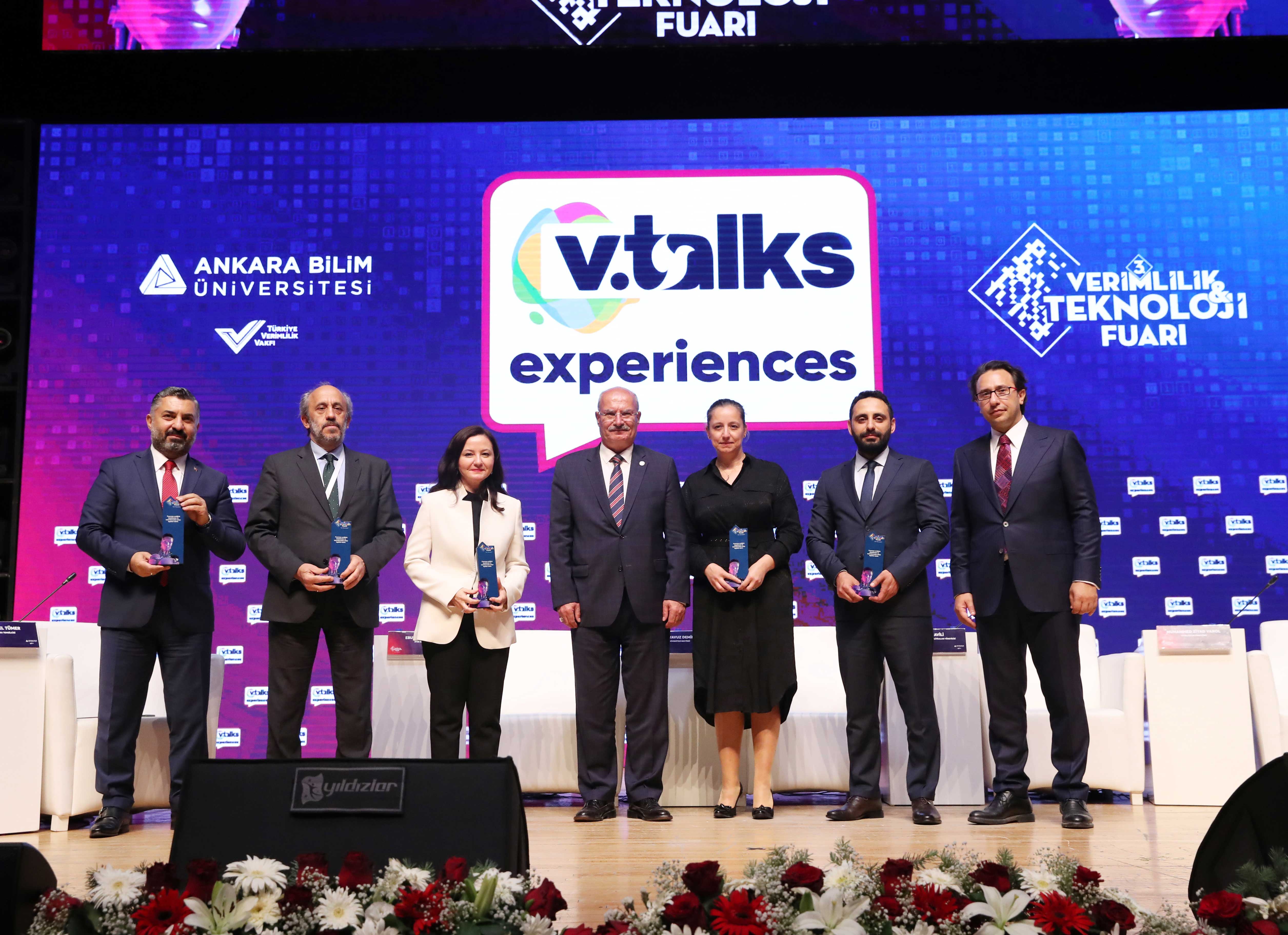 ATO Başkanı Gürsel Baran, Verimlilik ve Teknoloji Fuarı'ndaki V-Talks Experiences Programı'na da katılarak, "Geleceğin İletişim Modelleri" oturumu moderatörü Milliyet Gazetesi Ankara Temsilcisi Didem Özel Tümer ile konuşmacılar RTÜK Başkanı Ebubekir Şahin, Netflix Direktörü Pelin Mavili, Tivibu Direktörü Muhammed Ziyad Varol ile Ankara Bilim Üniversitesi Rektörü Prof. Dr. Yavuz Demir'e plaketlerini, Ankara Bilim Üniversitesi Mütevelli Heyeti ve Türkiye Verimlilik Vakfı Yönetim Kurulu Başkanı Dr. Cemalettin Kömürcü ile birlikte takdim etti.