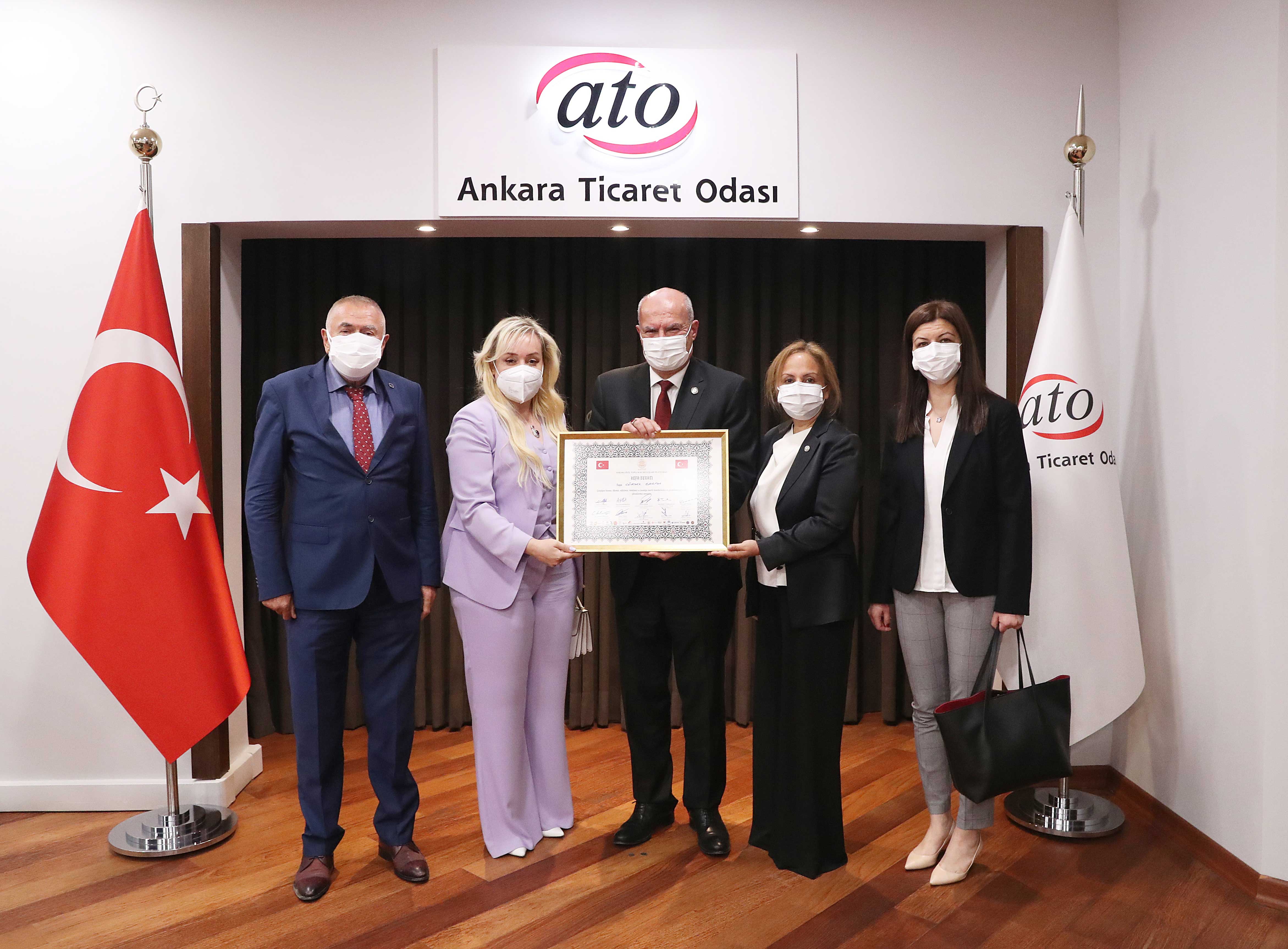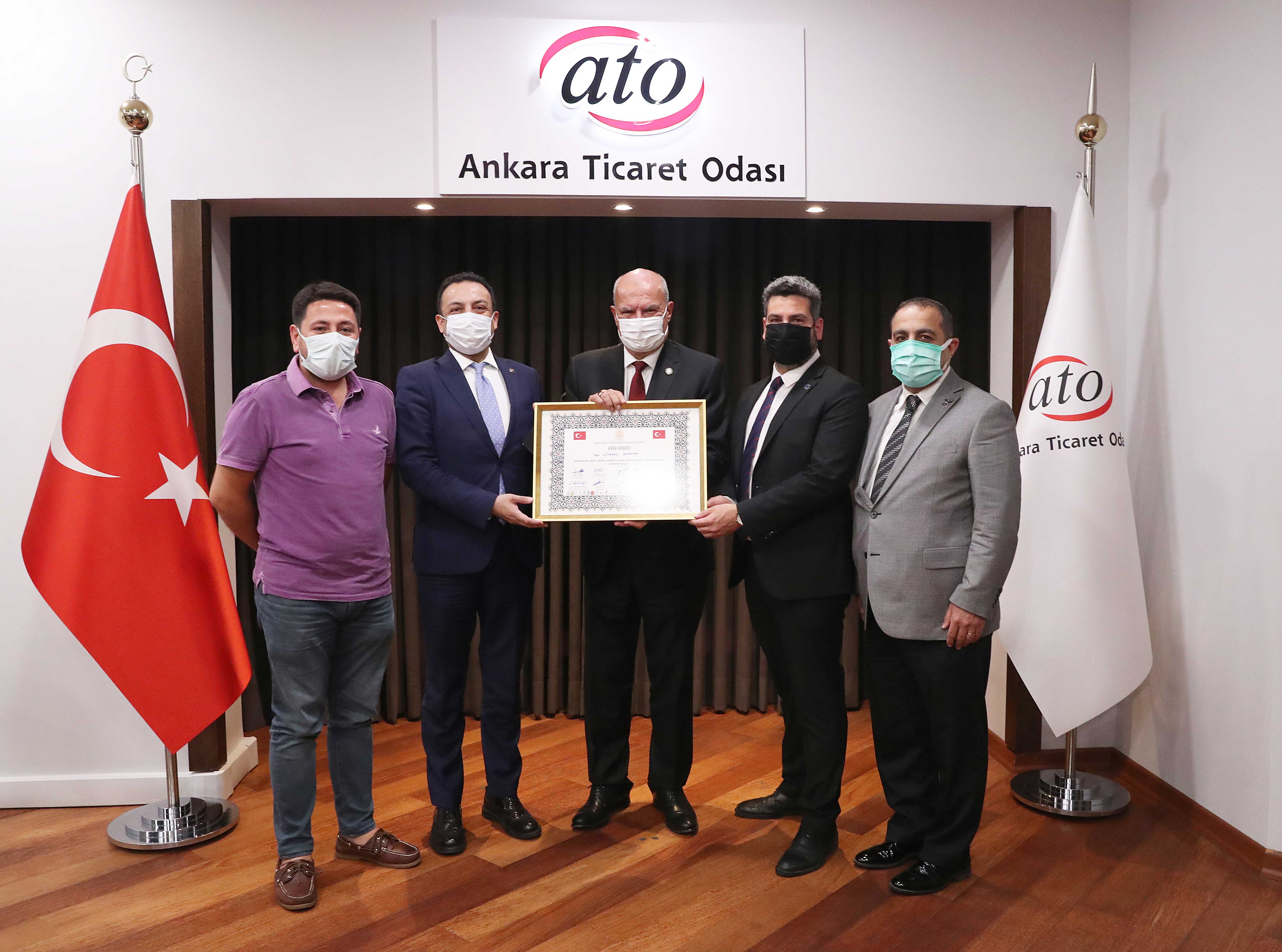 ANKARA SİVİL TOPLUM KURULUŞLARI PLATFORMU, ATO BAŞKANI BARAN'A YAPTIĞI BAŞARILI ÇALIŞMALAR NEDENİYLE "VEFA BERATI" TAKDİM ETTİ.