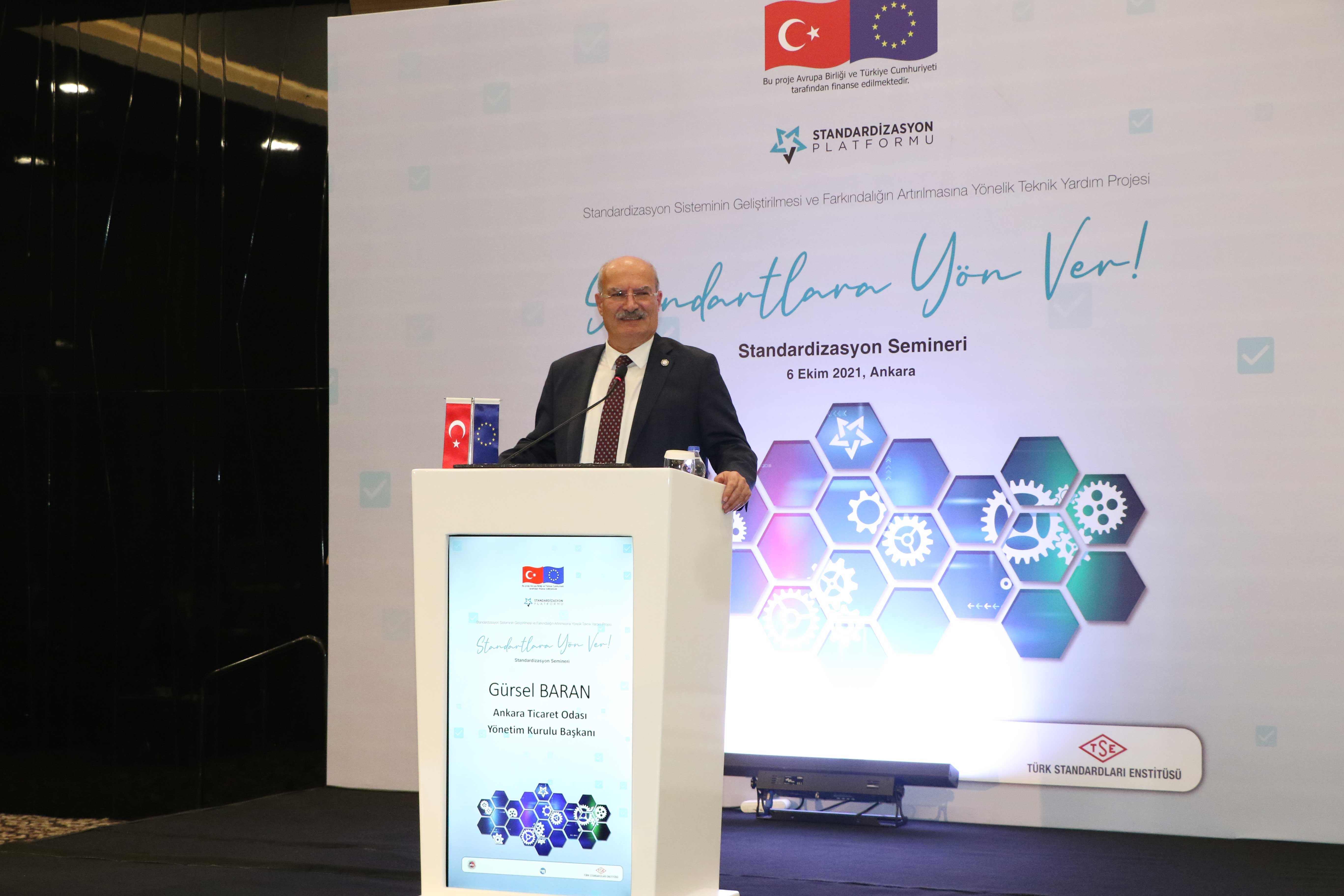 Türk Standartları Enstitüsü'nün (TSE)n, Avrupa Birliği (AB) ve Türkiye'nin ortak finansmanıyla yürüttüğü "Standardizasyon Sisteminin Geliştirilmesi ve Farkındalığın Artırılmasına Yönelik Teknik Yardım Projesi" kapsamında hayata geçirdiği standardizasyon seminerlerinin 9'uncusu Ankara'da gerçekleştirildi. Programın açılışında konuşan Baran, sanayinin standartlara uygun ürünlerle küresel pazarlara girmesini sağlamasının yanı sıra standartların hazırlanması sürecinin de TSE tarafından gerçekleştirildiğine dikkati çekti. Baran, Türkiye'nin dünyanın en maliyetli coğrafyasında bulunduğunun altını çizerek, bölgesinde güçlü bir ülke olarak varlığını korumak durumunda olduğunu belirtti. Baran, "Bunun için çok üretmeli ve dünya standartlarında ihraç edebilmeliyiz ki katma değerli getirimiz olsun. Cari açığı önlemenin yolu budur" dedi.