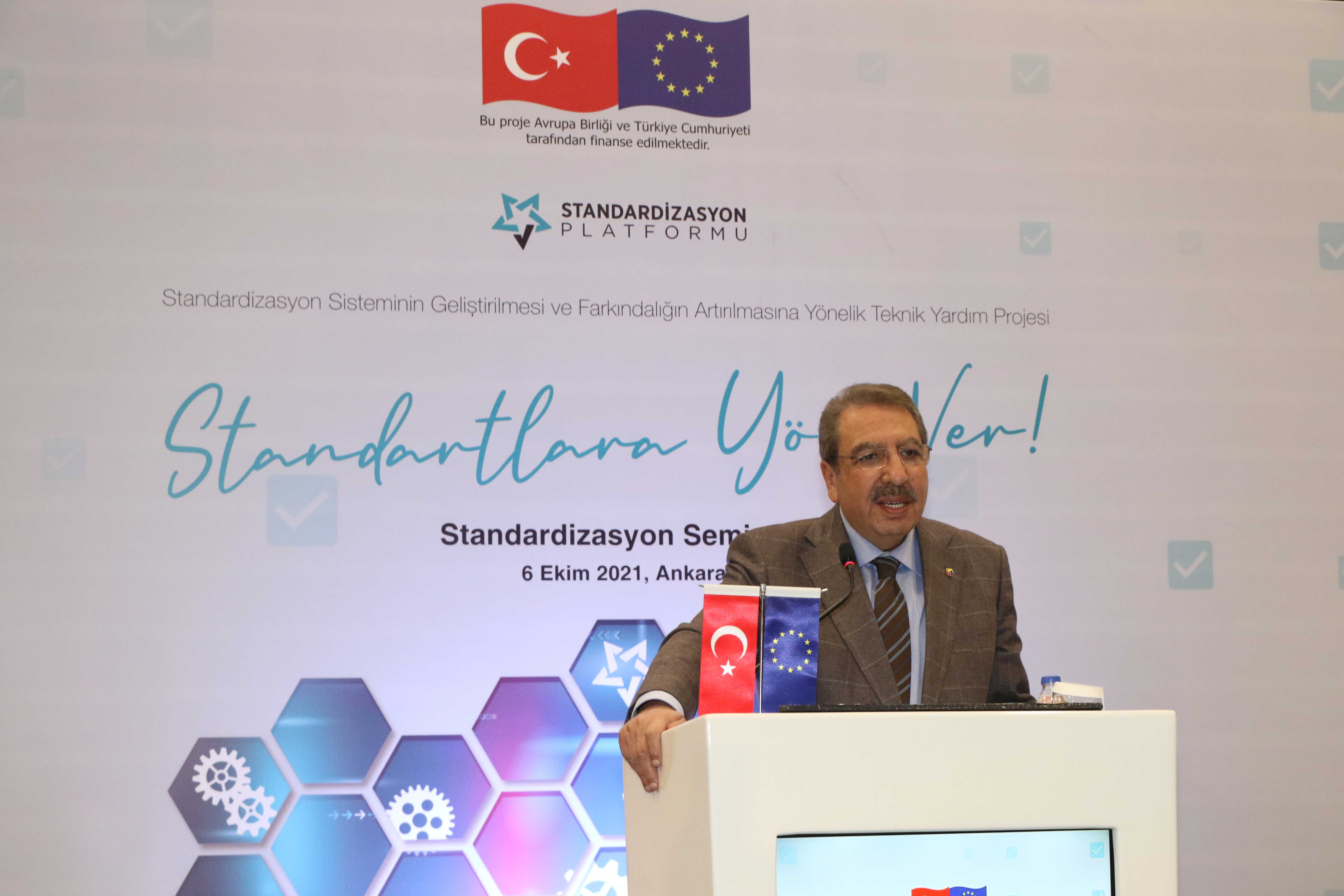 "Yeşil Mutabakatla ilgili yasal hazırlıklarımızın devam ettiği bu süreçte TSE sürece uyum için çalışmaları reel sektörümüzü yönlendirecek. TSE'ye burada yeni bir iş alanı açılıyor. Bütün dünyada işleyişler ve standartlar değişecek. İhracatımızın yüzde 45'ini AB'ye yapıyoruz. İhracata ihtiyacımız var ticarete ihtiyacımız var. Yeşil mutabakat çerçevesinde oluşturulacak AB standartlarına uymak zorundayız. TSE'ye önemli görevler düşüyor."