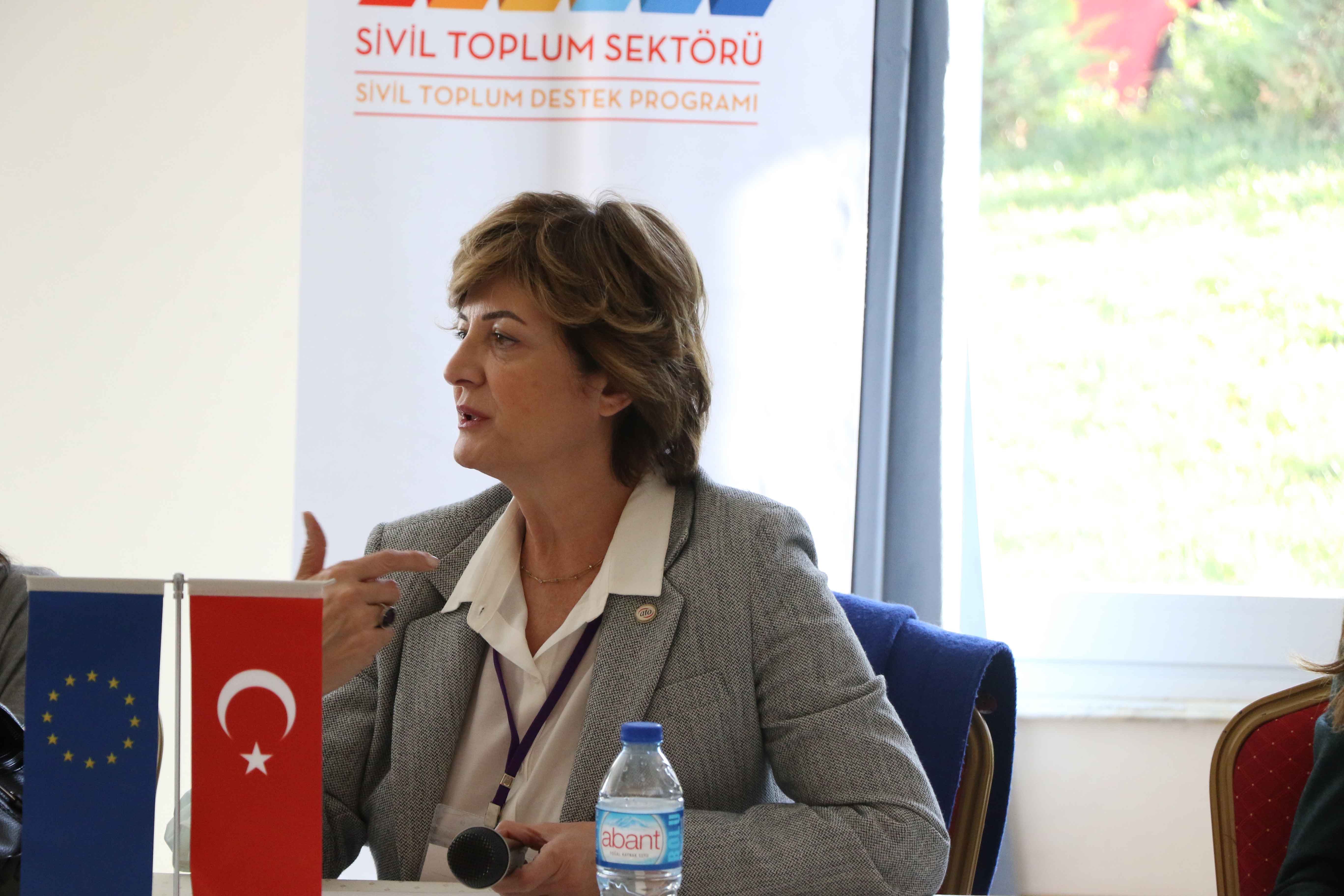Proje Kilit Uzmanı Funda Dağdelen moderatörlüğünde başlayan toplantıda meslek örgütleri ve odalarında kadın temsilinin yetersizliğinin nedenleri ve çözüm önerileri ele alındı.