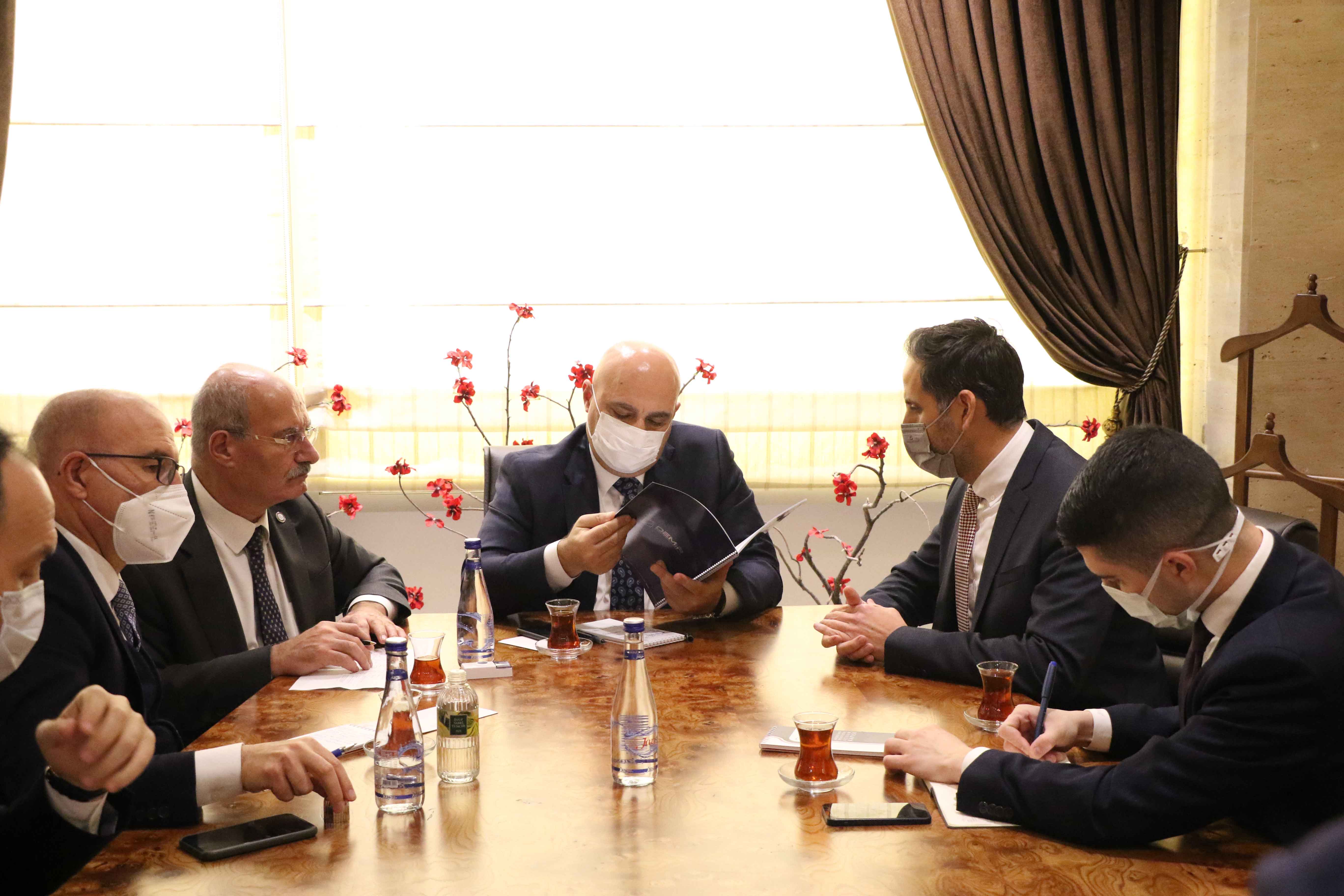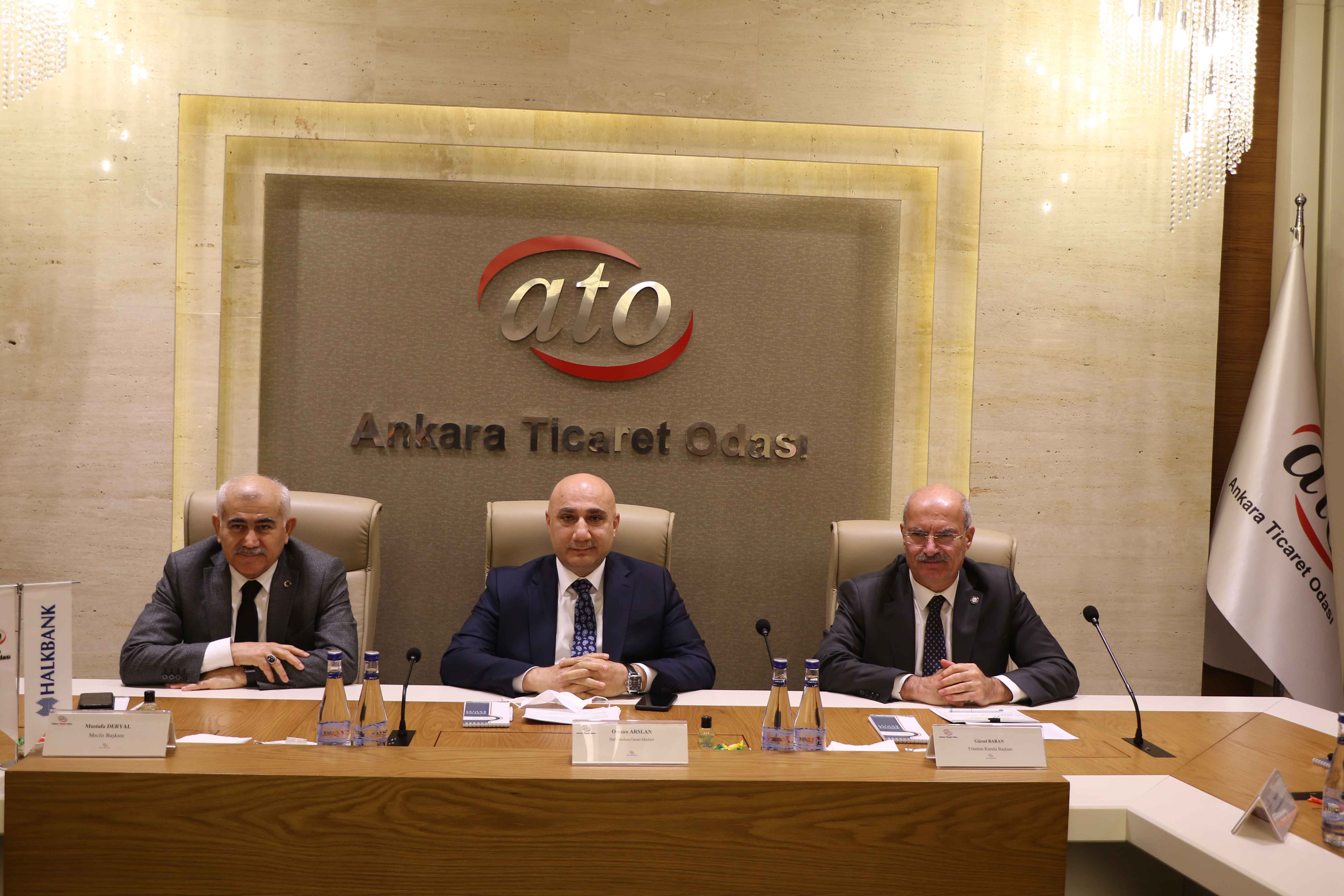 3 ARALIK 2021 -Ankara Ticaret Odası (ATO) Yönetim Kurulu Başkanı Gürsel Baran, Meclis Başkanı Mustafa Deryal, Yönetim Kurulu Üyeleri ve Meclis Üyeleriyle birlikte Türkiye Halk Bankası (Halkbank) Genel Müdürü Osman Arslan ve Genel Müdür Yardımcısı Hasan Tuncay ile bankanın Ankara Bölge ve Şube Müdürlerini konuk etti. Reel sektörün finansman ihtiyacı ile Halkbank'ın girişimcilere yönelik desteklerinin ele alındığı toplantının ardından ATO heyeti, Genel Müdür Osman Arslan ve ekibiyle birebir görüşmeler yaparak talep, görüş ve önerilerini aktardı.