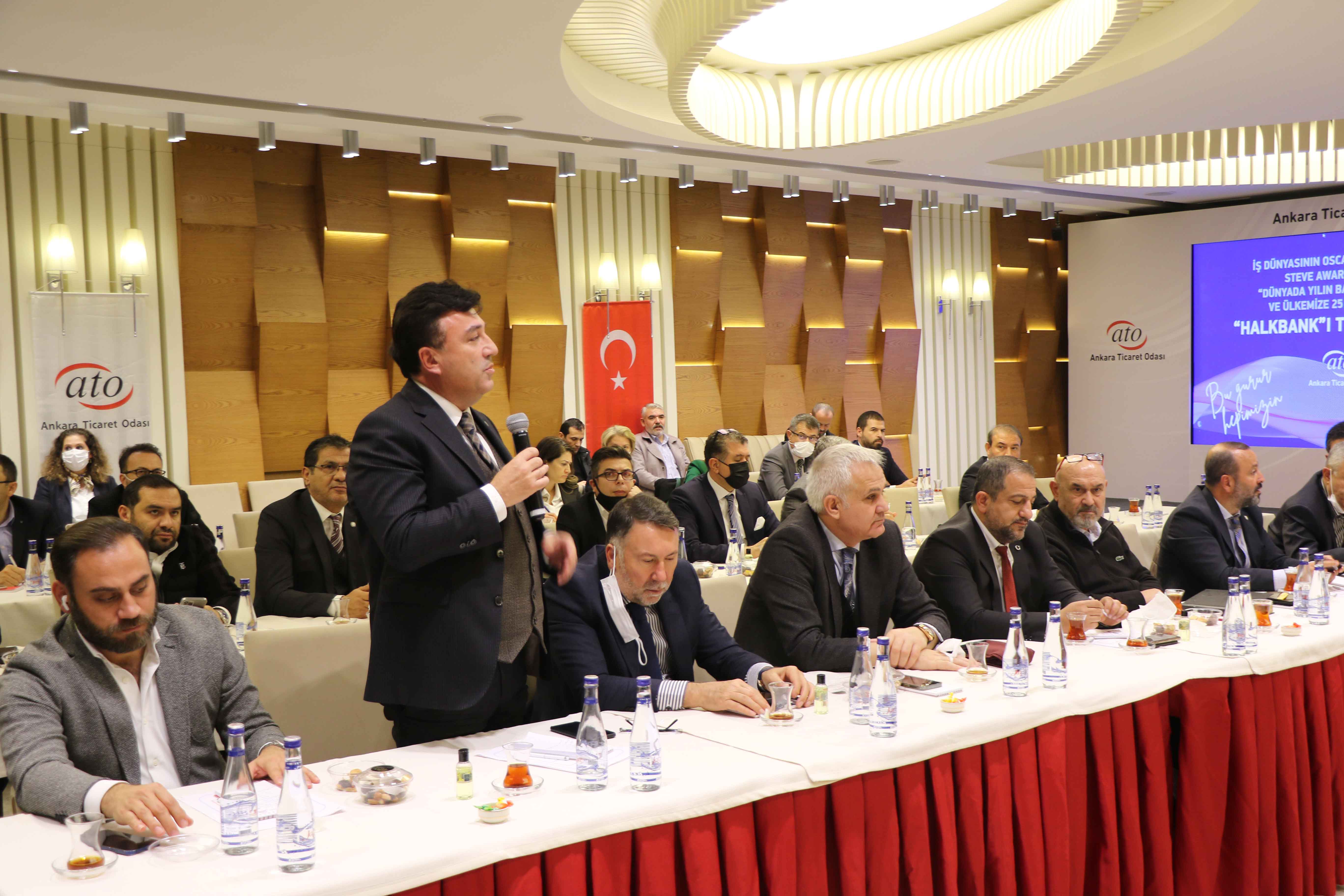 HALKBANK GENEL MÜDÜRÜ ARSLAN, EKİBİYLE BİRLİKTE ATO ÜYESİ İŞ İNSANLARININ FİNANSMAN SORUNLARI İLE TALEP VE GÖRÜŞLERİNİ DİNLEDİ.