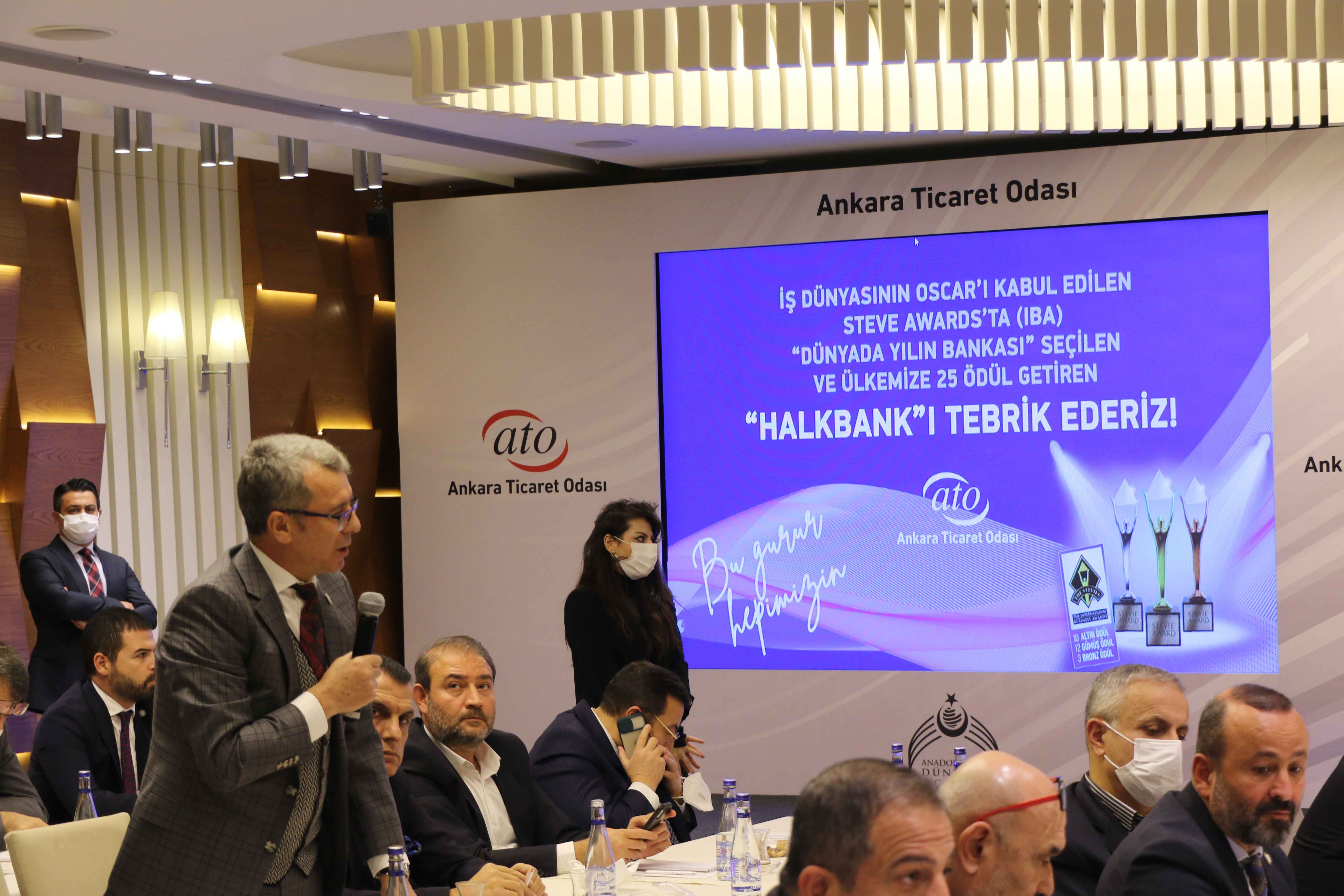 Halkbank Genel Müdürü Osman Arslan ise konuşmasında Ankara Ticaret Odası'yla birlikte, Başkent iş dünyasının finansman sorunlarını aşmak için birlikte çalışmaktan memnuniyet duyduklarını ifade etti. Türkiye'nin tarihinden aldığı güçle daima umutla hareket ettiğini dile getiren Arslan, "Ortaya çıkan zorluklar bizi hiçbir zaman ümitsizliğe sevk etmedi, her zaman ümitvarız" dedi. Son dönemde döviz kurlarında yaşanan dalgalanmalara değinen Arslan, "Bunlar hiçbir zaman bizi yatırımdan, üretimden, istihdamdan alıkoymamalı. Halkbank esnafın ve KOBİ'nin önemli temsilcilerinden biridir. Biz Halkbank olarak, her zaman önce reel sektör diyoruz. Reel sektör ayakta durduğu sürece biz de sizlerle birlikte var olmaya devam edeceğiz" diye konuştu.