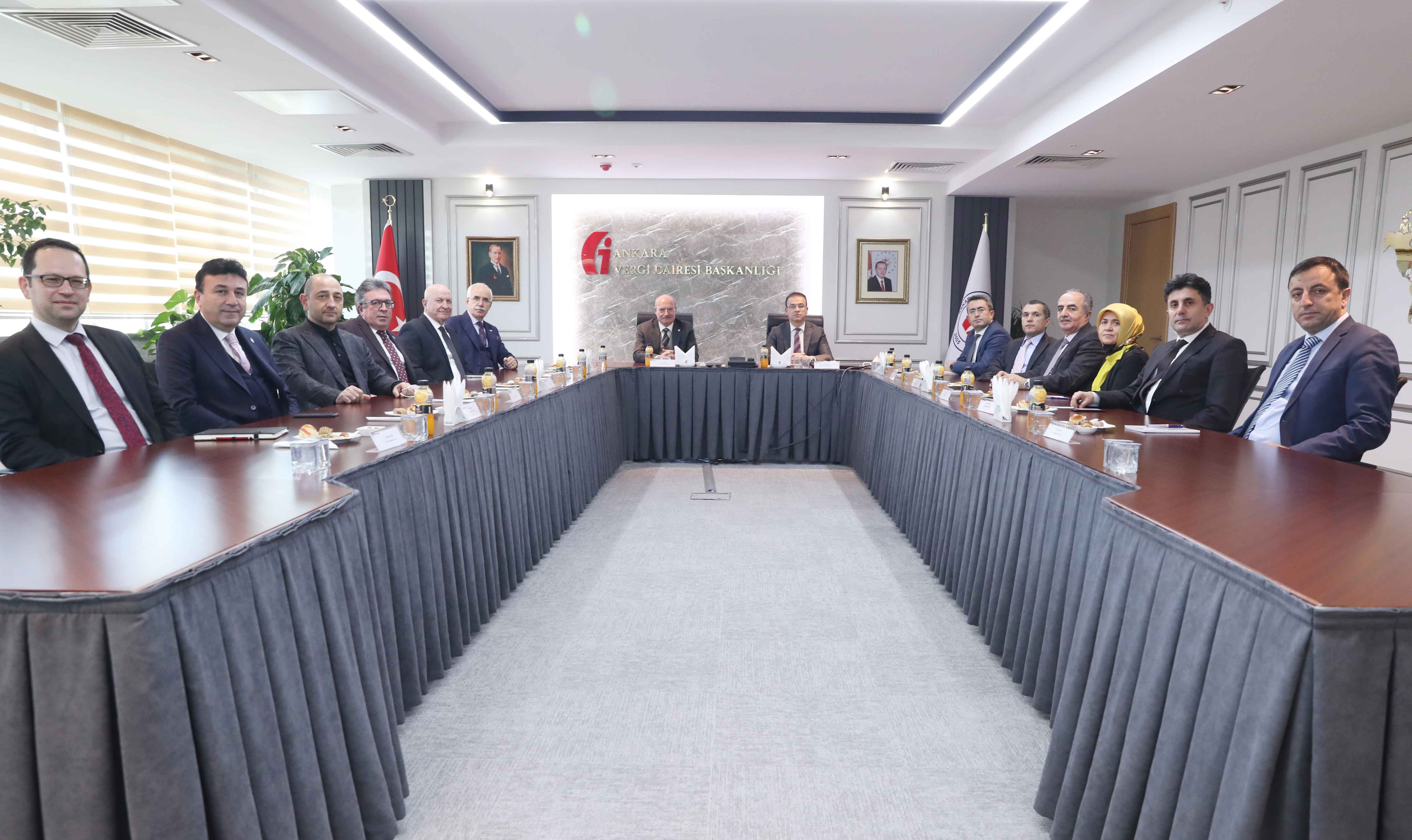 ATO BAŞKANI BARAN VE BERABERİNDEKİ HEYET, YENİ HİZMET BİNASI'NA TAŞINMALARI NEDENİYLE ANKARA VERGİ DAİRESİ BAŞKANI DUMAN'I ZİYARET EDEREK, HAYIRLI OLSUN DİLEKLERİNİ İLETTİ.