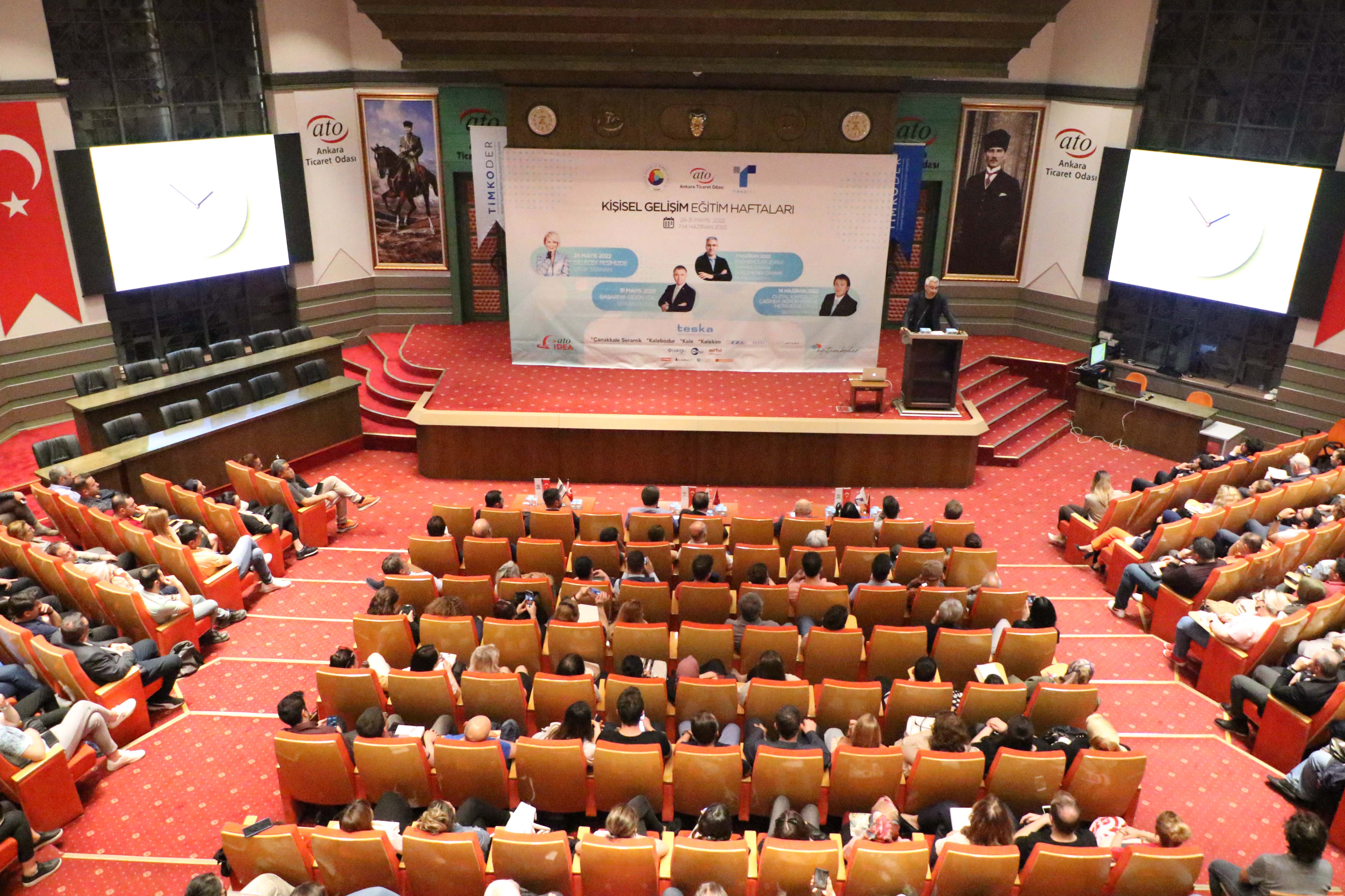 7 HAZİRAN 2022- Ankara Ticaret Odası'nın (ATO), Tesisat İnşaat Sanayi Malzemecileri Derneği (TİMKODER) işbirliği ve ATO İdea organizasyonuyla düzenlediği "Kişisel Gelişim Eğitim Haftaları"nın üçüncü programı, Kişisel Gelişim Uzmanı ve yazar Mümin Sekman'ın "Rağmenciler: Zorlu Zamanlardan Güçlenerek Çıkmak" başlıklı sunumuyla gerçekleşti.