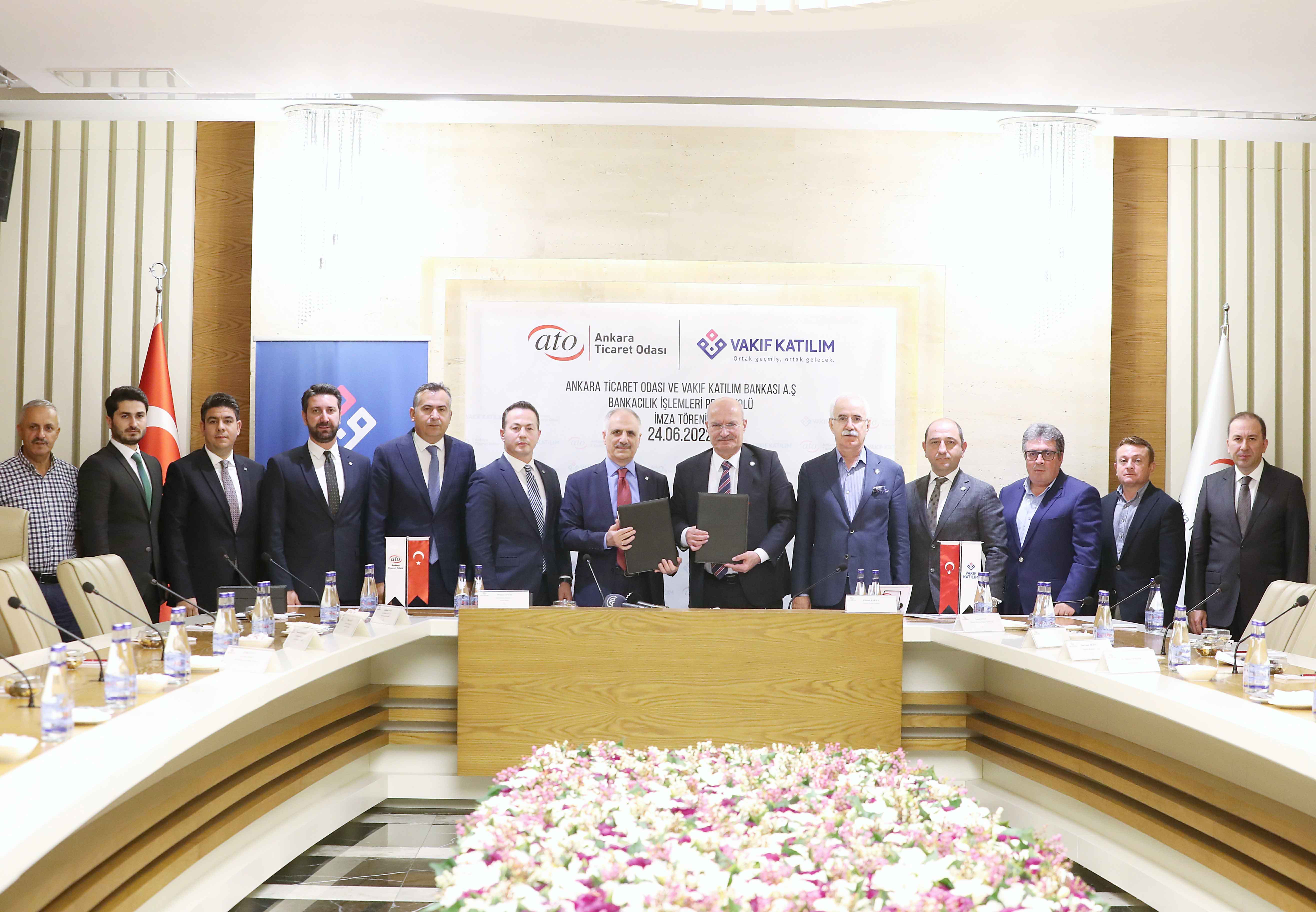 Prokokol imza törenine, ATO Başkan Yardımcısı Temel Aktay, Yönetim Kurulu Üyeleri Süleyman Ekinci ve Halil İlik, Vakıf Katılım Bankası KOBİ Bankacılığı Müdürü Lokman Avcı, Ankara Bölge Müdürü Oğuz Avan, Ankara Kurumsal Şube Müdürü Emrah Kortikoğlu, Müdür Yardımcısı Eyüp Şayli ile ATO Meclis Üyesi Fuat Kutsal katıldı.