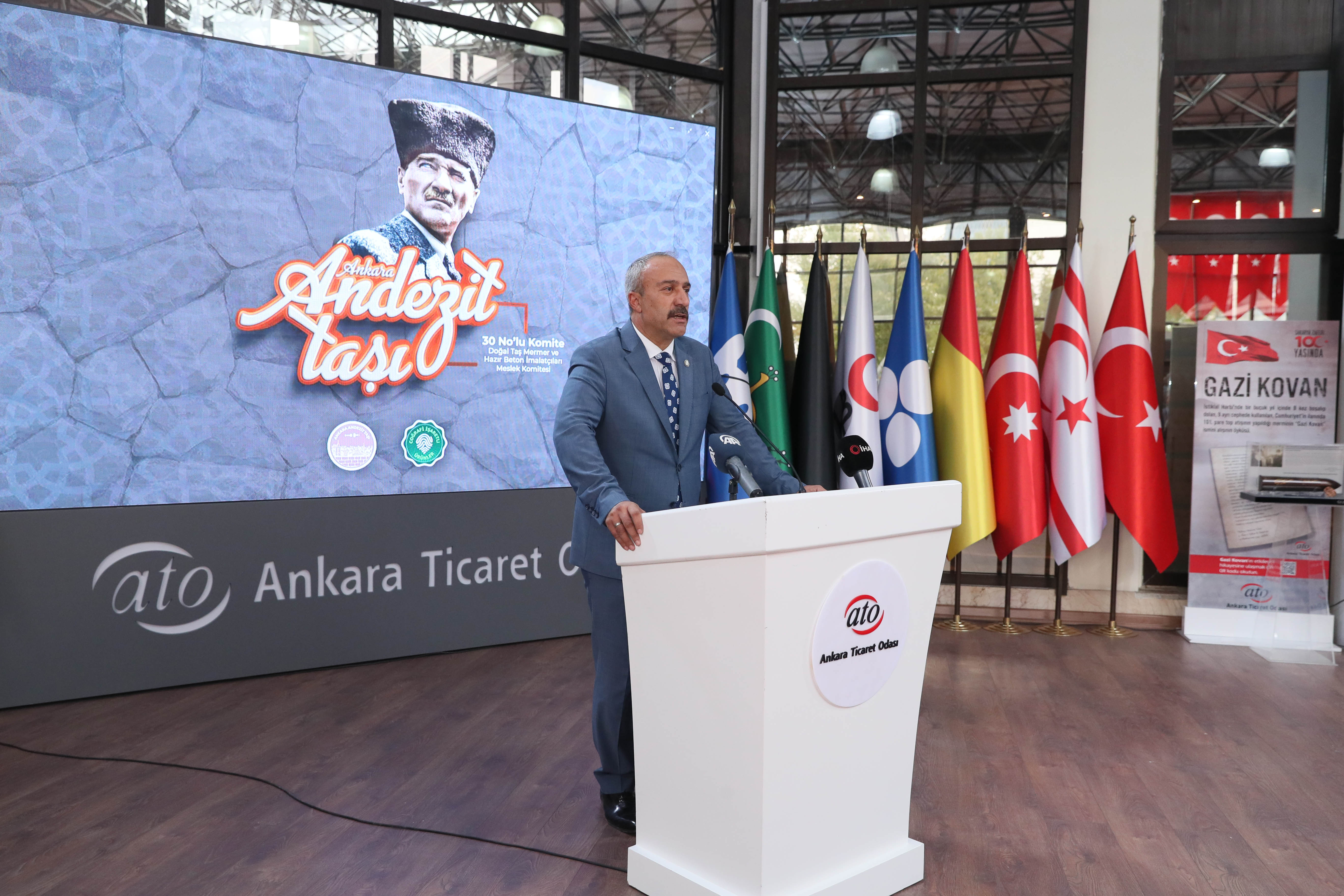 30 No'lu Doğal Taş, Mermer ve Hazır Beton İmalatçıları Meslek Komitesi Başkanı Ali İhsan Güçlü de yaptığı konuşmada katma değerli bir ürün olarak piyasada yer alan Ankara Taşı'nın ticari boyutunun yanı sıra tarihi ve kültürel bir değer olduğunu ifade etti. Yüzyıllar boyunca ayakta duran Ankara Kalesi ve Cumhuriyet dönemi yapılarında taşın kullanıldığına dikkat çeken Güçlü, "Doğru maden ve nitelikli işçilikle yapı ömrü yüzyılları aşan şaheserler ortaya çıkıyor. Ülkemiz bu konuda hem rezerv bakamından hem de iş yapma kapasitesinde çok iyi durumda. Umut ediyoruz ki firmalarımız yaptıkları ihracatı kat ve kat artırarak ilerleyen günlerde ülkemizin cari açığının kapanması noktasında da büyük maddi katkılar sunacaktır. Yaptığı işi gönülden yapanlar ve helalin peşinde koşanlar, aynı zamanda yaptığı işi ileri taşıma adına çalışanlara, istihdam için üretim yapanlara, katma değerle katkı sunanlara, emek verenlere, esnafımıza tacirimize hayırlı bol bereketli kazançlar diliyorum" dedi.