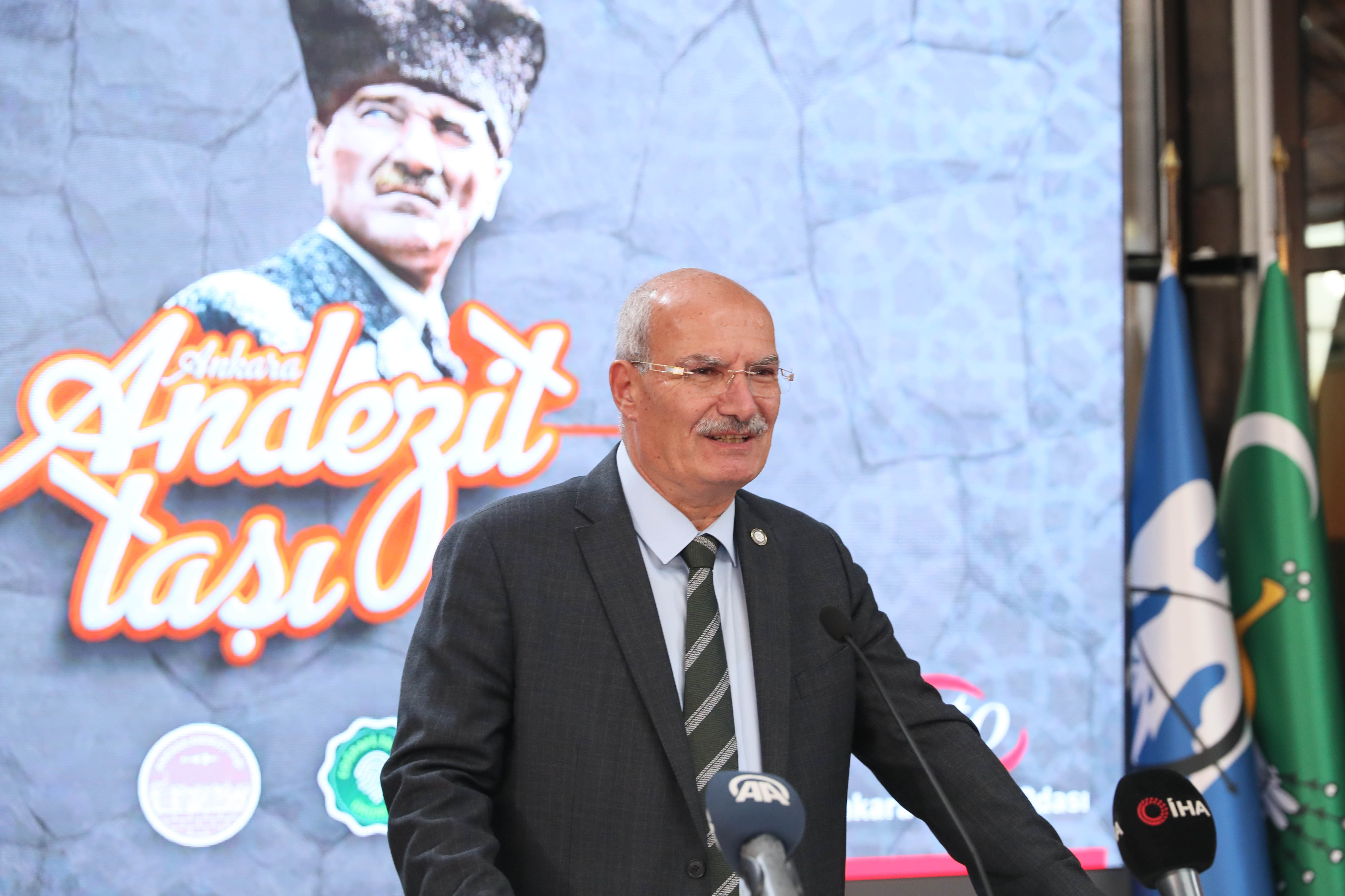 Anıtkabir'den Birinci Meclis'e, Hacı Bayram'dan Ankara Garı'na kadar Başkent'in tarihi yapılarında Ankara Andezit Taşı'nın kullanıldığını kaydeden Baran, taşın özellikle aşınmaya ve ısı farklarına karşı dayanıklı olduğunu söyledi. Andezit taşının duvar, merdiven, park, bahçe ve kent mobilyaları gibi alanlarda kullanıldığını ifade eden Baran, taşın gri, siyah, eflatun, mor ve pembe olmak üzere 5 farklı renginin olduğunu belirtti. Ankara Andezit taşının özellikle Gölbaşı ilçesinin önemli bir değeri olduğunu bildiren ATO Başkanı Baran, "Gölbaşı ve çevresinde yaklaşık 200'ün üzerinde doğal taş firması 1.000'in üzerinde kardeşimize ekmek kapısı oldu" diye konuştu.