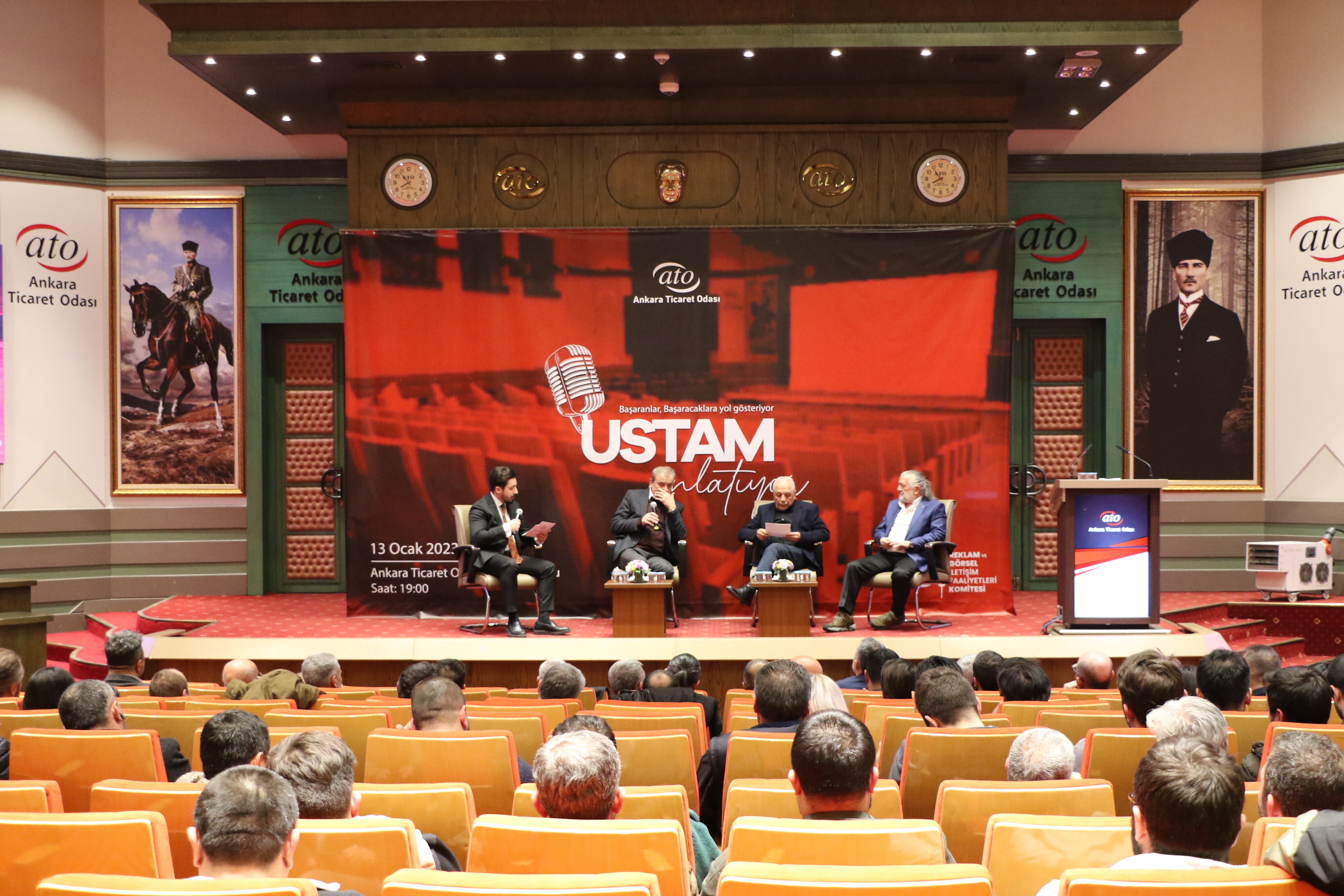 ATO'nun 13 No'lu Reklam ve Görsel İletişim Faaliyetleri Meslek Komitesi tarafından organize edilen "Ustam Anlatıyor" etkinliği ile sektörün duayenleri, sektörün geleceği olan temsilcilere bilgi birikim ve deneyimlerini aktardı. 13 No'lu Reklam ve Görsel İletişim Faaliyetleri Meslek Komitesi Başkanı Derya Filiz Dalga'nın sunumuyla ATO Meclis Salonu'nda yapılan etkinlik, ATO Yönetim Kurulu Başkanı Gürsel Baran, ATO Meclis Başkanı Mustafa Deryal ile ATO 13 No'lu Reklam ve Görsel İletişim Faaliyetleri Meslek Komitesi Meclis Üyesi Berat Kuzu'nun açılış konuşmalarıyla başladı.