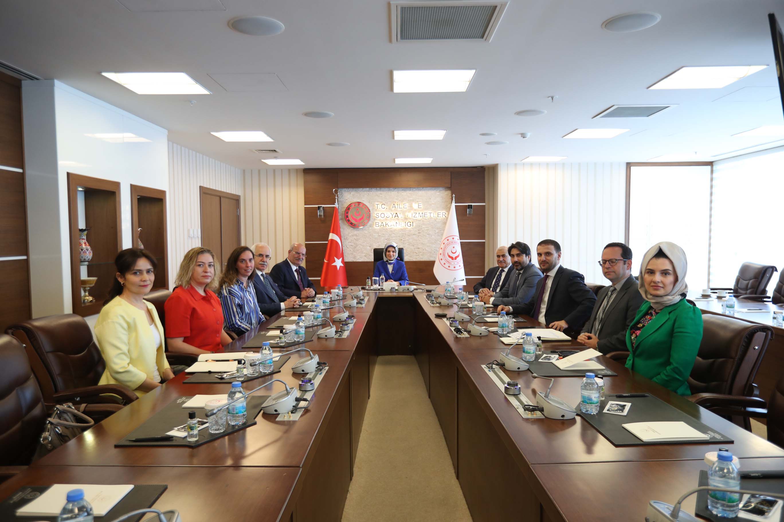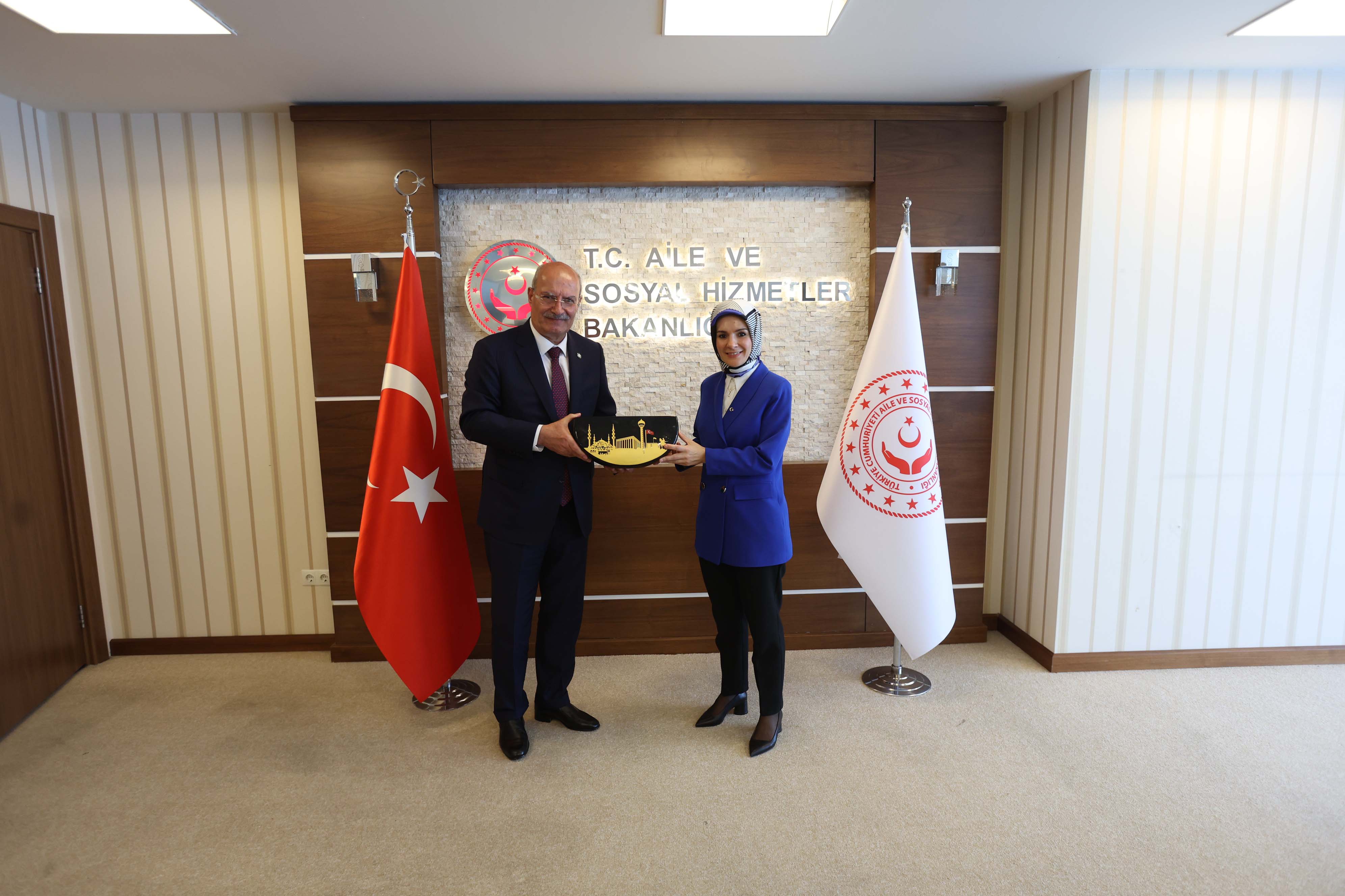 13 Haziran 2023- Ankara Ticaret Odası (ATO) Yönetim Kurulu Başkanı Gürsel Baran, ATO Meclis Başkanı Mustafa Deryal ve beraberindeki heyet ile birlikte Aile ve Sosyal Hizmetler Bakanı Mahinur Özdemir Göktaş'a hayırlı olsun ziyaretinde bulundu.