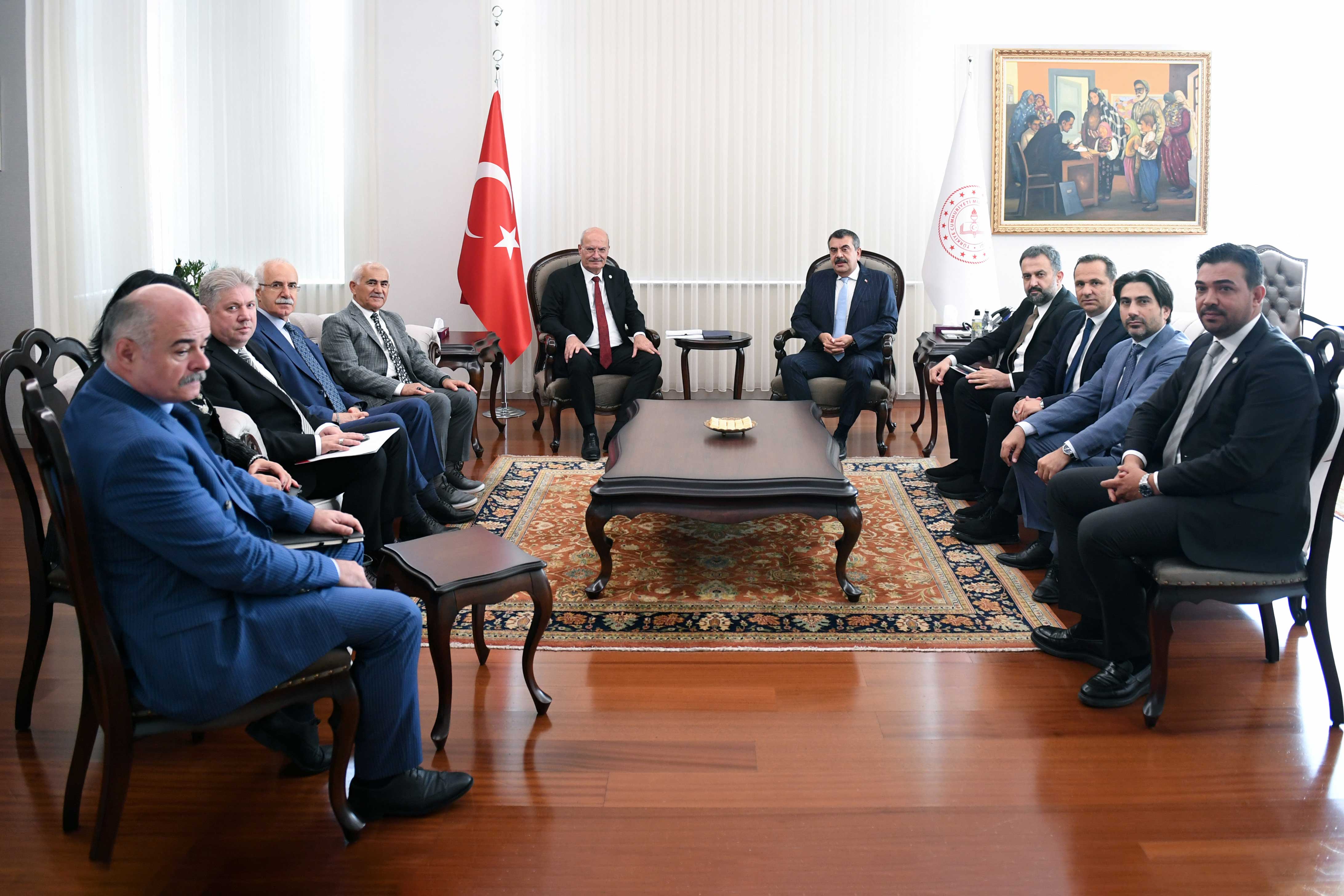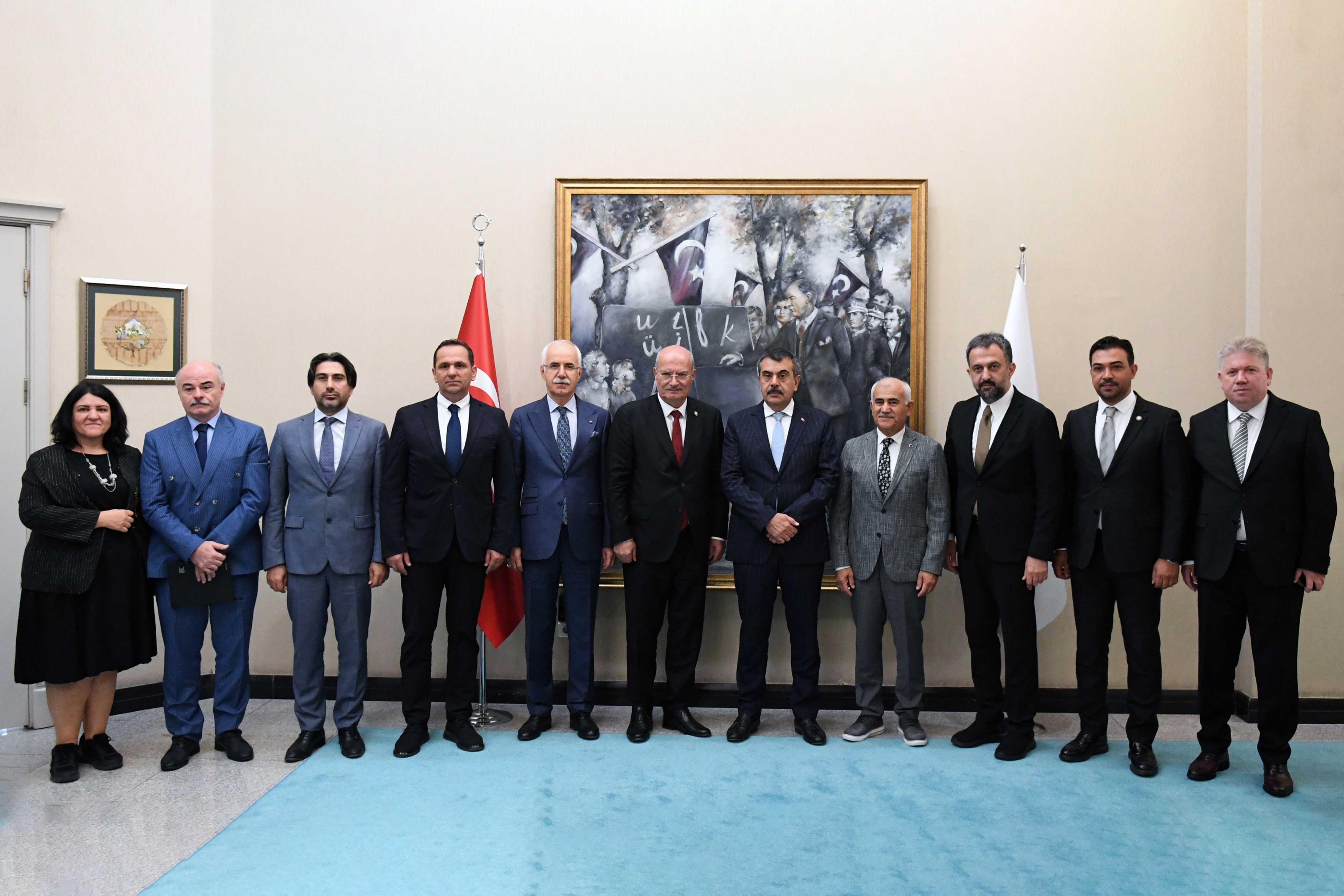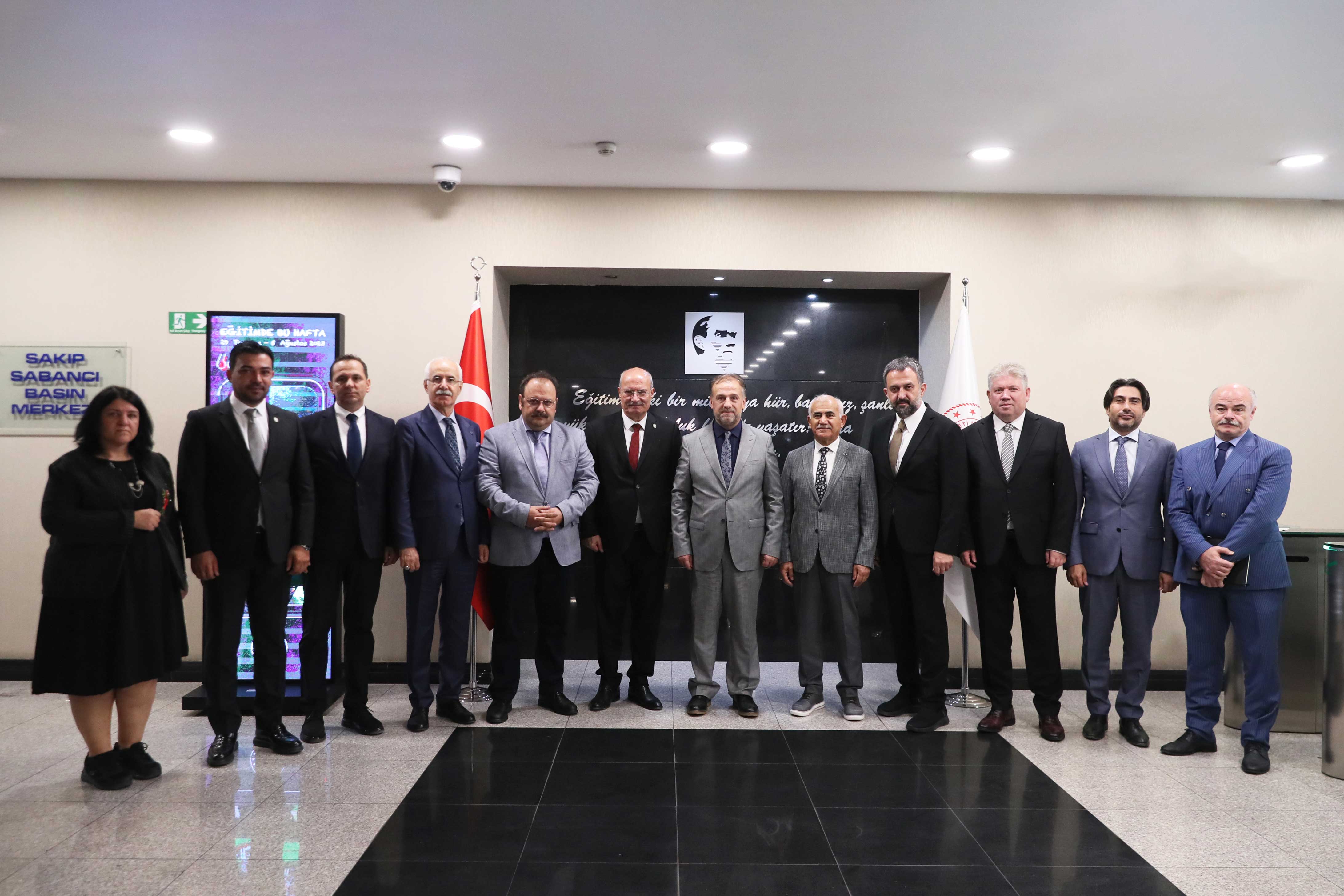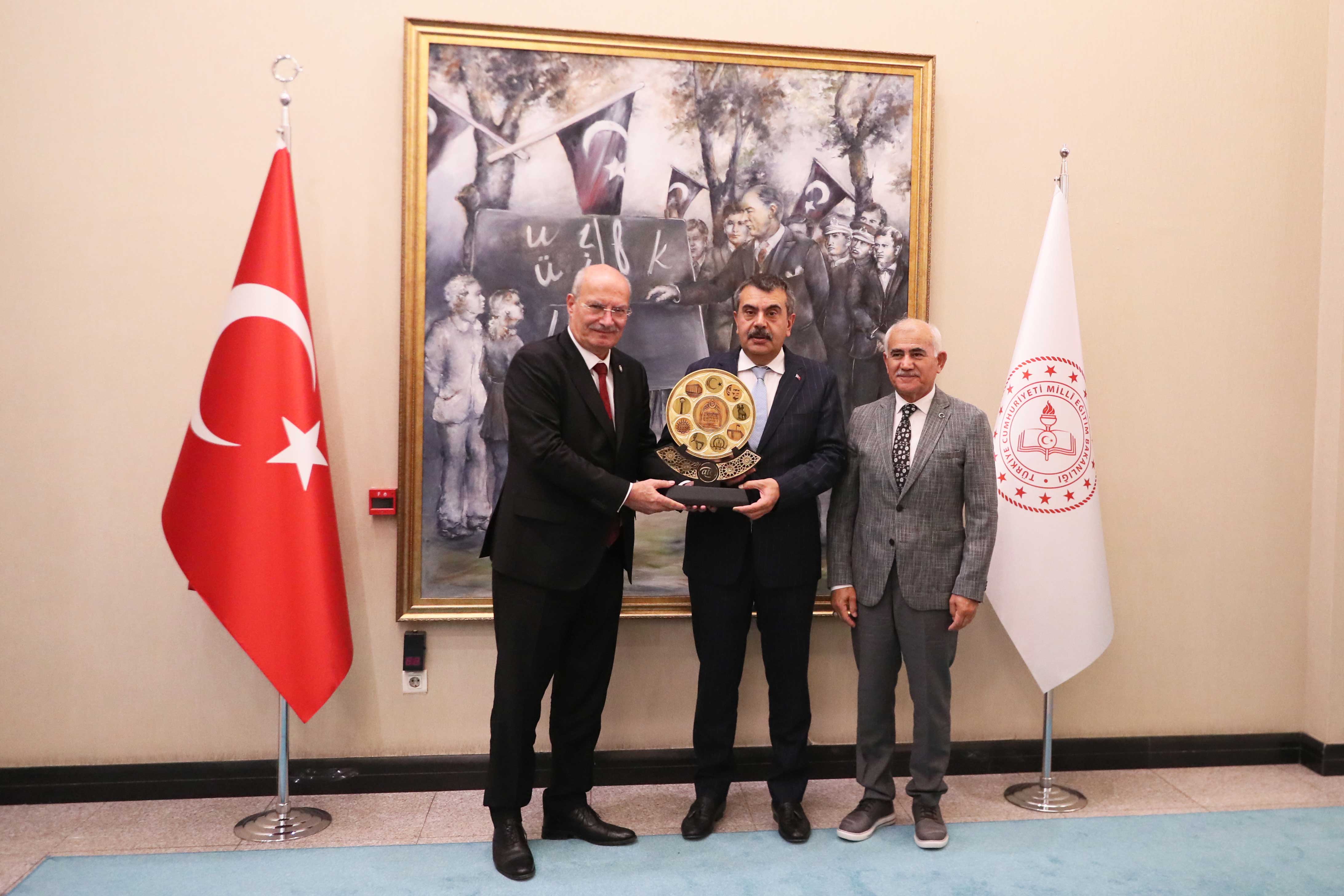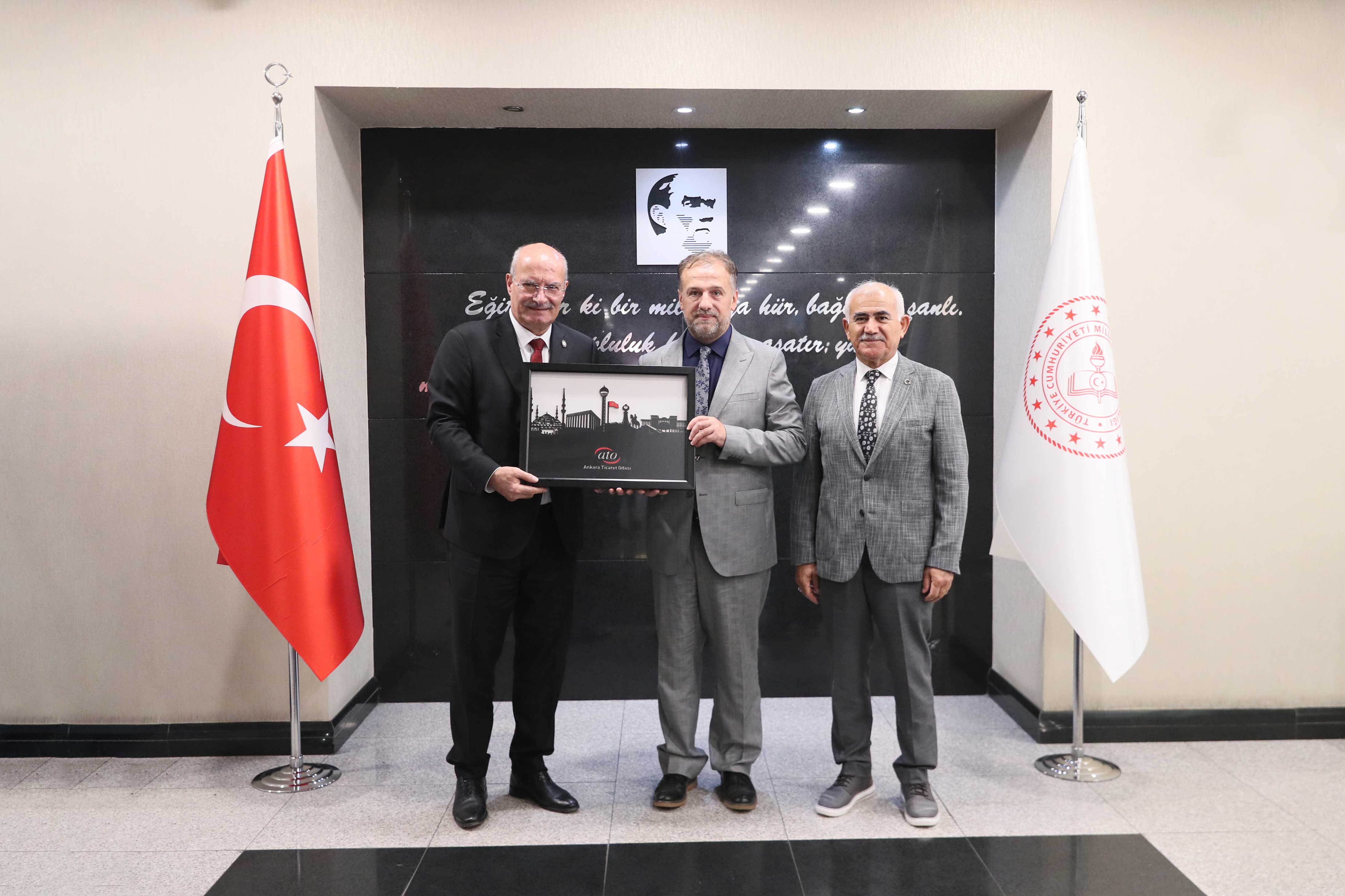 ATO Başkanı Gürsel Baran, ATO Meclis Başkanı Mustafa Deryal, ATO Yönetim Kurulu Başkan Yardımcıları Temel Aktay ve Halil İbrahim Yılmaz, ATO Yönetim Kurulu Üyeleri Ahmet Akça, Ali Yıldız, Doç. Dr. Ömer Çağlar Yılmaz ve Yasin Özyolu ile birlikte Milli Eğitim Bakanı Prof. Dr. Yusuf Tekin'i ziyaret ederek "hayırlı olsun" dileklerini iletti.