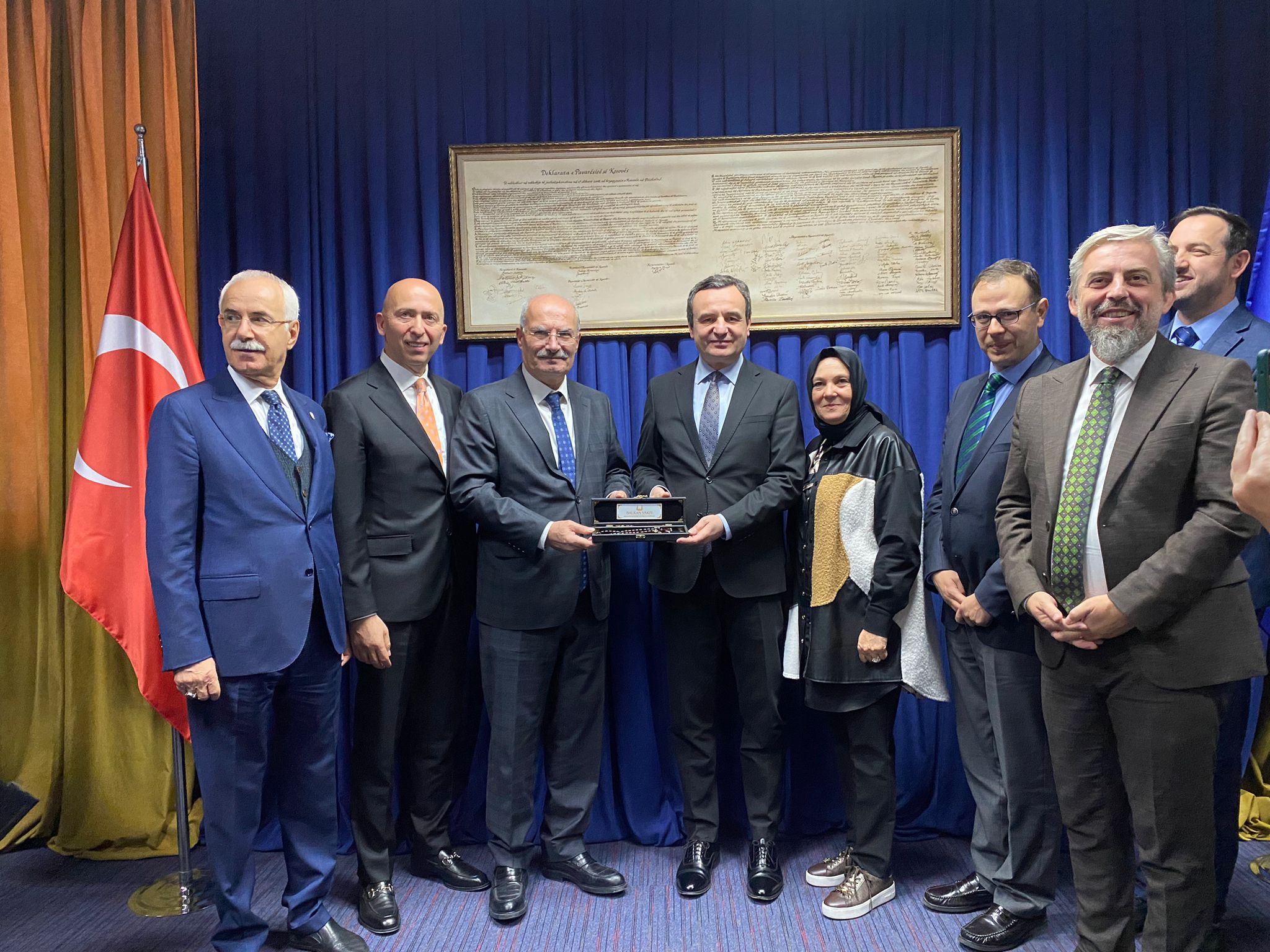 20 Ekim 2023- Çalışma ziyareti için Kosova'da bulunan Ankara Ticaret Odası (ATO) Yönetim Kurulu Başkanı Gürsel Baran, ATO Yönetim Kurulu ve Meclis Üyeleri ile Balkan Ülkeleri Kültürel Araştırmalar ve Eğitim Vakfı'ndan (BALKAN VAKFI) oluşan heyet, Türkiye Cumhuriyeti Priştine Büyükelçisi Sabri Tunç Angılı, Kosova-Türkiye Parlamentolar Arası Dostluk Grubu Başkanı Enis Kervan ve Türkiye Cumhuriyeti Priştine Büyükelçiliği Ticaret Müşavir Yardımcısı Gözde Eroğlu ile birlikte Kosova Başbakanı Albin Kurti'yi ziyaret etti.