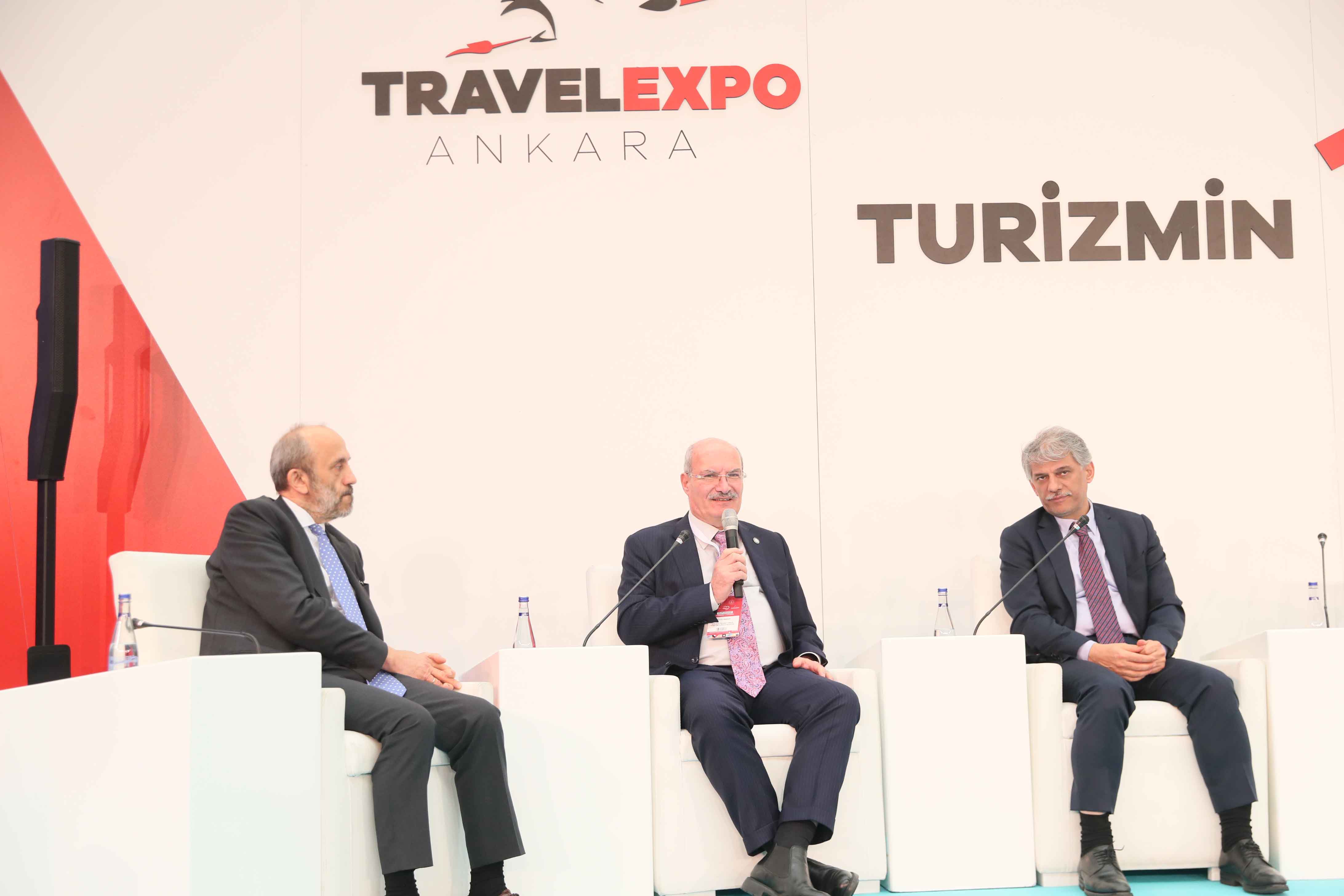 TRAVELEXPO ANKARA ULUSLARARASI TURİZM VE SEYAHAT FUARI- ZİRVE'Sİ KAPSAMINDA DÜZENLENEN OTURUMDA ATO BAŞKANI GÜRSEL BARAN, KÜLTÜR VE TURİZM BAKAN YARDIMCISI NADİR ALPASLAN İLE ANKARA BİLİM ÜNİVERSİTESİ REKTÖRÜ PROF. DR YAVUZ DEMİR ANKARA'NIN TURİZM POTANSİYELİNİ ELE ALDI.
