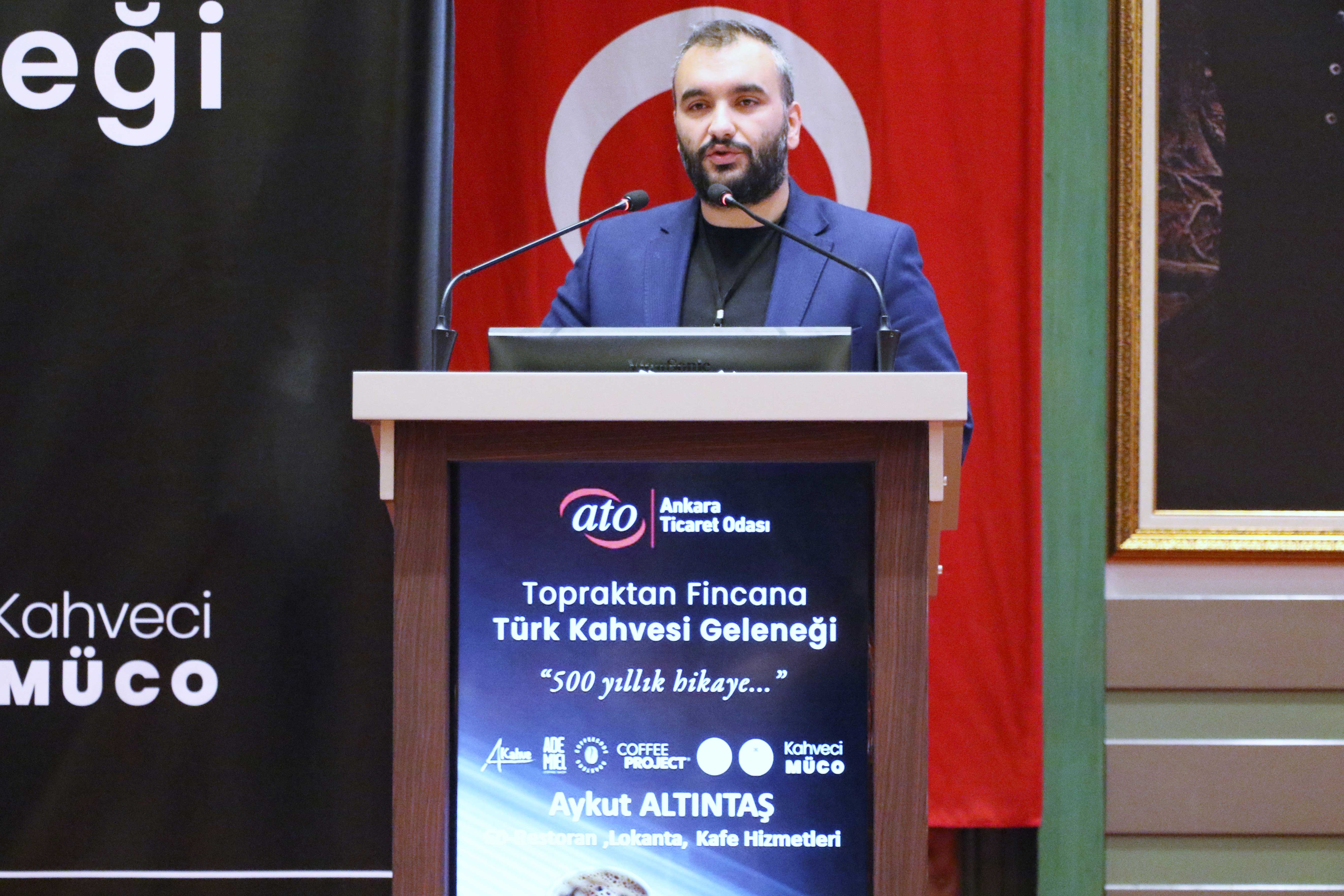 ATO 60 No'lu Restoran, Lokanta, Kafe Hizmetleri Meslek Komitesi Üyesi ve A4 Kahve Kurucu Ortağı Aykut Altıntaş da yaptığı konuşmada 500 yıllık bir gelenek olan Türk Kahvesi'nin Osmanlı'dan günümüze olan gelişimini anlattı. Kahvenin Mısır Seferi sırasında 1519'da İstanbul'a geldiğini belirten Altıntaş, "Tarihte bilinen ilk iki kahve dükkânından birisi İstanbul'da diğeri ise Londra'dadır. İstanbul'da açılan kahve dükkânı da 1550'li yılların ortasında açıldı. Bizler 500 yıl önce kahve kültürüne başlamışken kahve konusunda çok ilerleyemedik ya da kahve çayın bir adım gerisinde kaldı. Bunun sebebi