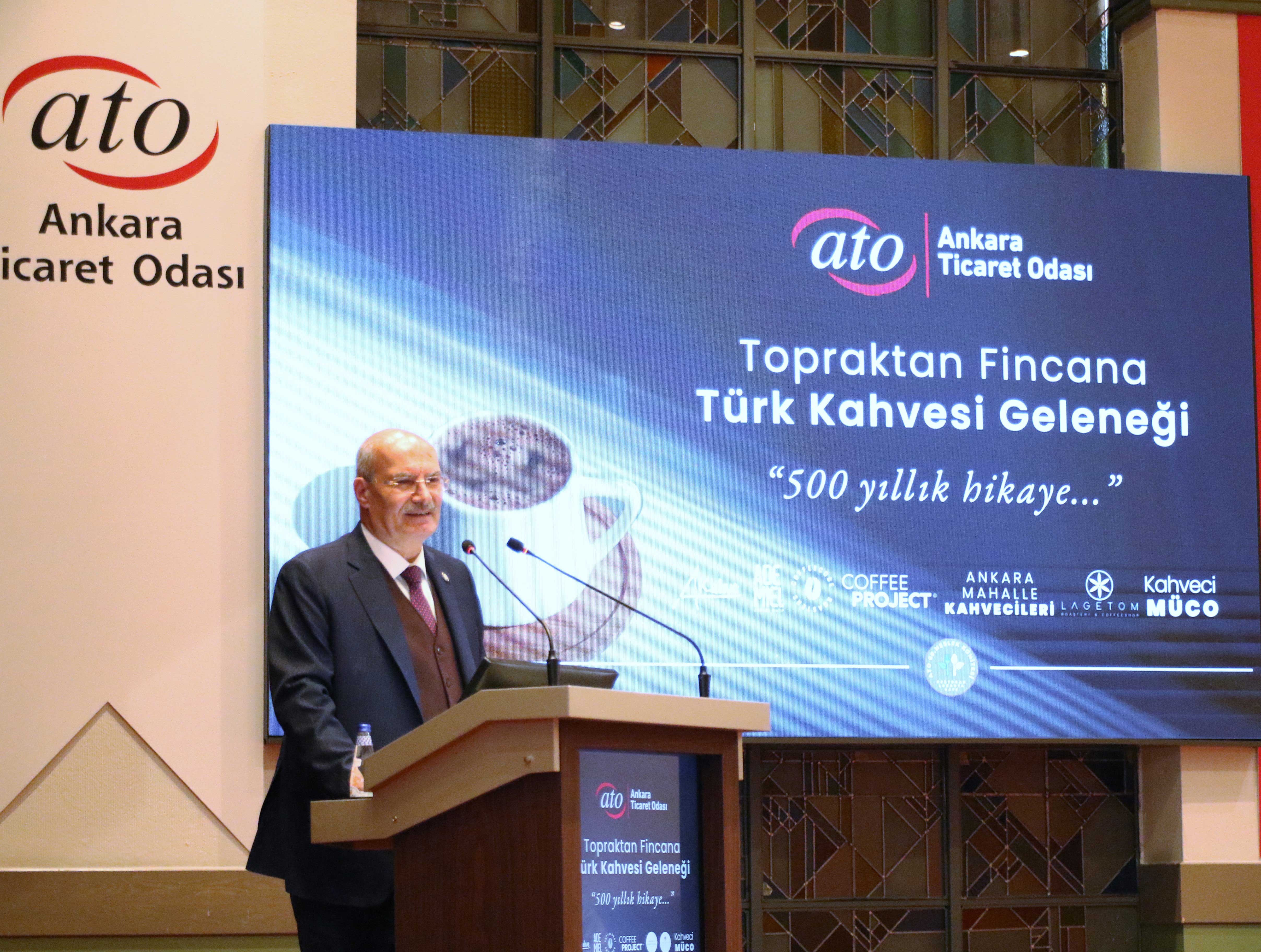 ATO'NUN, UNESCO'NUN LİSTESİNDE YER ALAN "DÜNYA TÜRK KAHVESİ GÜNÜ" DOLAYISIYLA GERÇEKLEŞTİRDİĞİ ETKİNLİK, ATO BAŞKANI BARAN İLE ANKARA'DAKİ BÜYÜKELÇİLİK VE KAHVE FİRMALARI TEMSİLCİLERİNİN KATILIMIYLA YAPILDI.