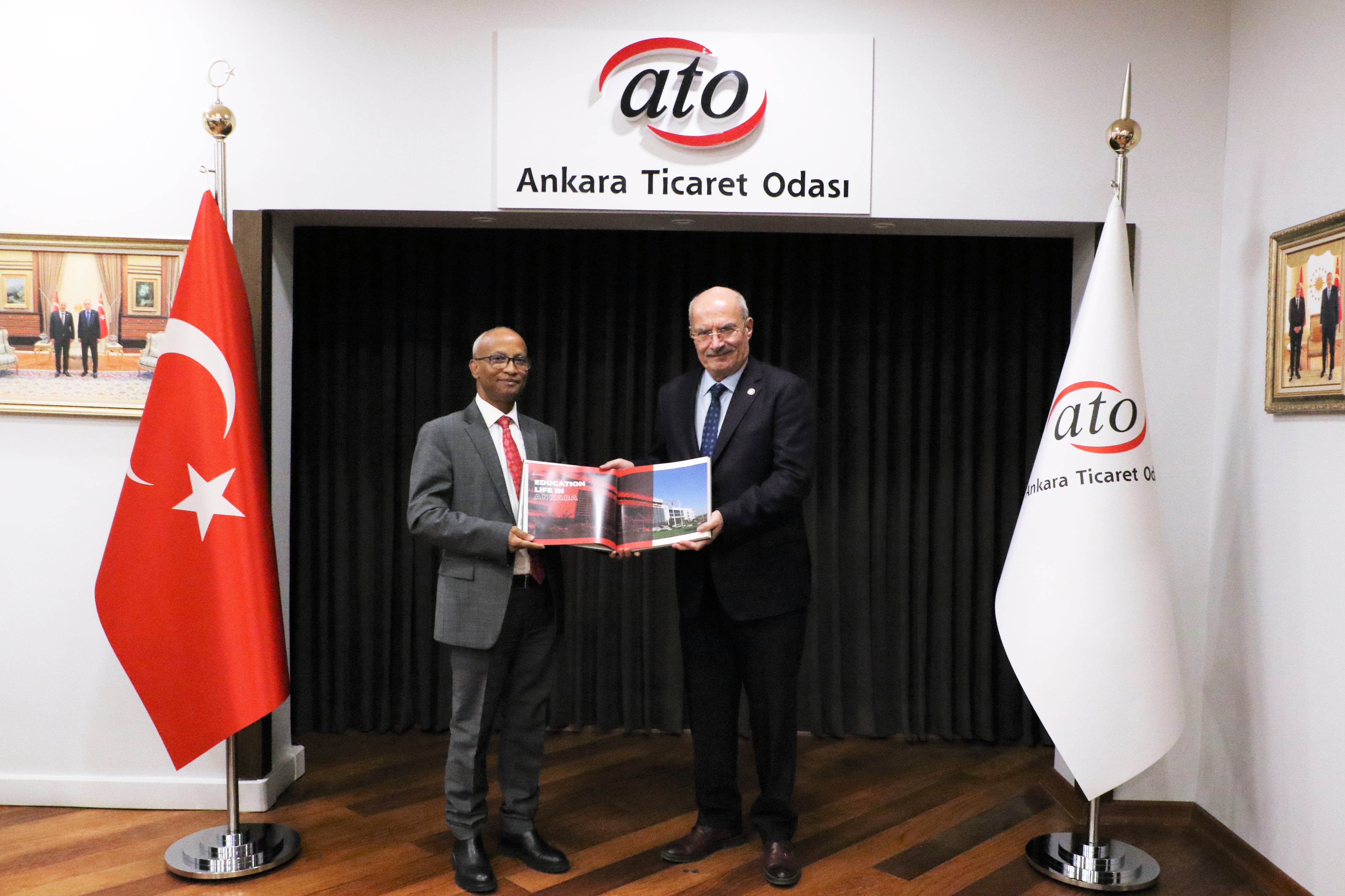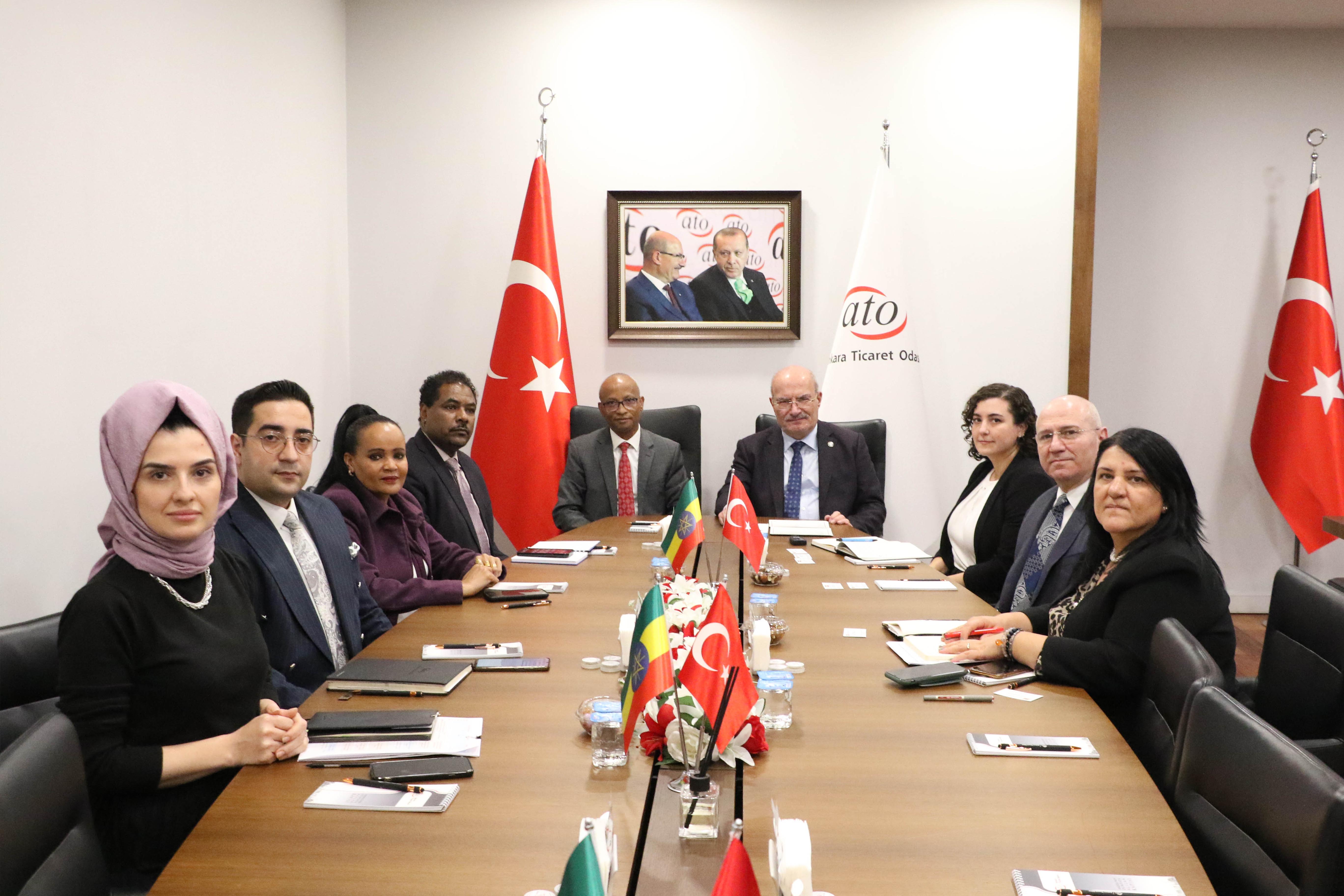 Etiyopya Ankara Büyükelçisi Adem Mohamed Mahmud, ATO Yönetim Kurulu Başkanı Gürsel Baran'ı makamında ziyaret etti. Büyükelçi Mahmud, ziyarette yaptığı konuşmada, iki ülke arasında 127 yıldır diplomatik ilişkilerin sorunsuz devam ettiğini belirterek, "İhtiyacımız olan, diplomatik olarak iyi giden bu ilişkileri yatırım ve ticaret anlamında da daha iyi noktalara getirmek. Bu yüzden Etiyopya'nın ticaret ve iş imkânlarını sizlere tanıtmak ve anlatmak istiyoruz" dedi.