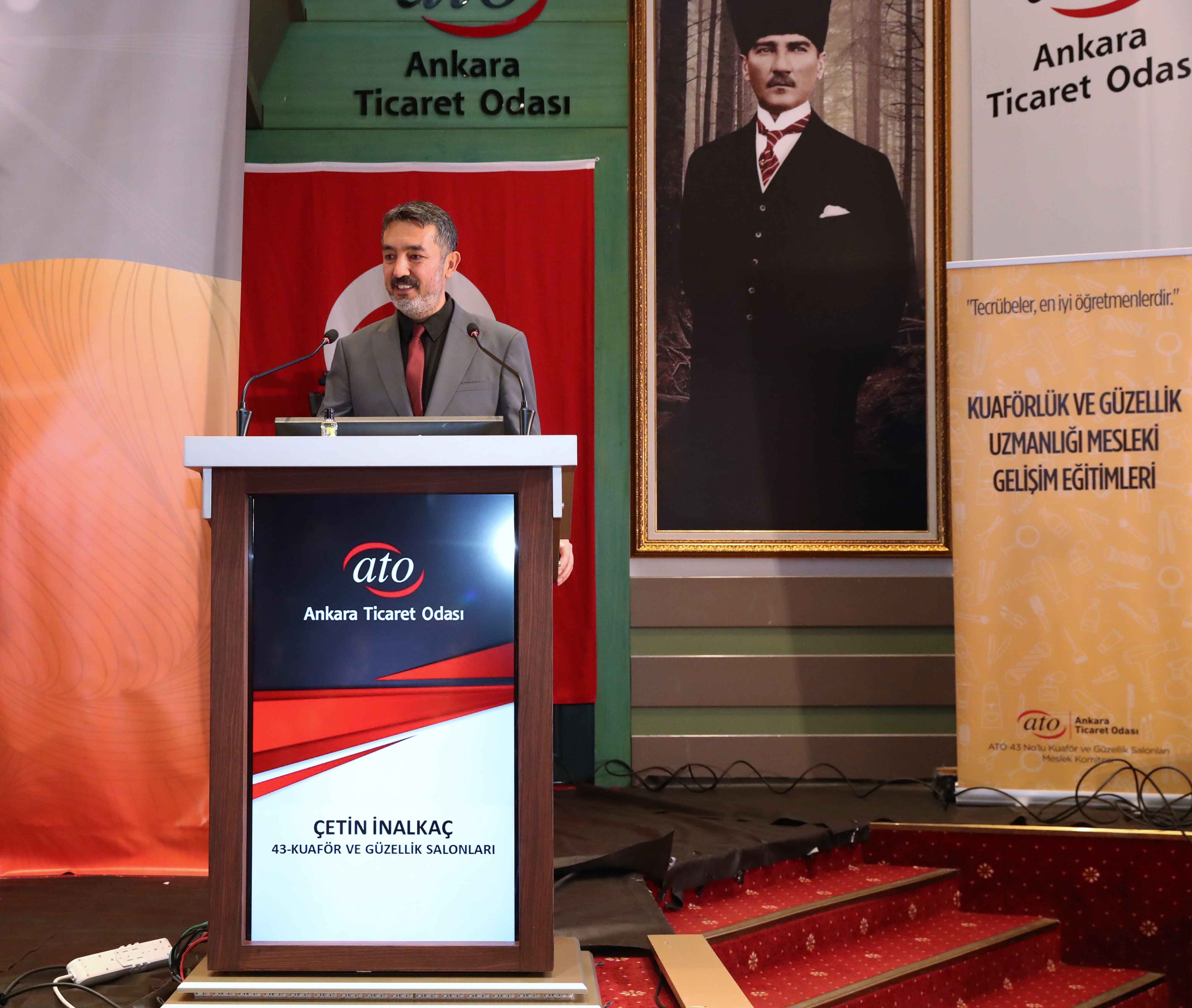 ATO 43 No'lu Kuaför ve Güzellik Salonları Meslek Komitesi Başkanı Çetin İnalkaç da komite olarak mesleki eğitimleri periyodik ve geleneksel hale getirmeye çalıştıklarını anlattı.