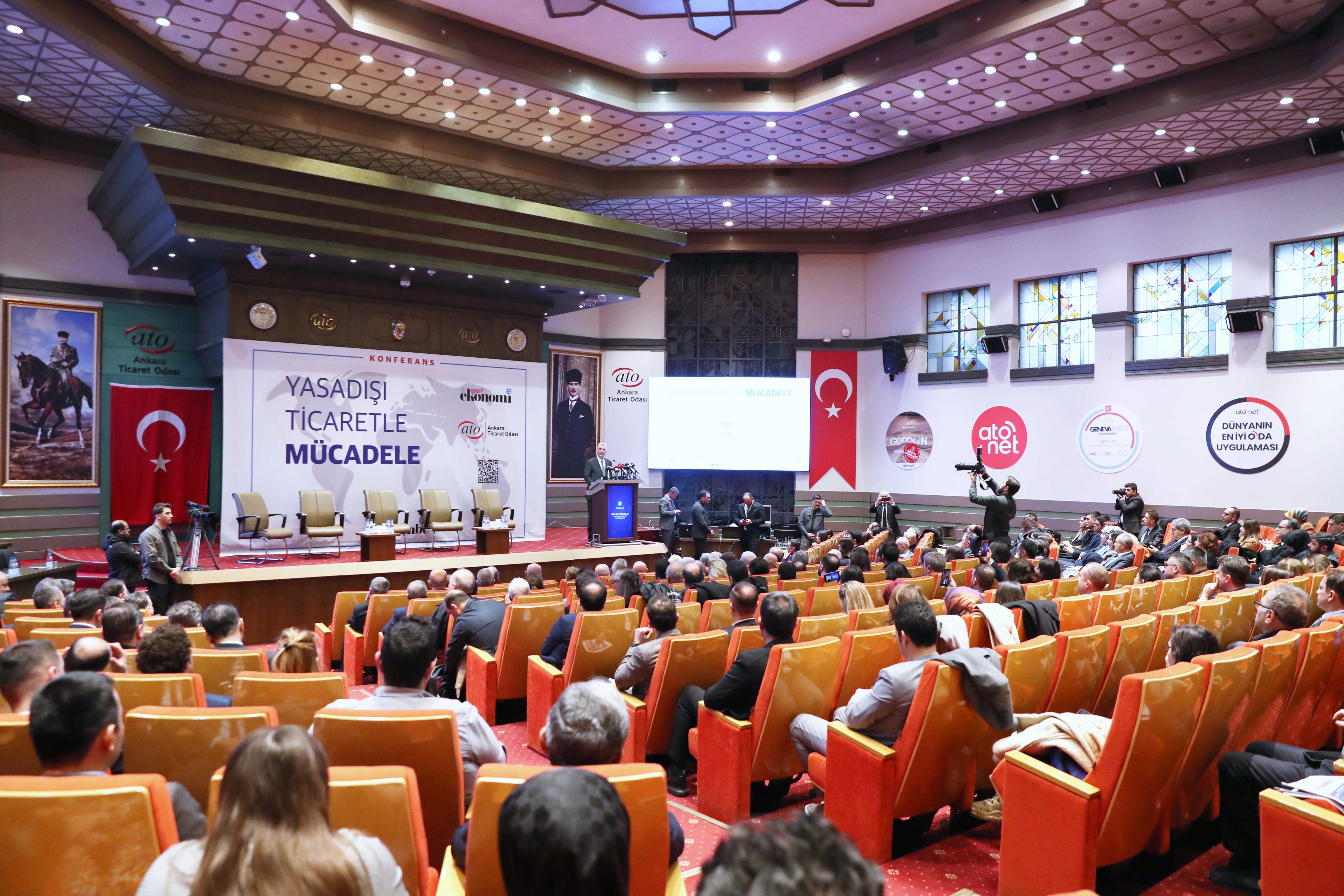 Ankara Ticaret Odası ve Ekonomi Gazetesi işbirliğiyle gerçekleşen, yasa dışı ticarete dair kavramsal çerçeve, uluslararası ve ulusal düzeyde mevcut durum ve sorunlar ile bu sorunların giderilmesine yönelik çözüm önerilerinin tüm yönleriyle ele alındığı "Yasadışı Ticaretle Mücadele Konferans ve Paneli"nin açılış konuşmalarını Ticaret Bakanı Prof. Dr. Ömer Bolat ve ATO Yönetim Kurulu Başkanı Gürsel Baran yaptı. ATO Meclis Salonu'nda gerçekleşen programa Ticaret Bakan Yardımcısı Sezai Uçarmak, ATO Yönetim Kurulu Başkan Yardımcıları Temel Aktay ve Halil İbrahim Yılmaz, Yönetim Kurulu Üyesi Halil İlik Meclis ve Komite Üyeleri ile çok sayıda davetli katıldı.